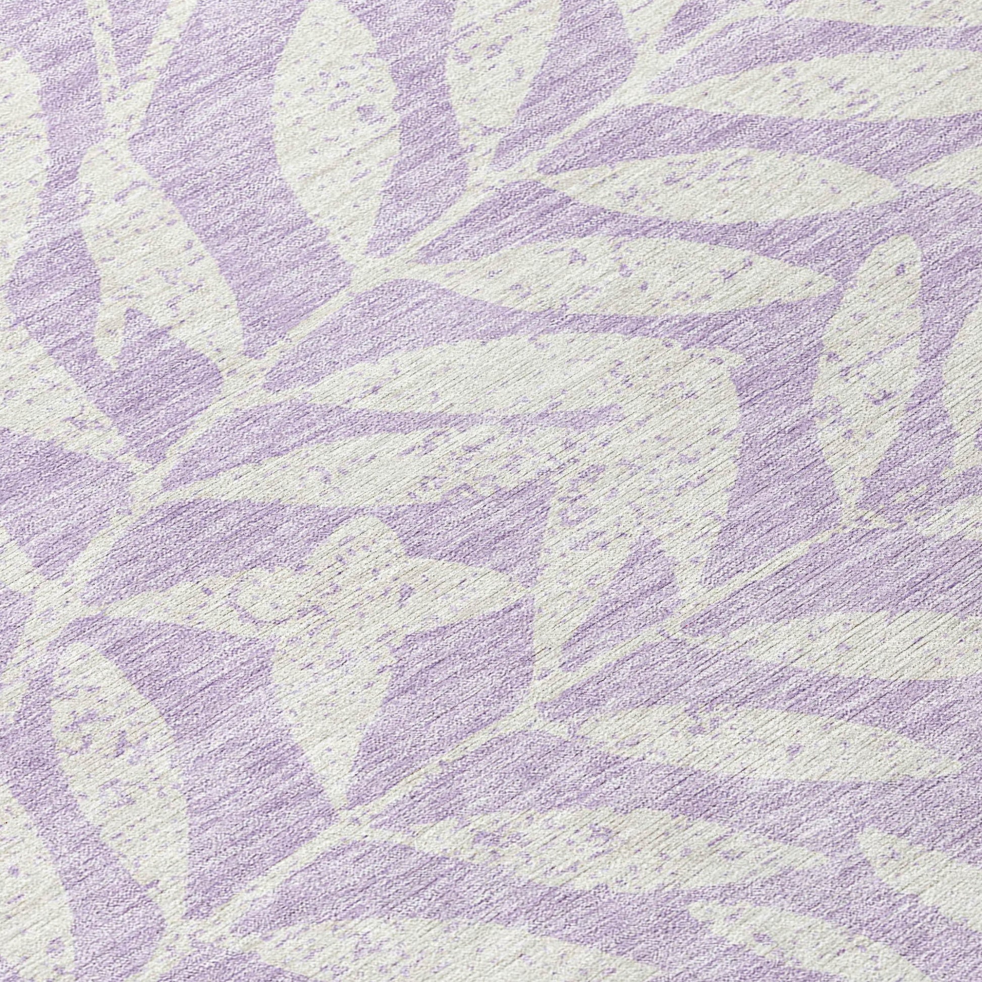 Add great coloration and comfortable texture to your space with this 8-foot lavender and ivory round floral washable indoor outdoor area rug. This geometric round shaped rug features a floral pattern in lavender and ivory that combines a good looking print with a unique and updated shape. The mix of shape, color, and design gives this rug refreshing visual interest. Ideal for outdoor spaces or high traffic areas with kids and pets, this rug is made from heavy duty polyester that is stain resistant to help repel water, dirt, and stains. Versatile in use, durable, and easy to maintain, this rug is an ideal solution to add a decorative and inviting touch to your indoor or outdoor space. 96-inch h x 96-inch w x 0.19-inch d.