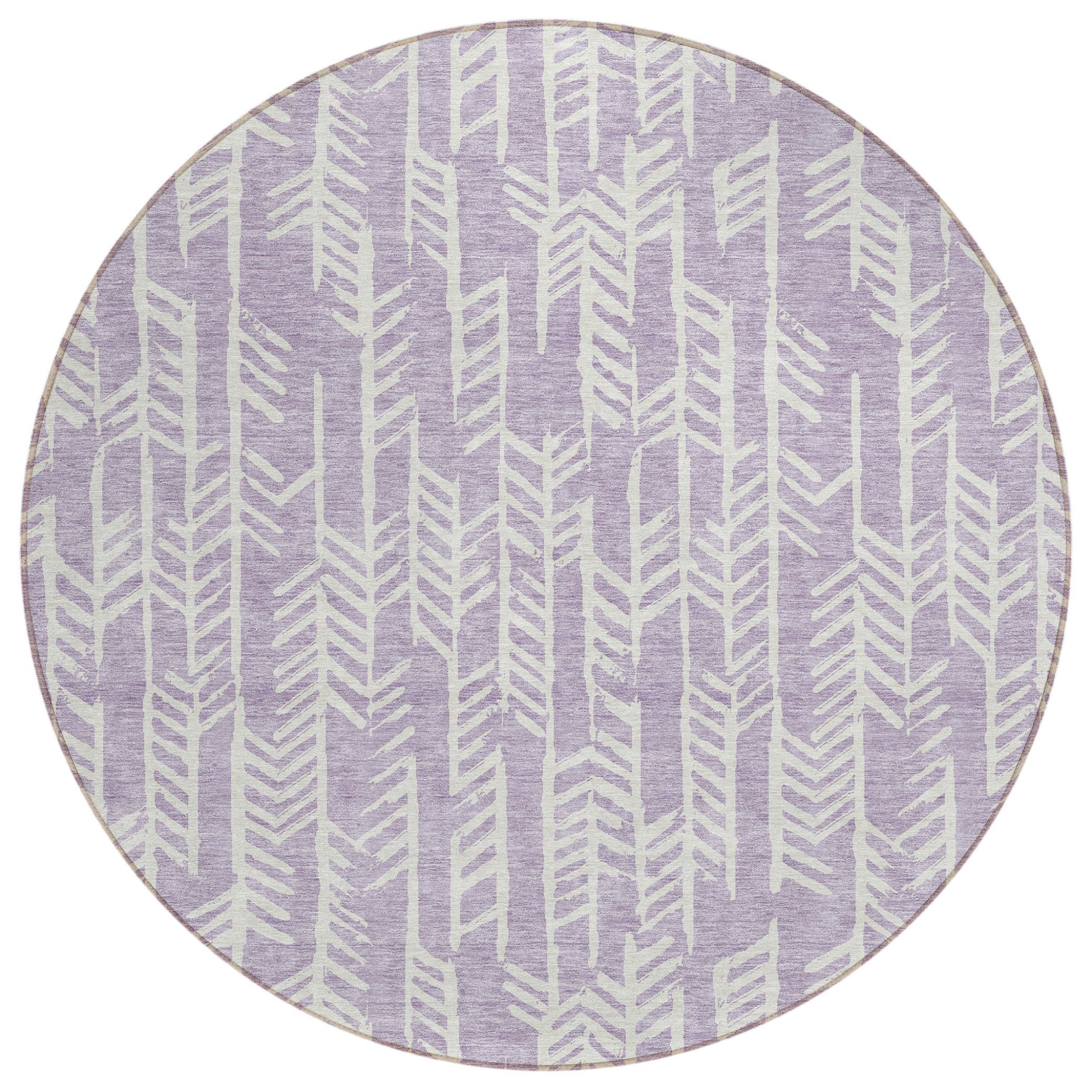Tabselect Home Line 8' Lavender And Ivory Round Tribal Washable Indoor Outdoor Area Rug