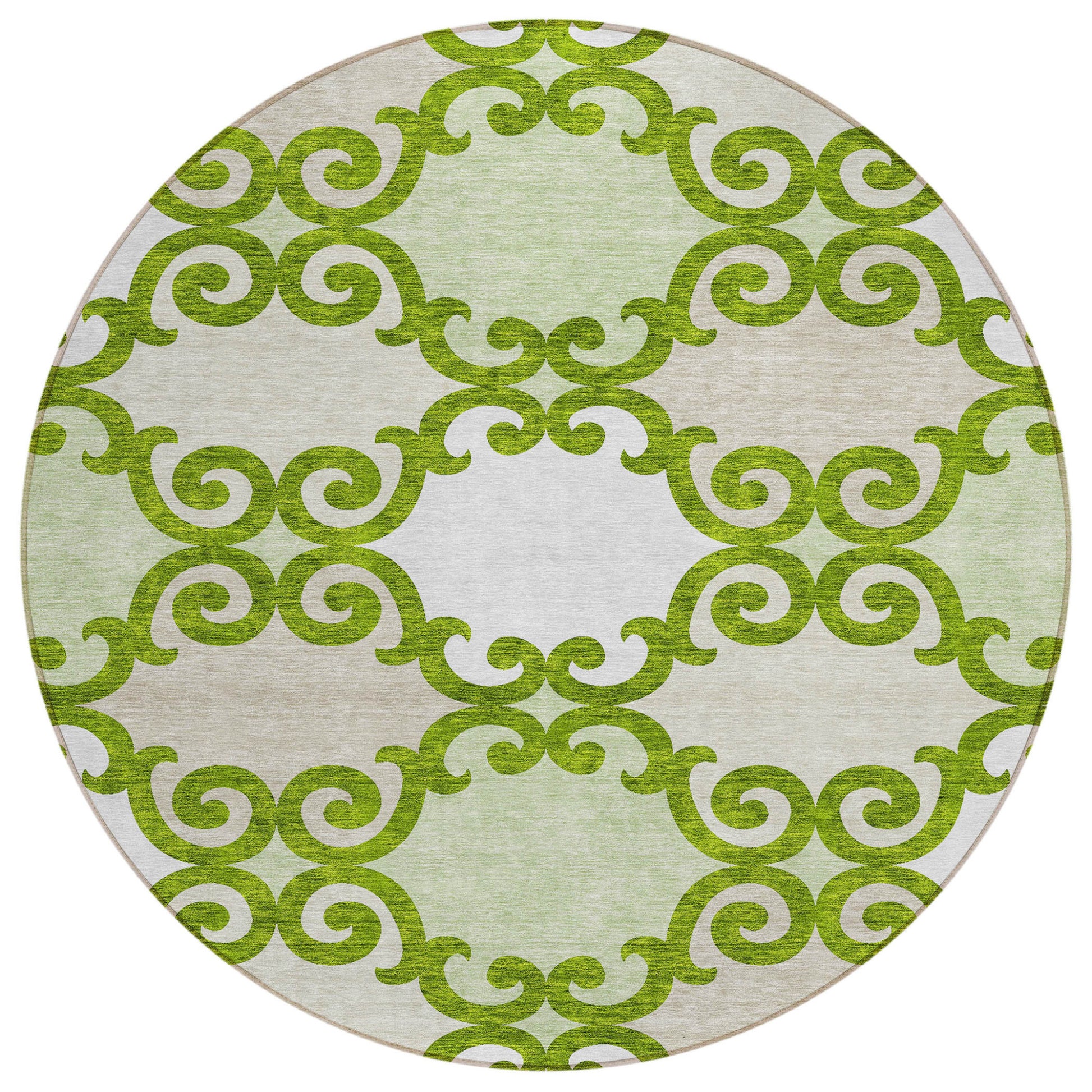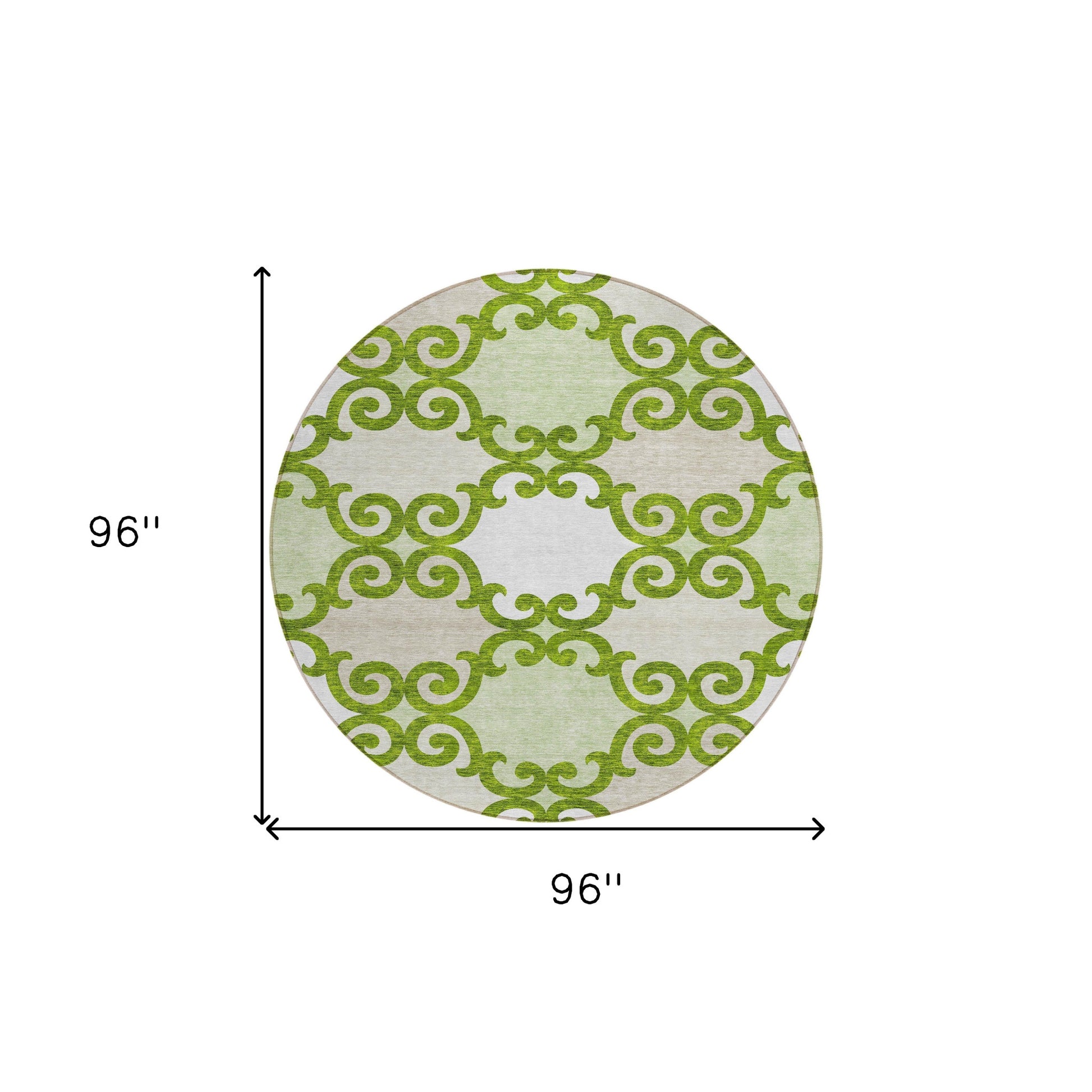Tabselect Home Line 8' Lime Green And Ivory Round Trellis Washable Indoor Outdoor Area Rug