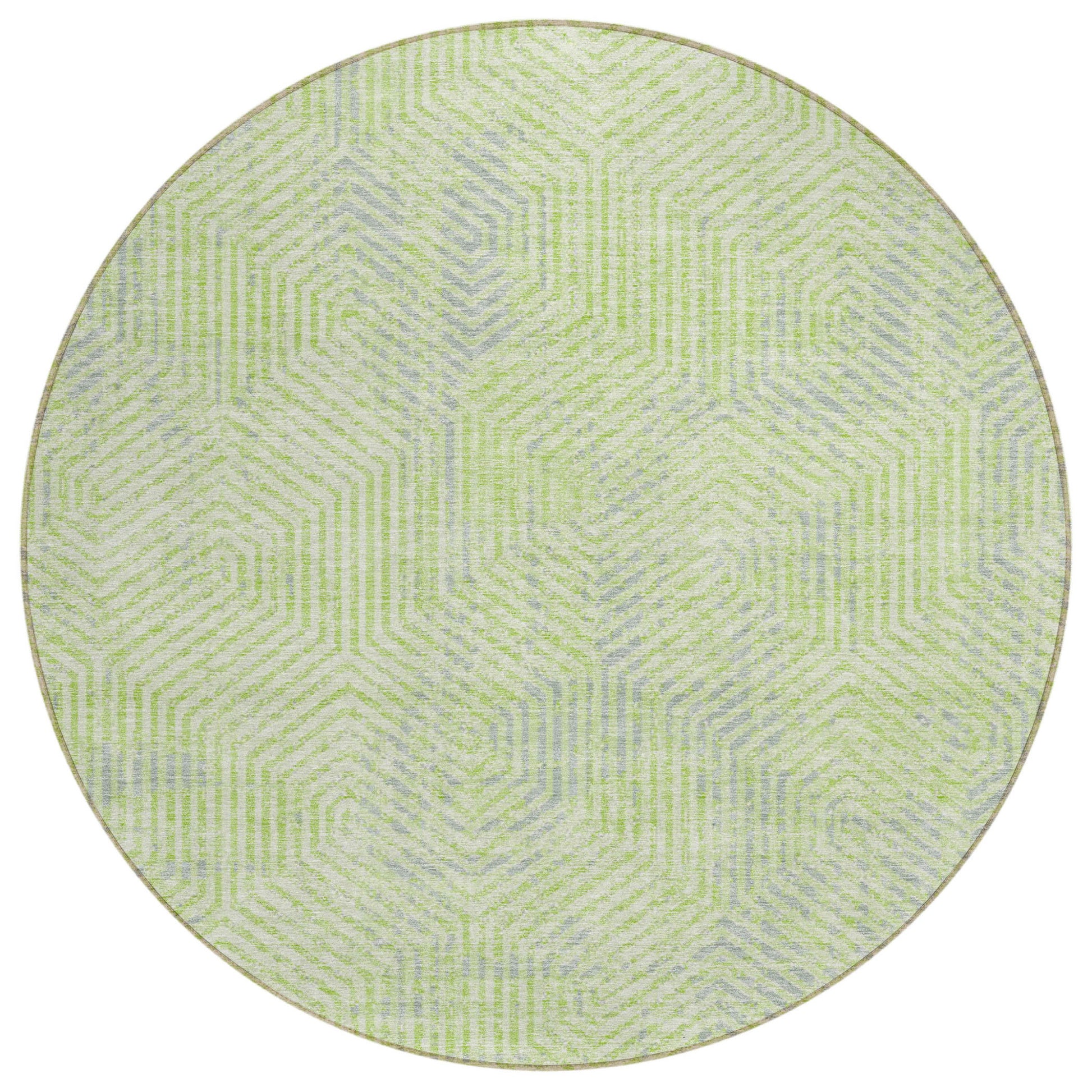 Tabselect Home Line 8' Lime Green Gray And Ivory Round Geometric Washable Indoor Outdoor Area Rug