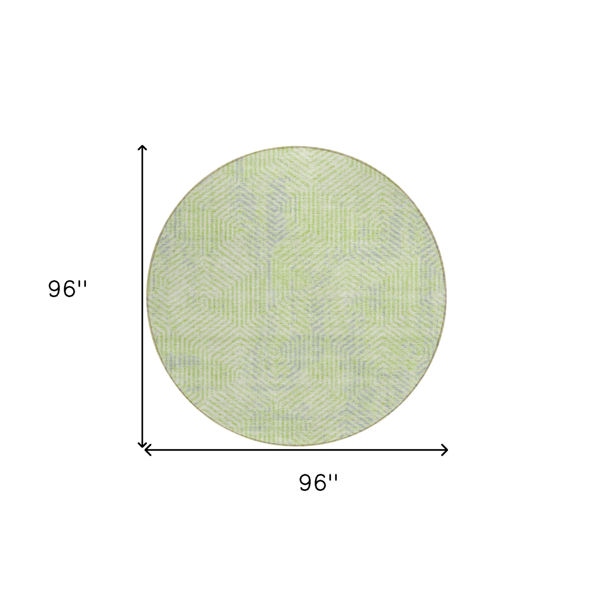Add some artistry to your room with this 8-foot lime green gray and ivory round geometric washable indoor outdoor area rug. This geometric round shaped rug features a geometric pattern in lime green, gray, and ivory that combines a good looking print with a unique and updated shape. The mix of shape, color, and design gives this rug refreshing visual interest. Ideal for outdoor spaces or high traffic areas with kids and pets, this rug is made from heavy duty polyester that is stain resistant to help repel water, dirt, and stains. Versatile in use, durable, and easy to maintain, this rug is an ideal solution to add a decorative and inviting touch to your indoor or outdoor space. 96-inch h x 96-inch w x 0.19-inch d.