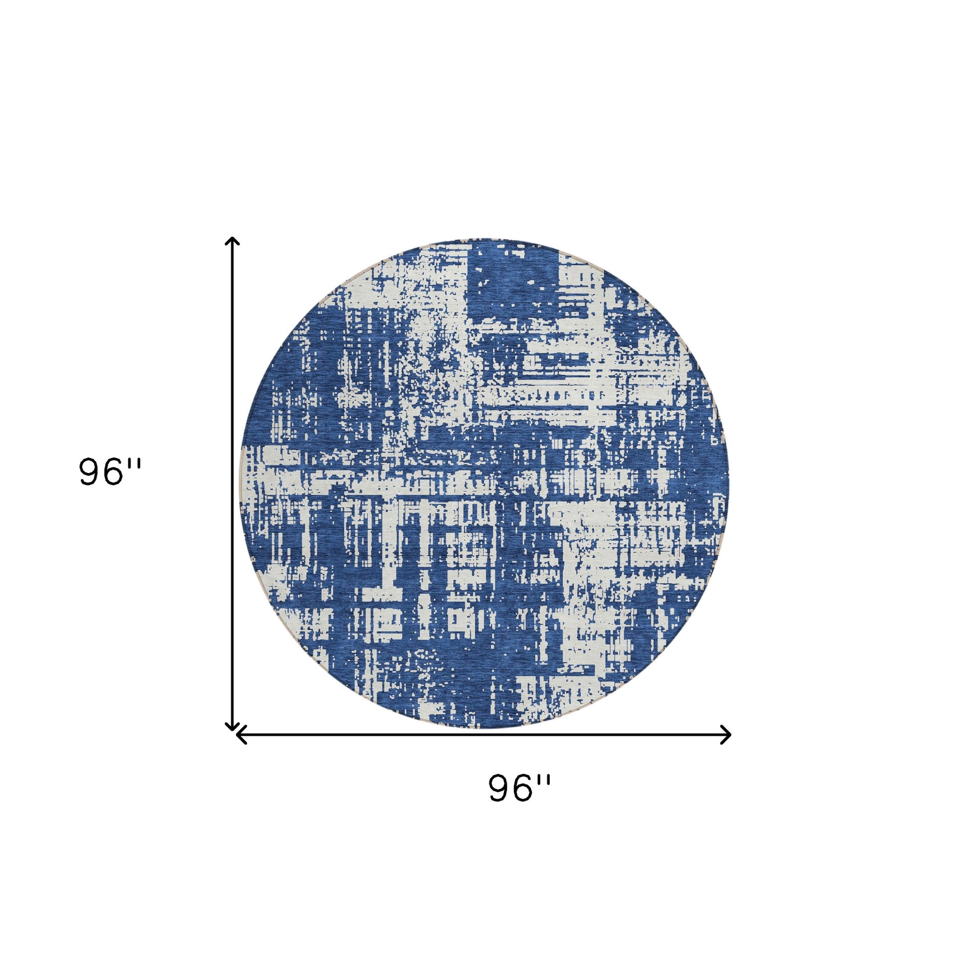 Tabselect Home Line 8' Navy Blue And Ivory Round Abstract Washable Indoor Outdoor Area Rug