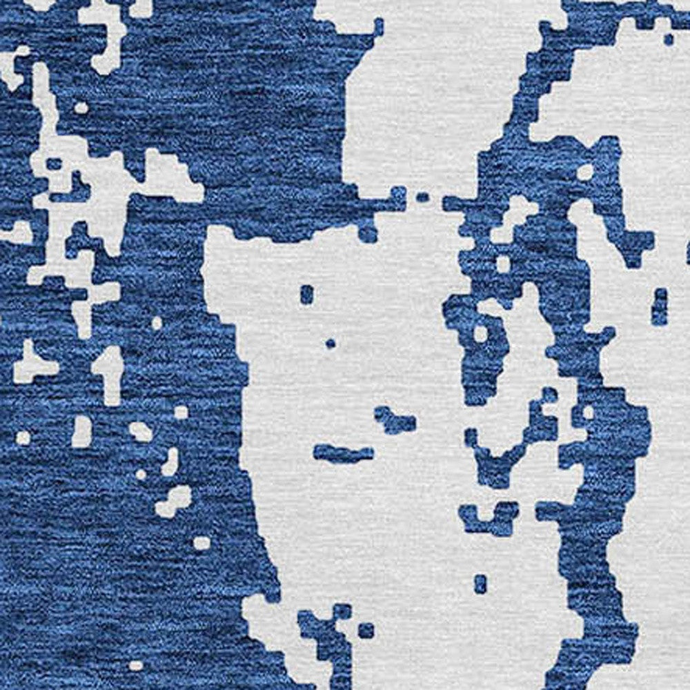 Tabselect Home Line 8' Navy Blue And Ivory Round Abstract Washable Indoor Outdoor Area Rug