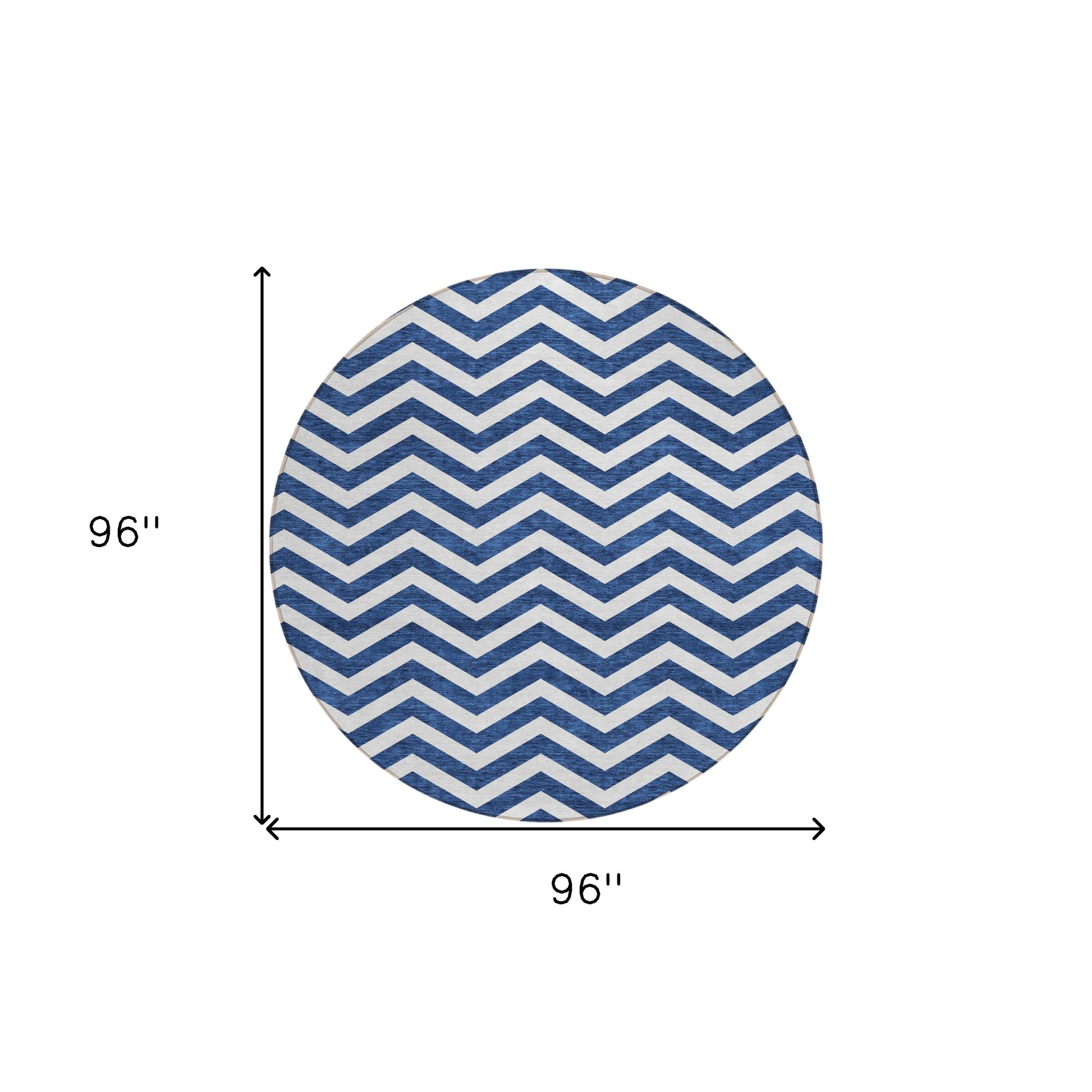 Tabselect Home Line 8' Navy Blue And Ivory Round Chevron Washable Indoor Outdoor Area Rug