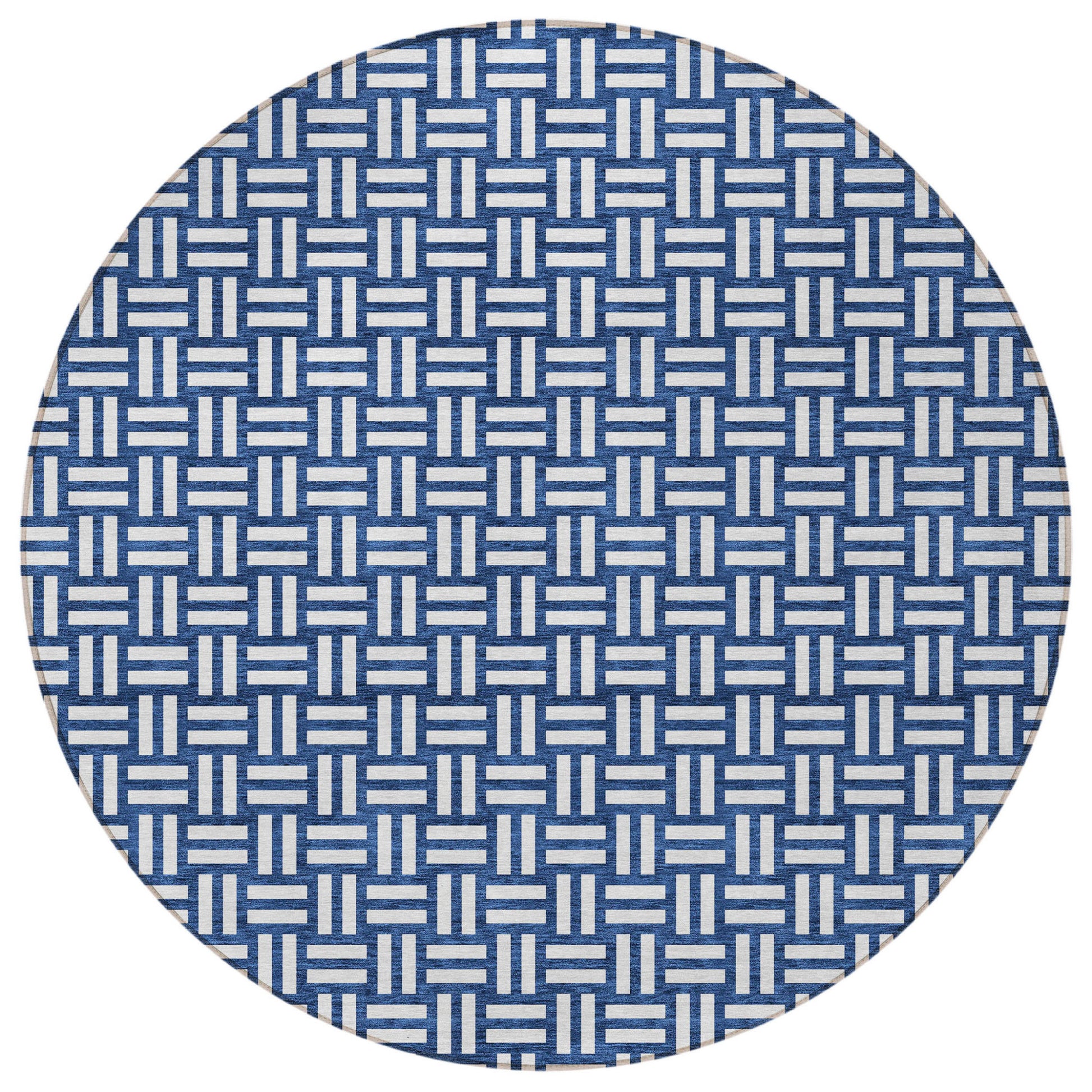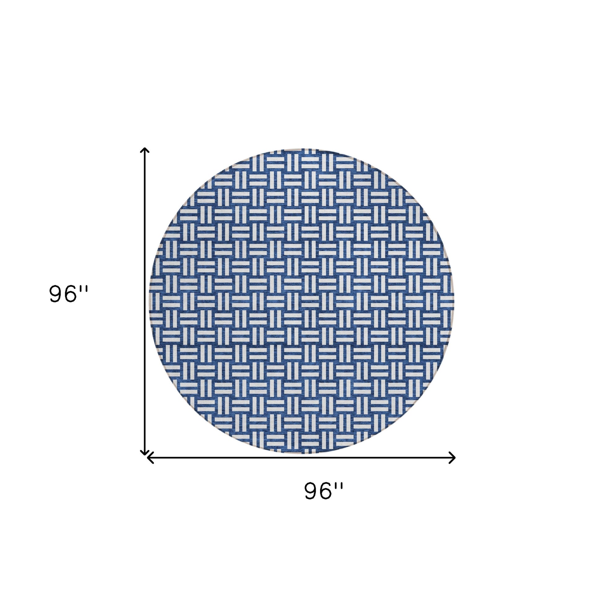 Tabselect Home Line 8' Navy Blue And Ivory Round Geometric Washable Indoor Outdoor Area Rug