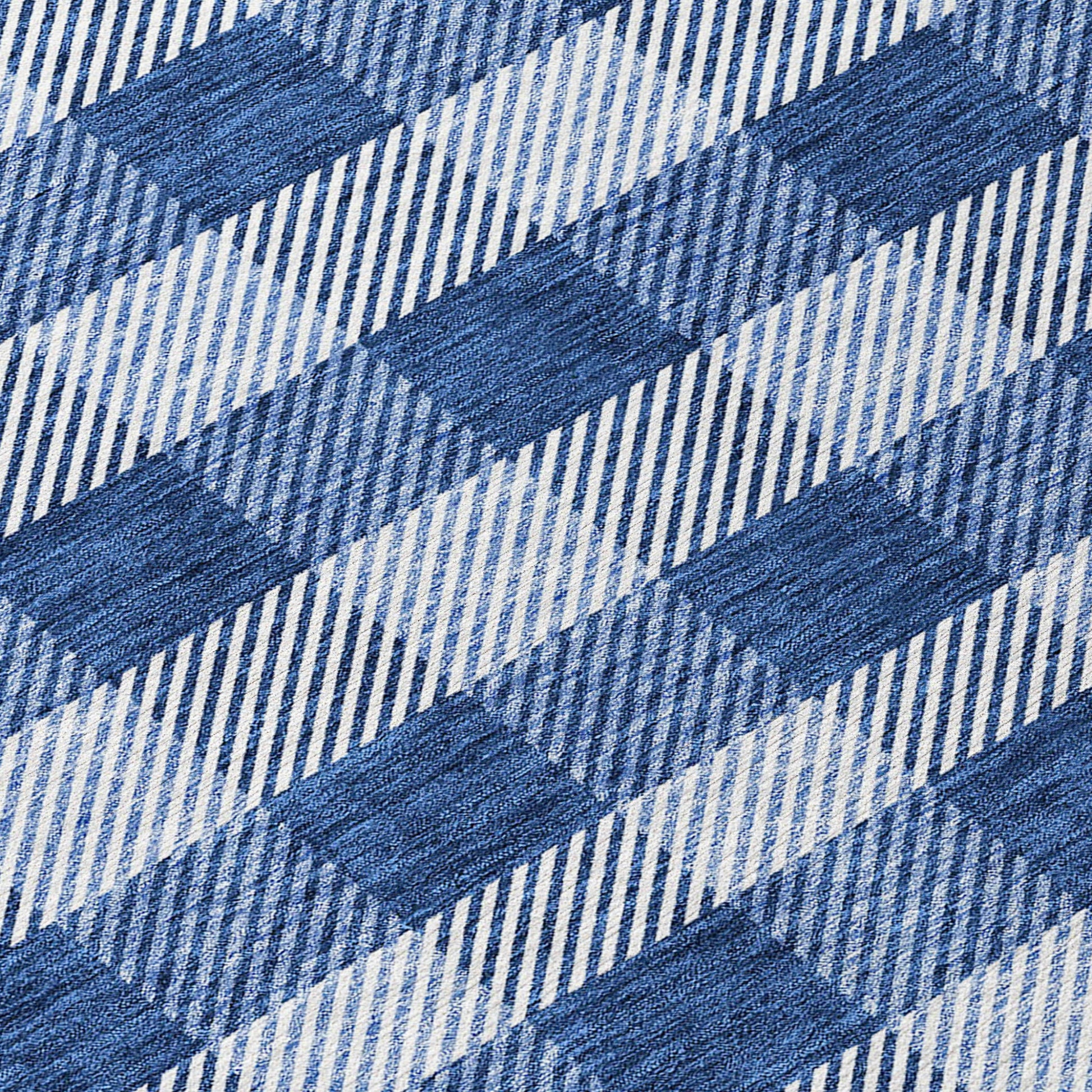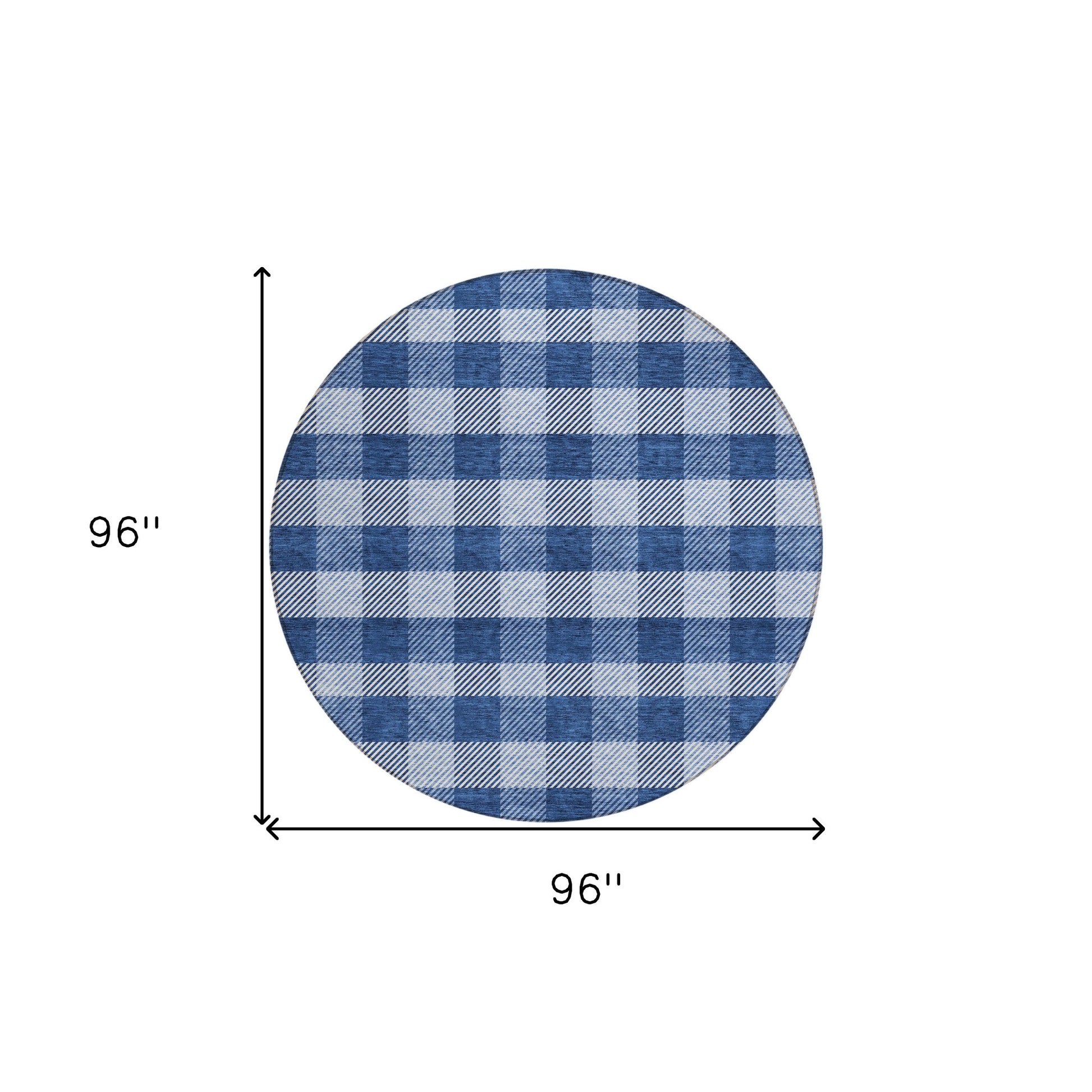Tabselect Home Line 8' Navy Blue And Ivory Round Plaid Washable Indoor Outdoor Area Rug