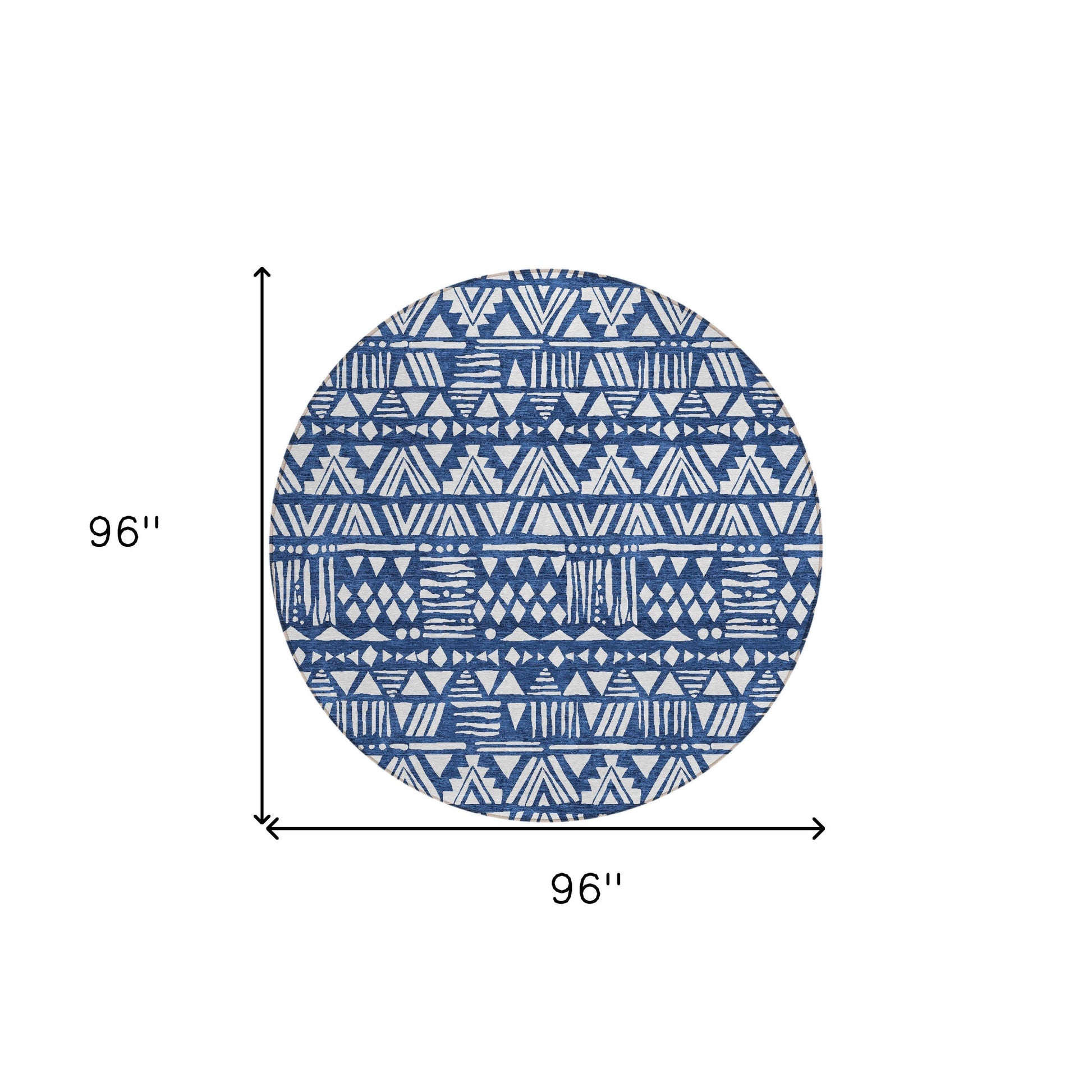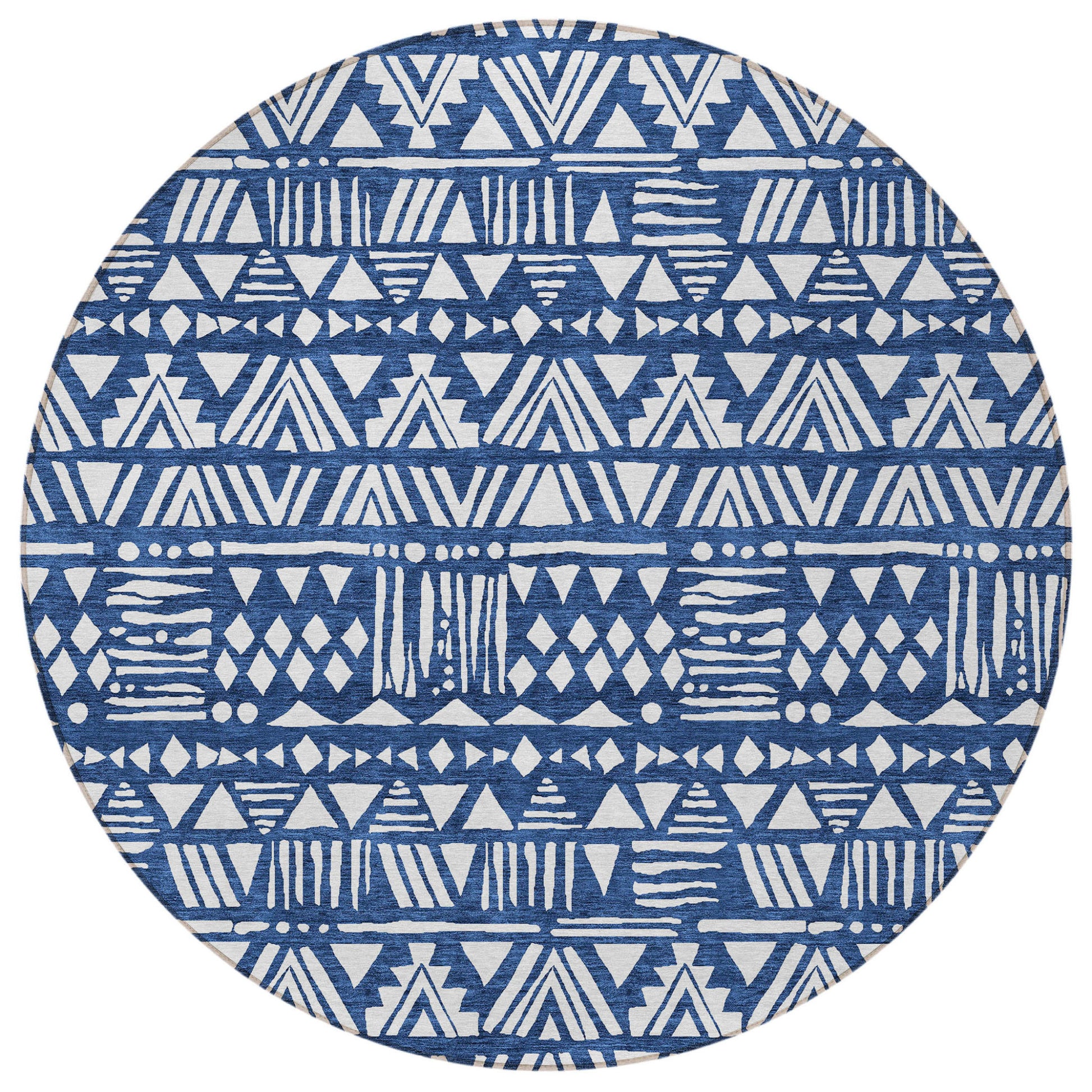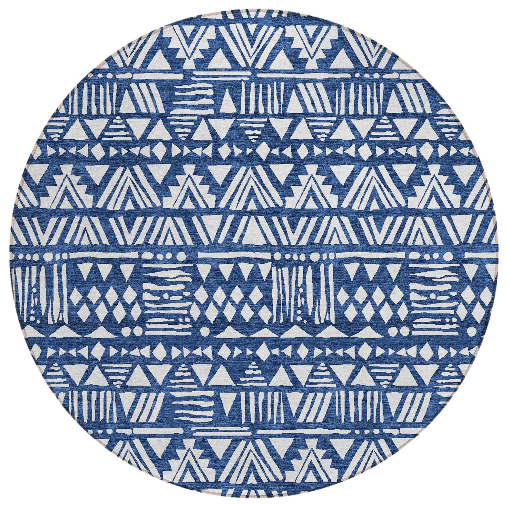Tabselect Home Line 8' Navy Blue And Ivory Round Southwestern Washable Indoor Outdoor Area Rug