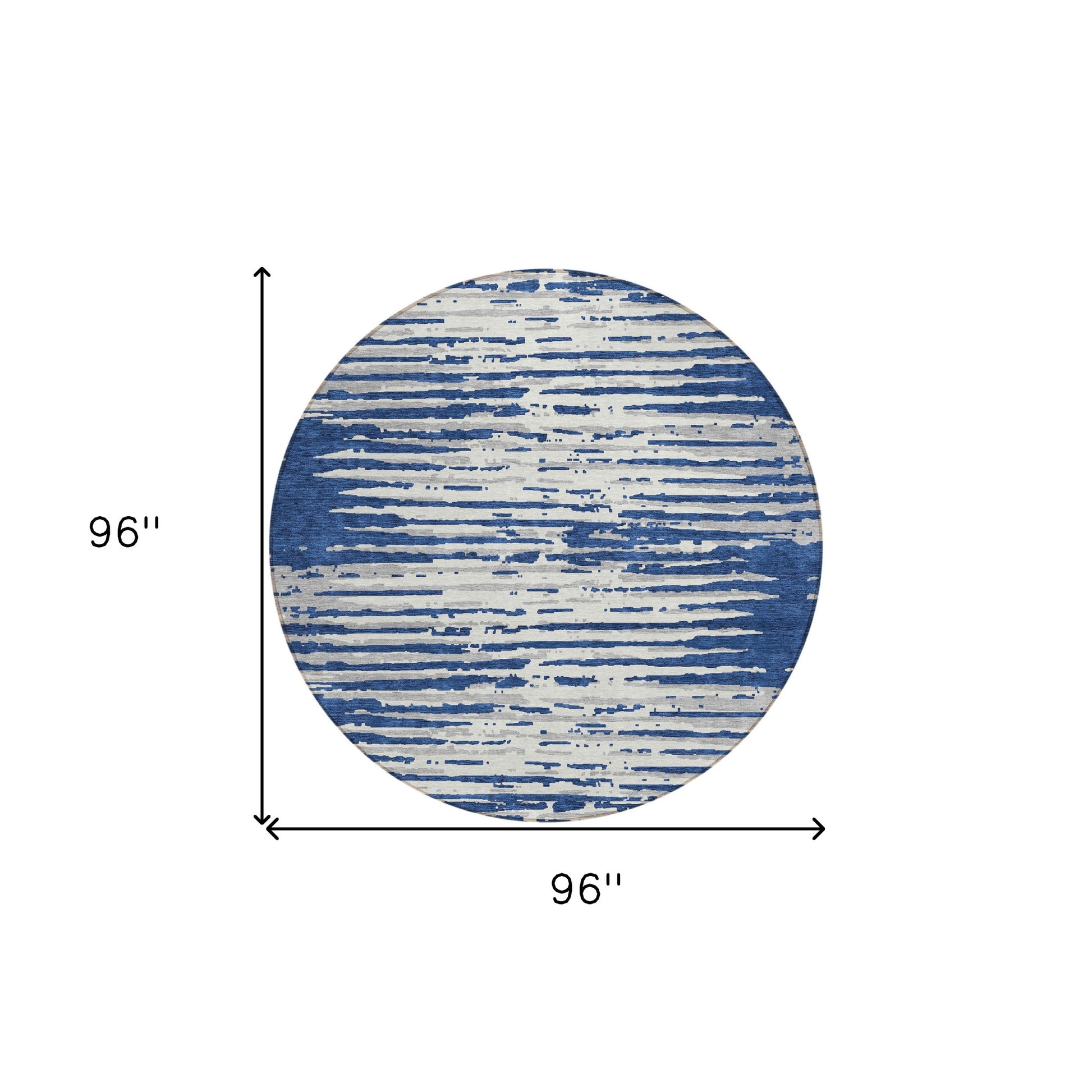 Tabselect Home Line 8' Navy Blue And Ivory Round Striped Washable Indoor Outdoor Area Rug