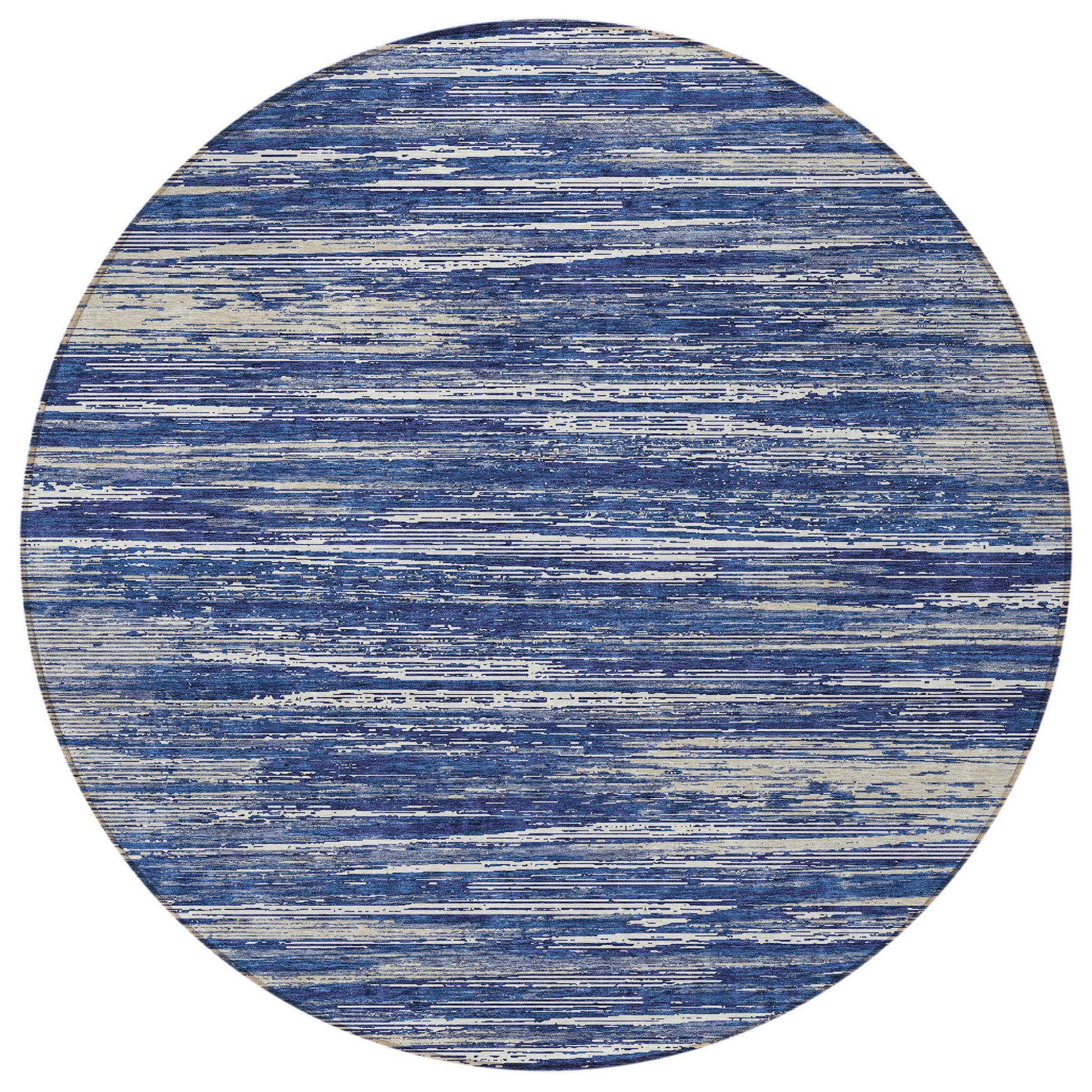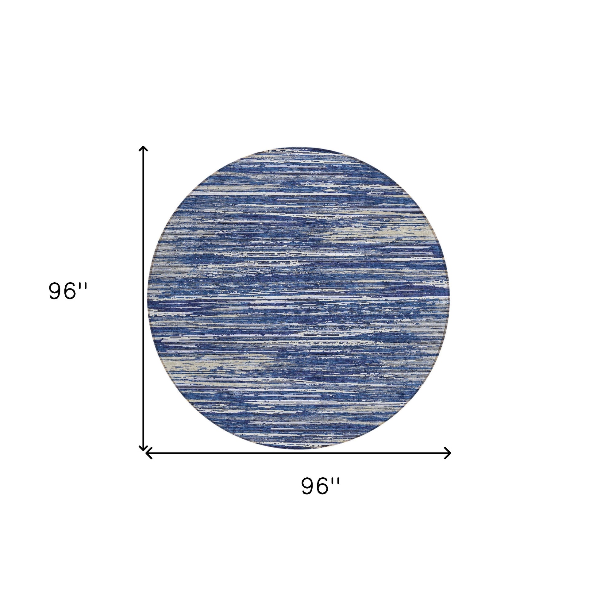 Tabselect Home Line 8' Navy Blue And Ivory Round Striped Washable Indoor Outdoor Area Rug