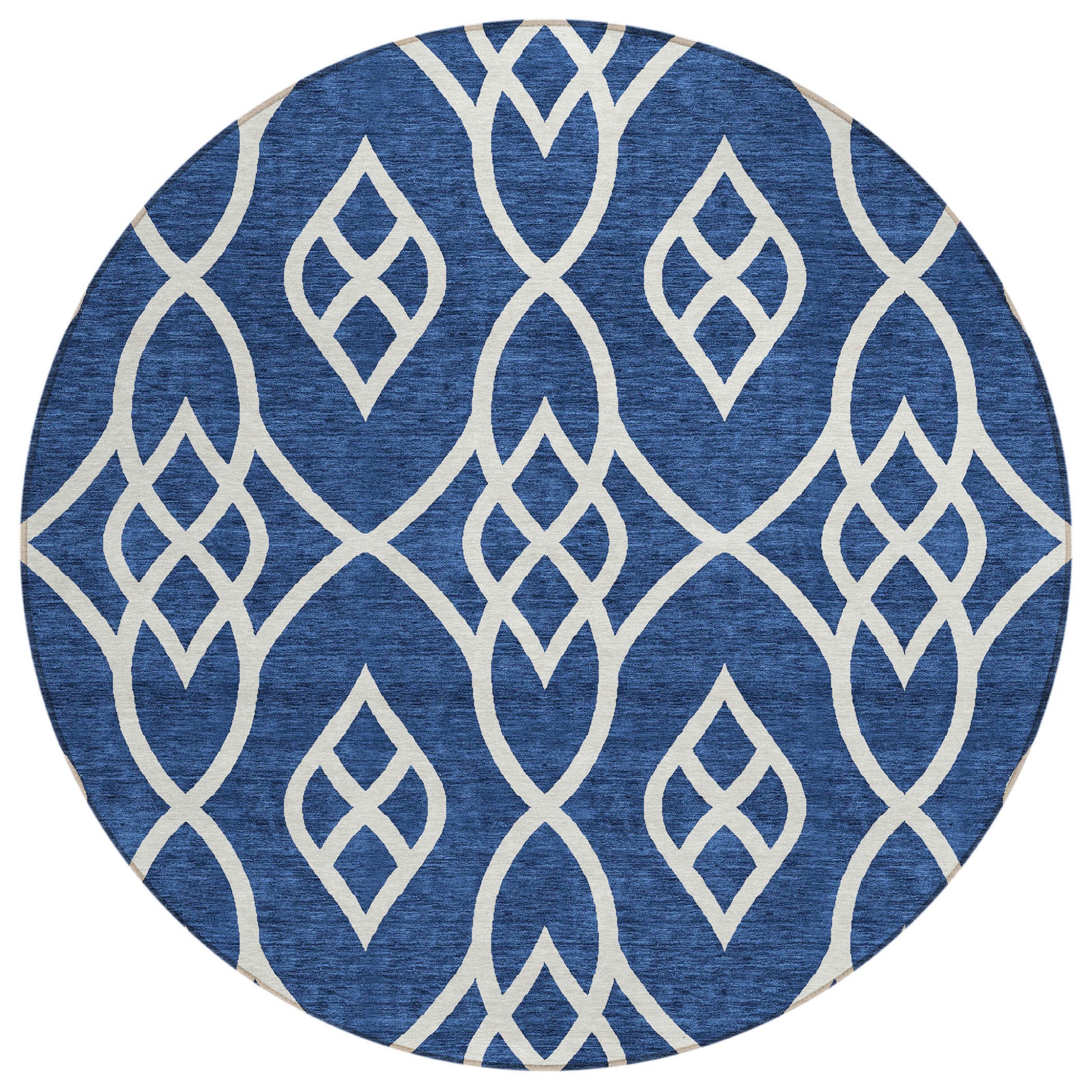 Tabselect Home Line 8' Navy Blue And Ivory Round Trellis Washable Indoor Outdoor Area Rug