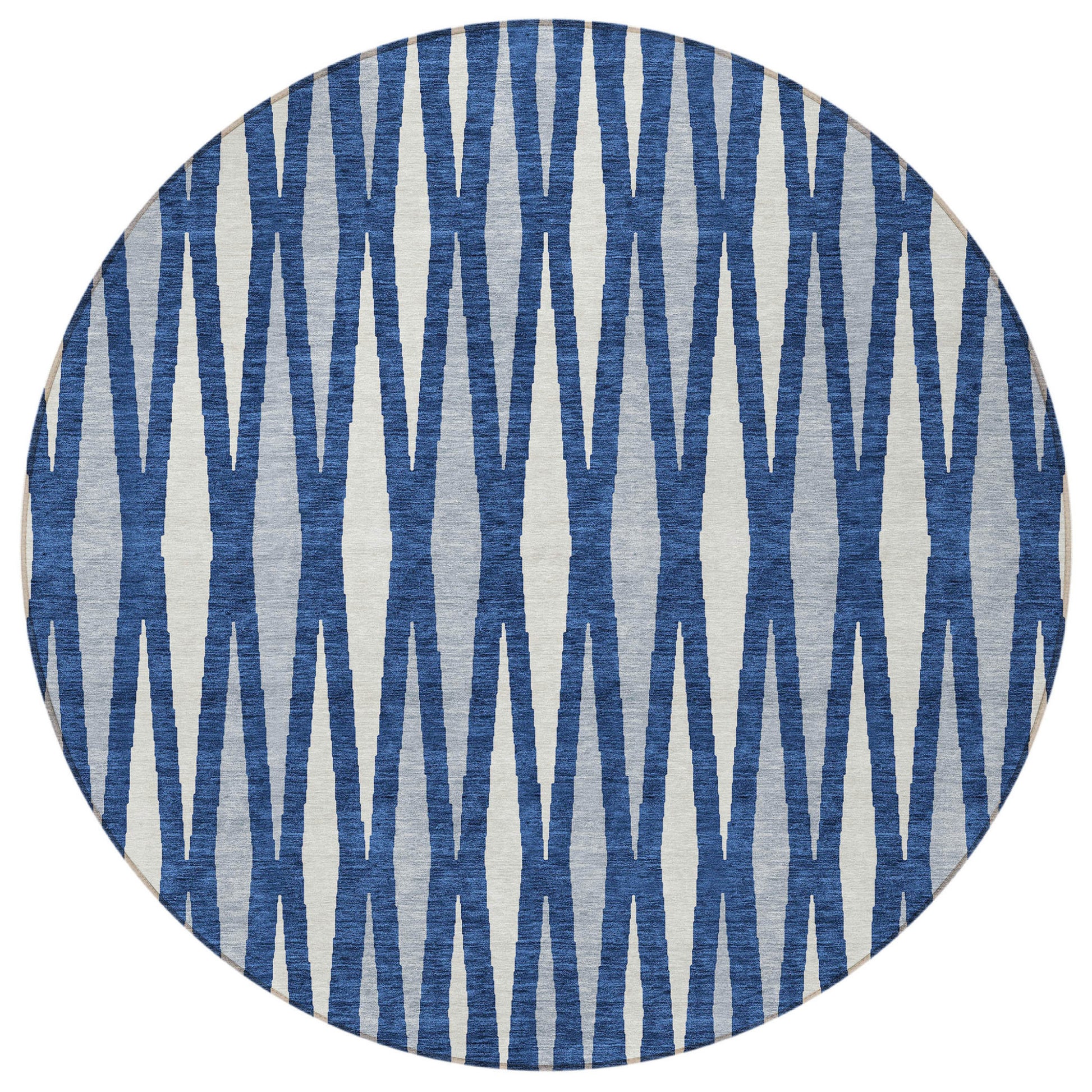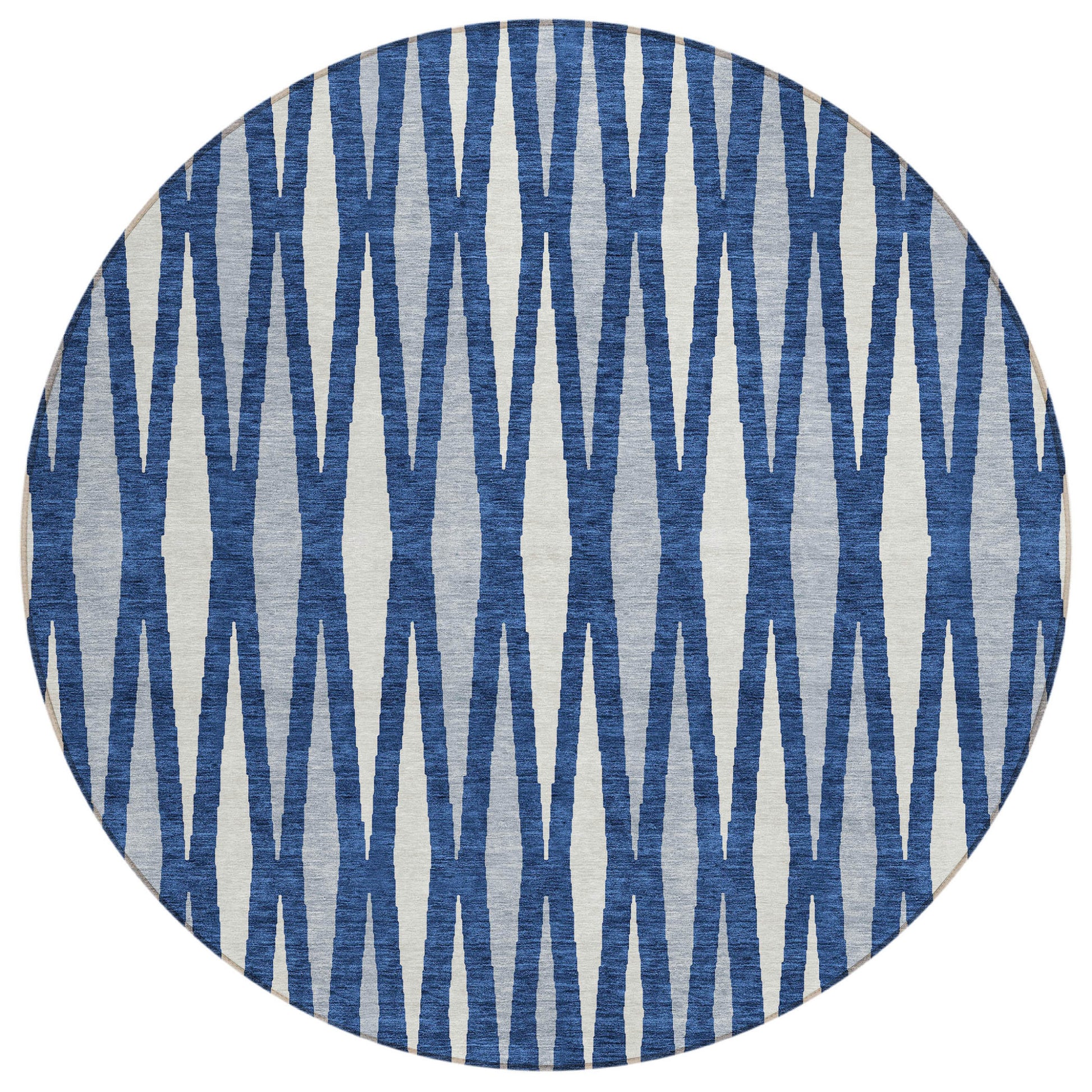 Tabselect Home Line 8' Navy Blue Gray And Ivory Round Geometric Washable Indoor Outdoor Area Rug