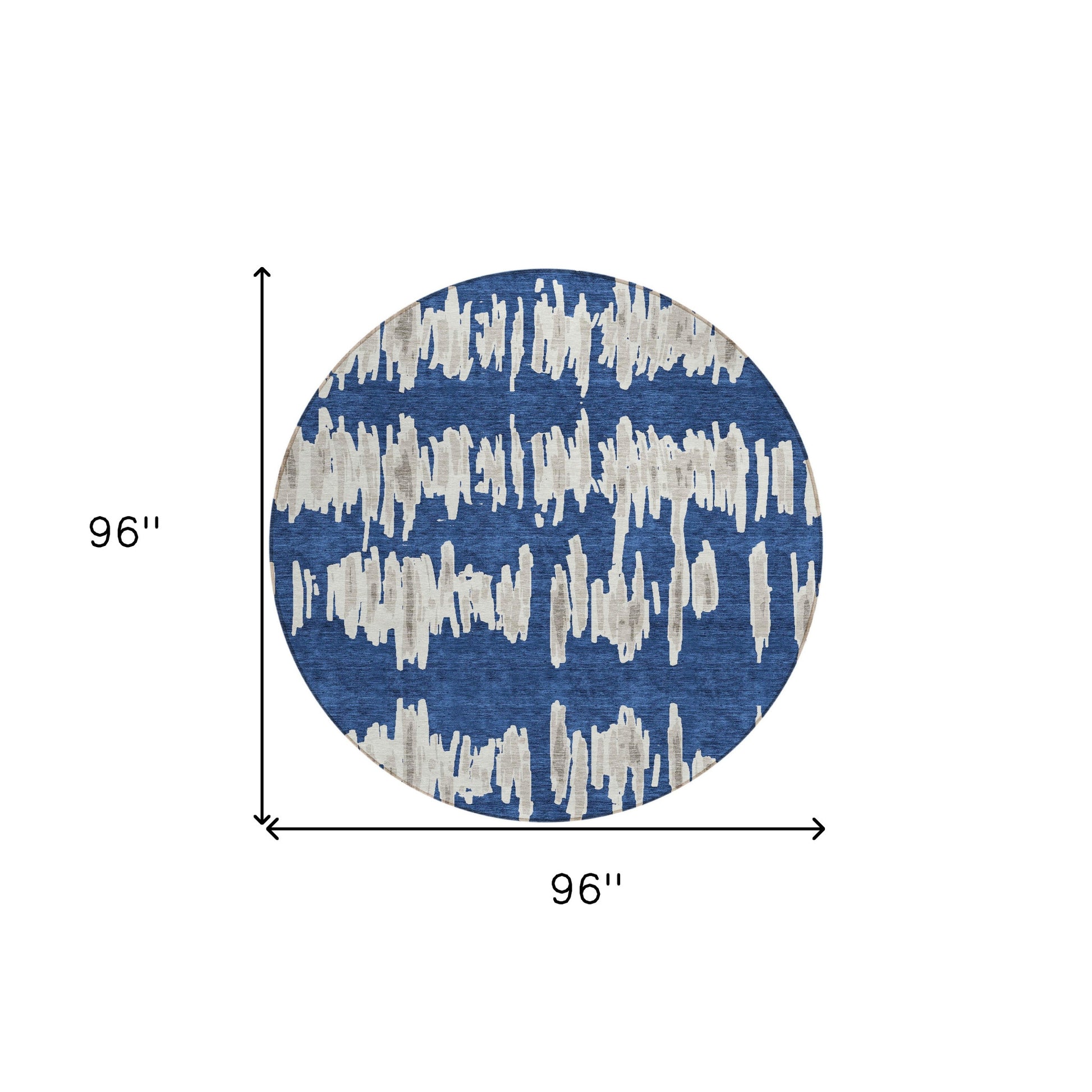 Add some artistry to your room with this 8-foot navy blue gray and ivory round striped washable indoor outdoor area rug. This geometric round shaped rug features a striped pattern in navy blue, gray, and ivory that combines a good looking print with a unique and updated shape. The mix of shape, color, and design gives this rug refreshing visual interest. Ideal for outdoor spaces or high traffic areas with kids and pets, this rug is made from heavy duty polyester that is stain resistant to help repel water, dirt, and stains. Versatile in use, durable, and easy to maintain, this rug is an ideal solution to add a decorative and inviting touch to your indoor or outdoor space. 96-inch h x 96-inch w x 0.19-inch d.