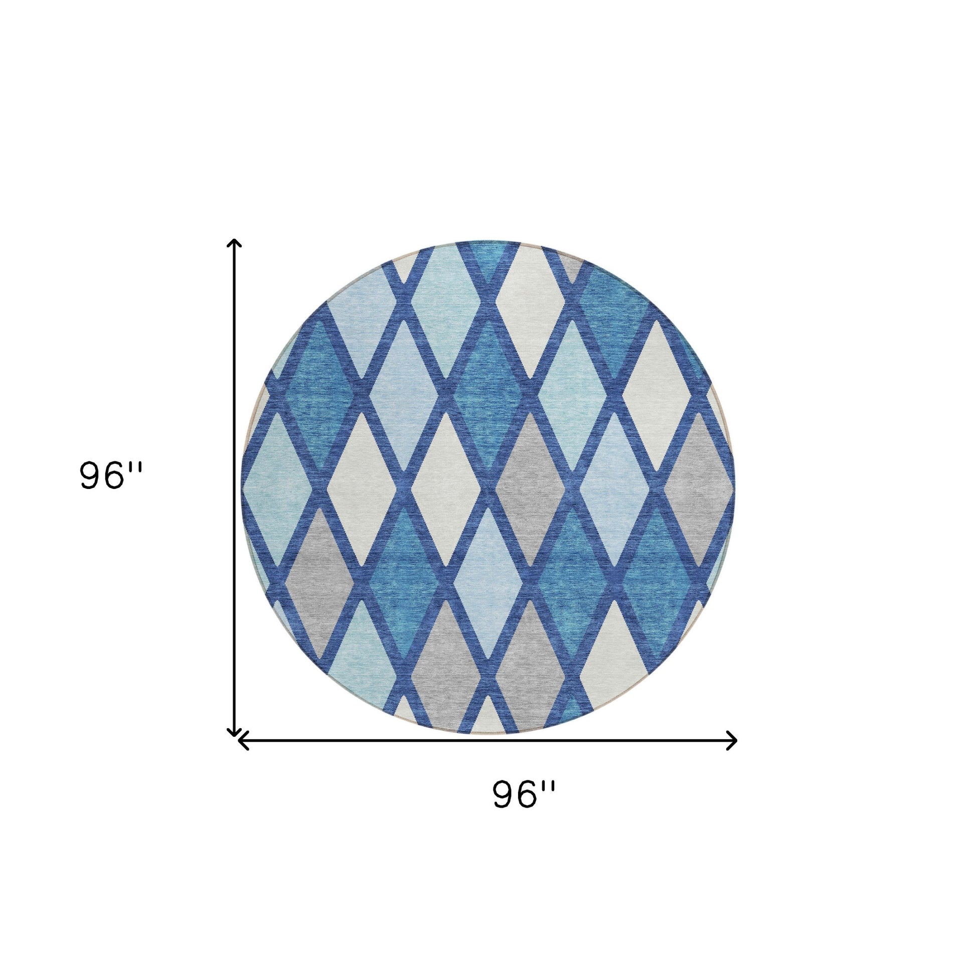 Tabselect Home Line 8' Navy Blue Sky Blue And Ivory Round Geometric Washable Indoor Outdoor Area Rug