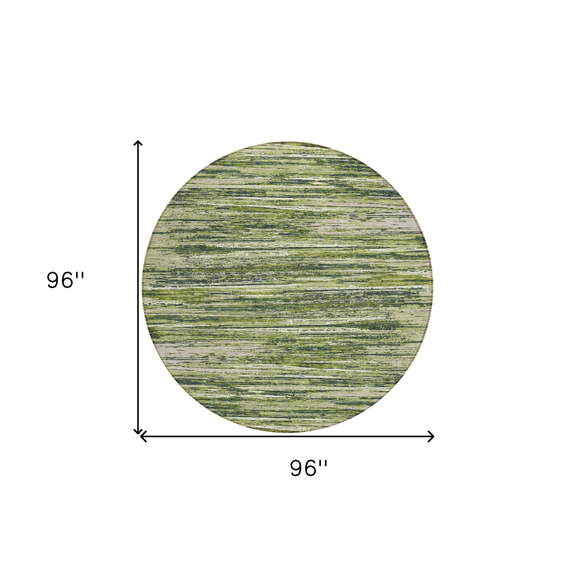 Tabselect Home Line 8' Olive Green And Ivory Round Striped Washable Indoor Outdoor Area Rug