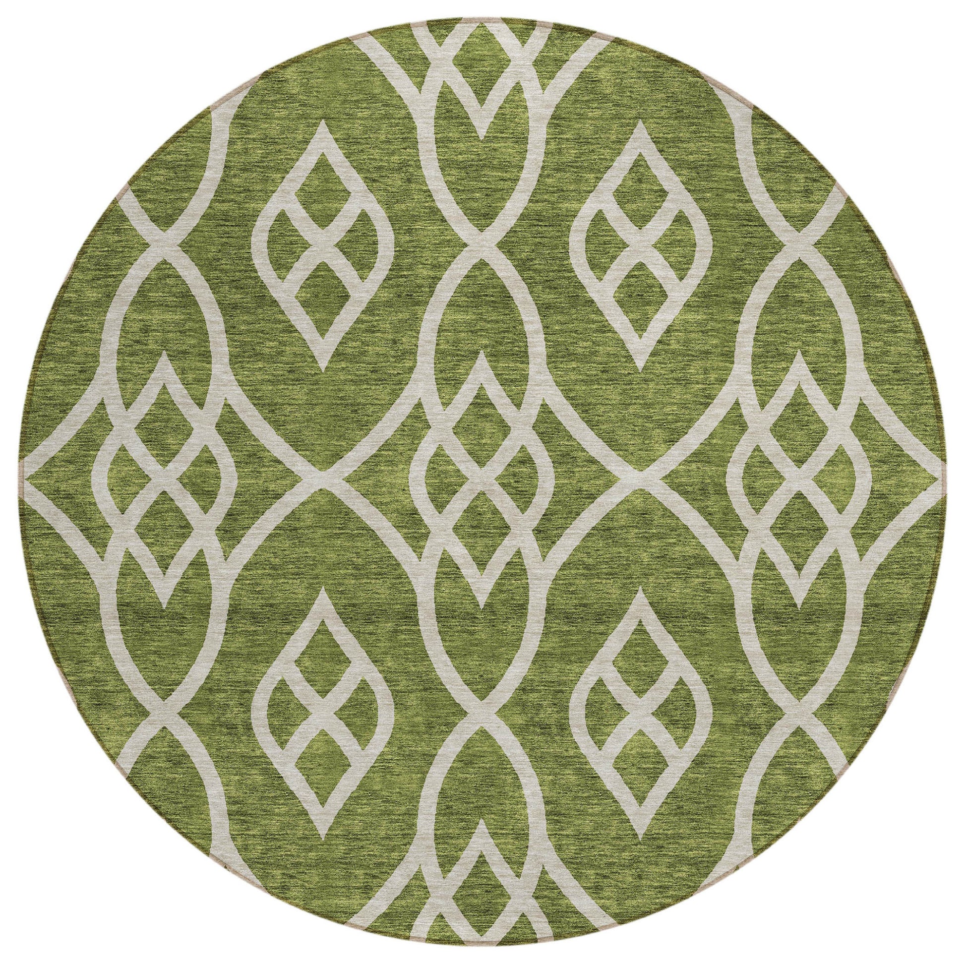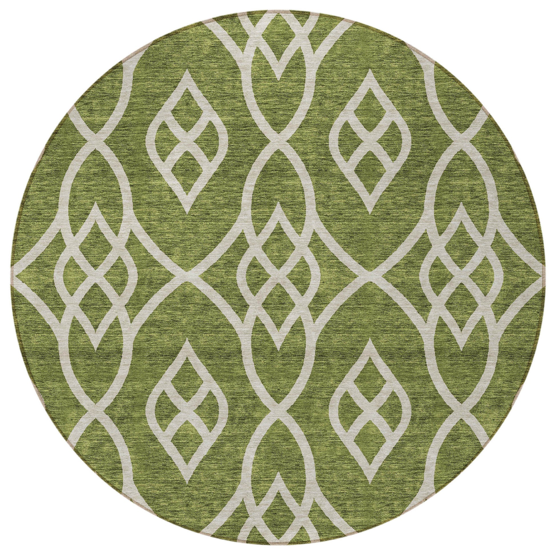 Tabselect Home Line 8' Olive Green And Ivory Round Trellis Washable Indoor Outdoor Area Rug