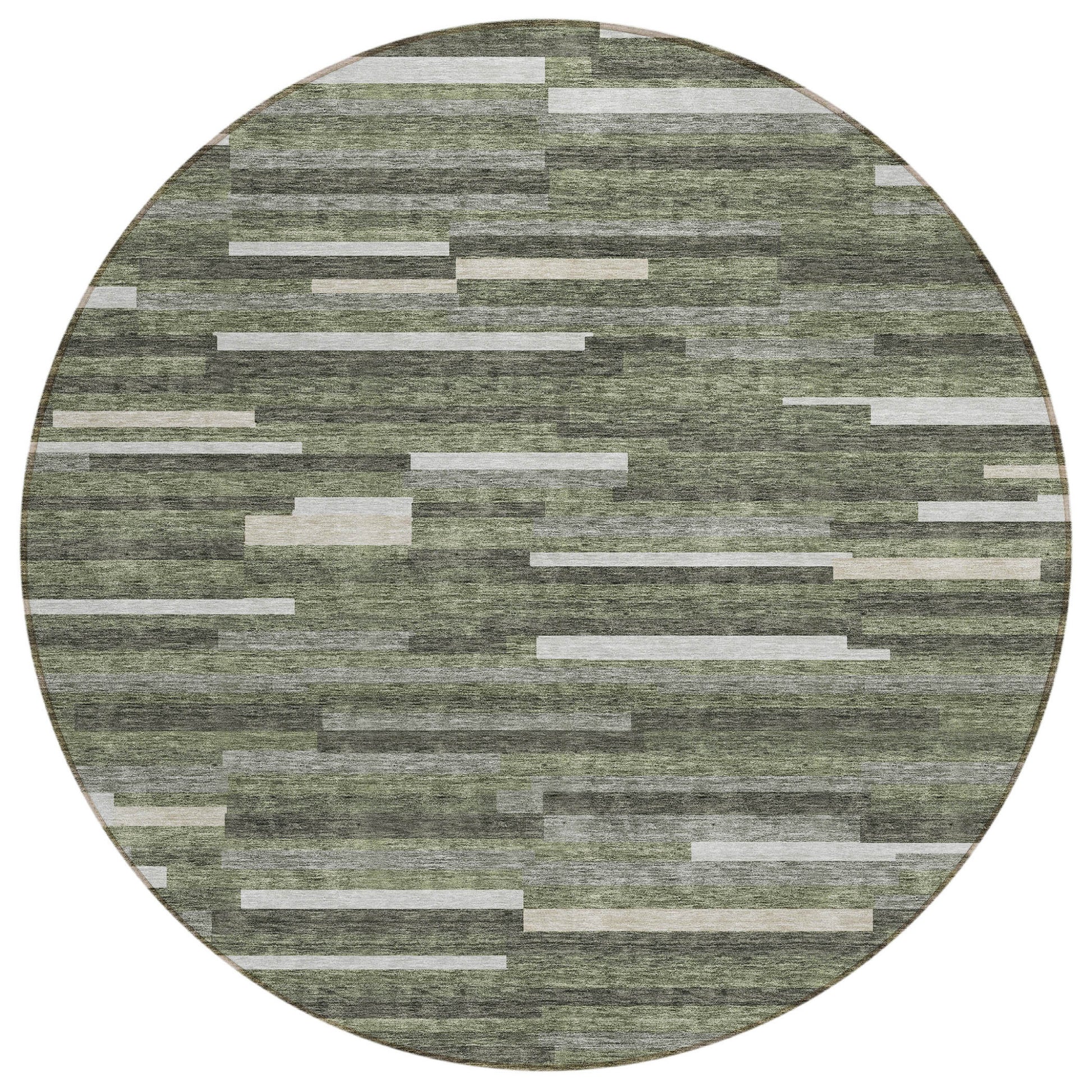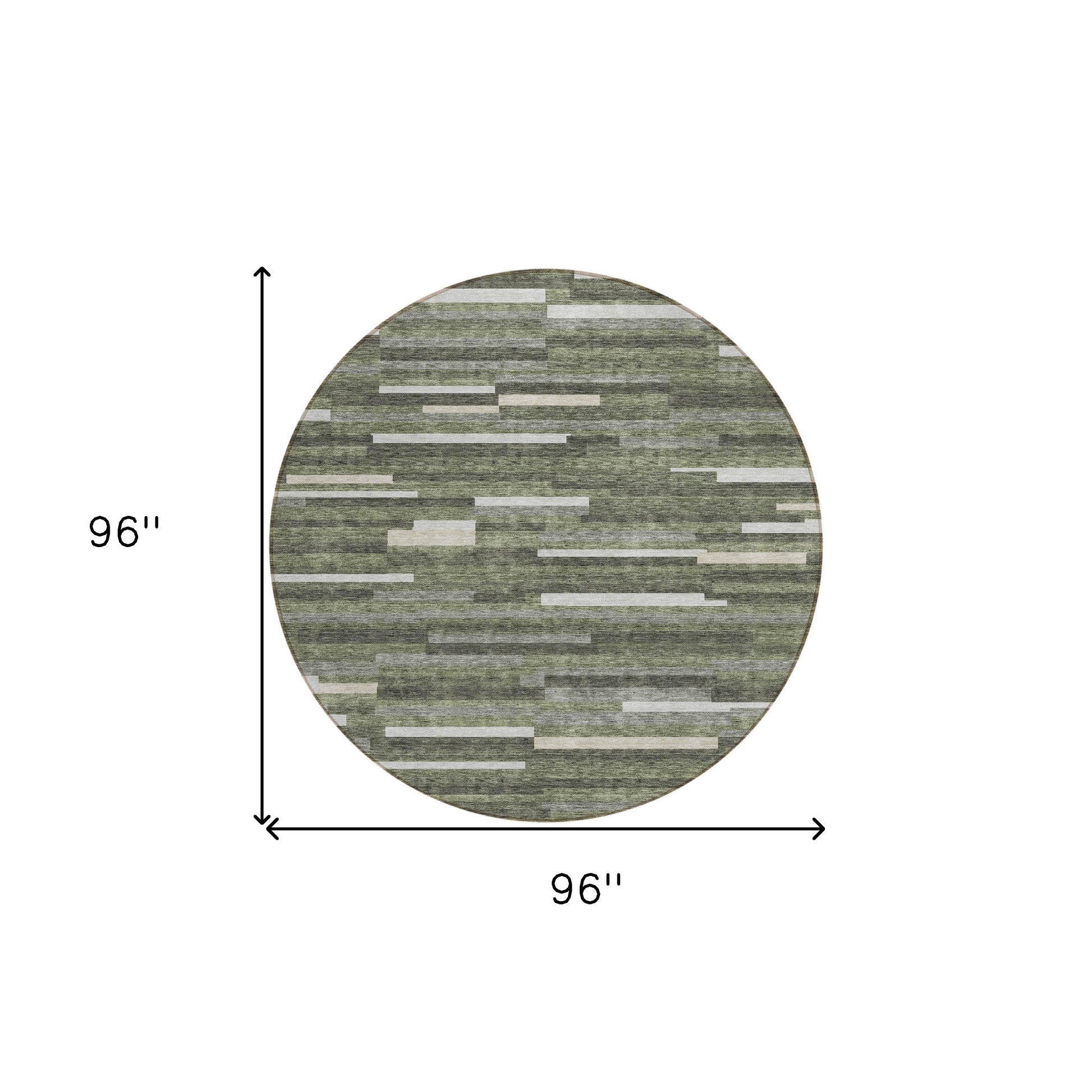 Tabselect Home Line 8' Olive Green Gray And Ivory Round Striped Washable Indoor Outdoor Area Rug