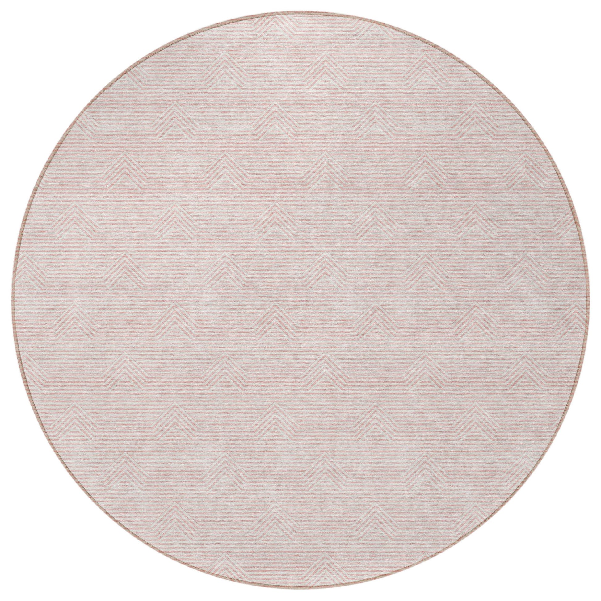 Tabselect Home Line 8' Pink And Gray Round Geometric Washable Indoor Outdoor Area Rug