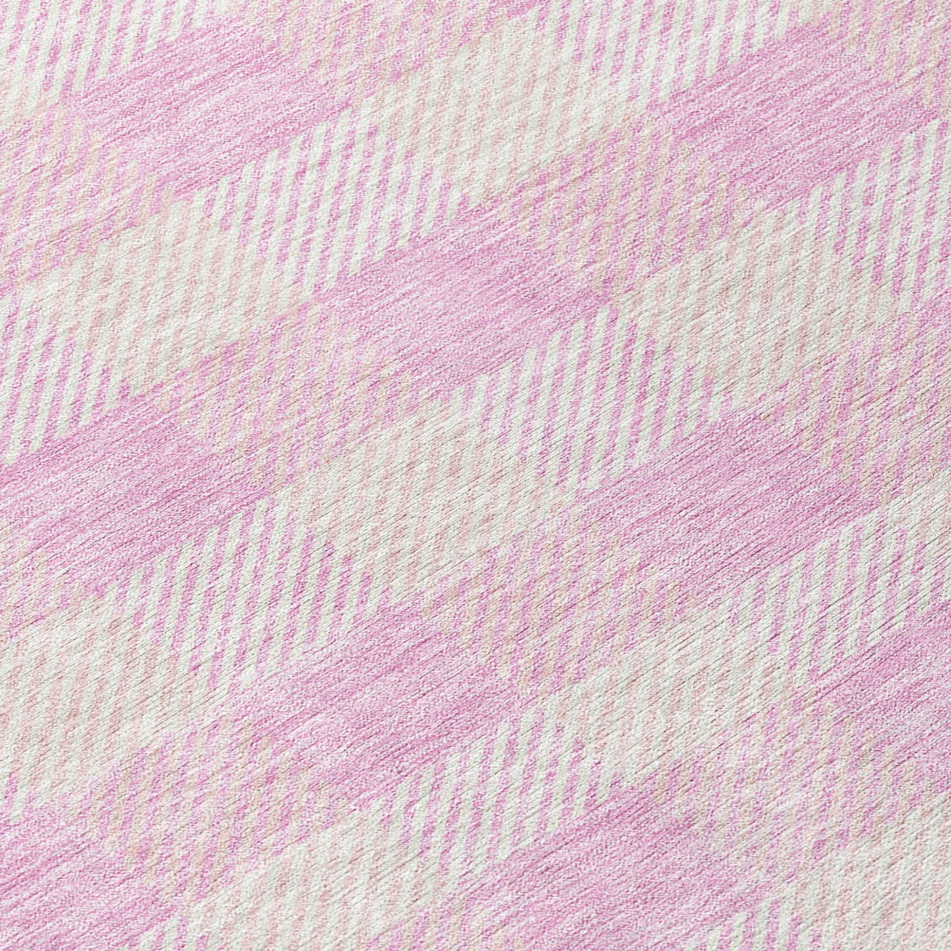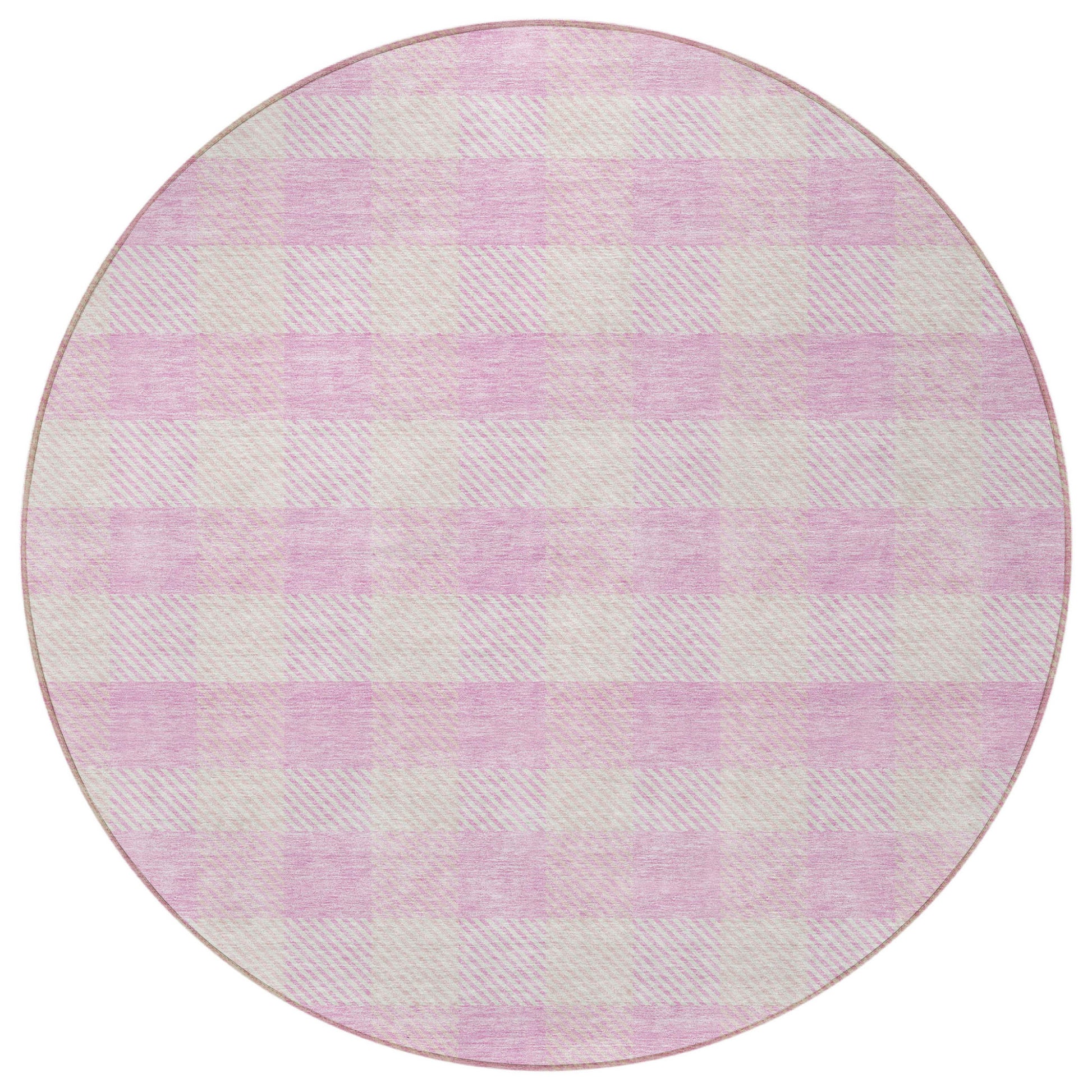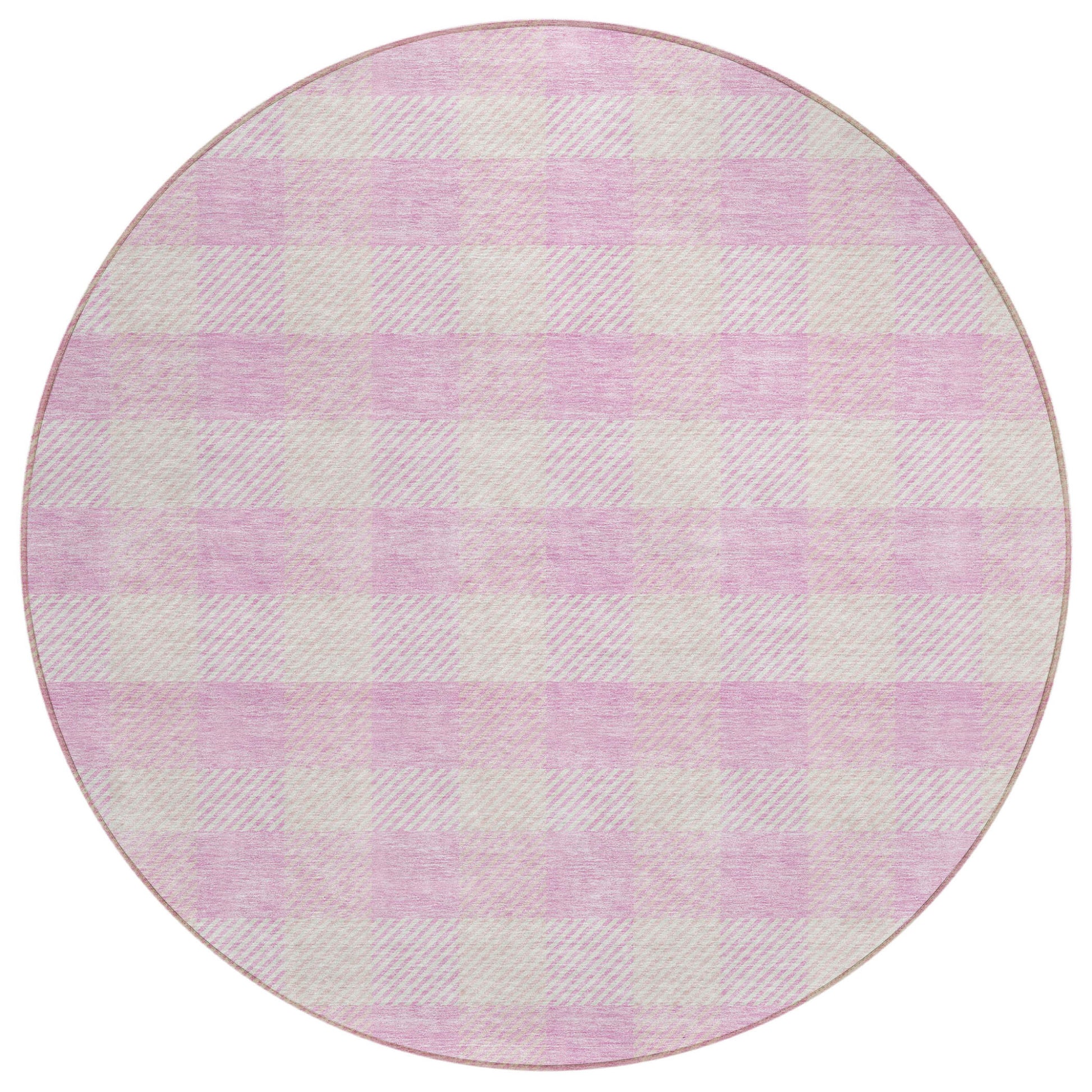 Tabselect Home Line 8' Pink And Gray Round Plaid Washable Indoor Outdoor Area Rug