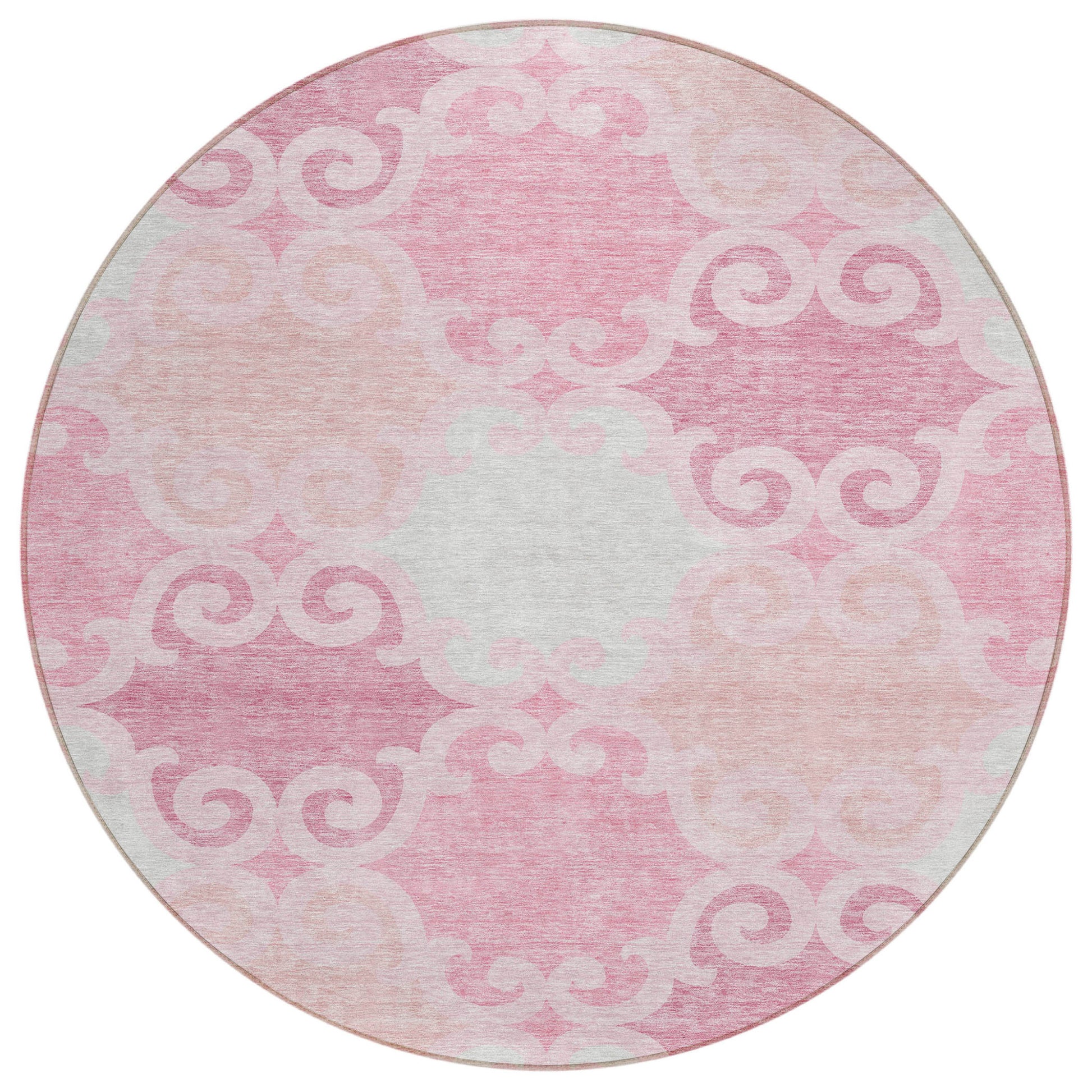 Tabselect Home Line 8' Pink And Gray Round Trellis Washable Indoor Outdoor Area Rug