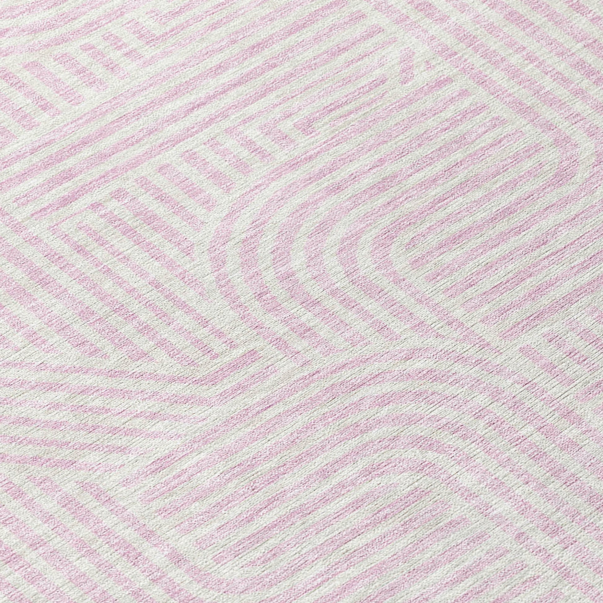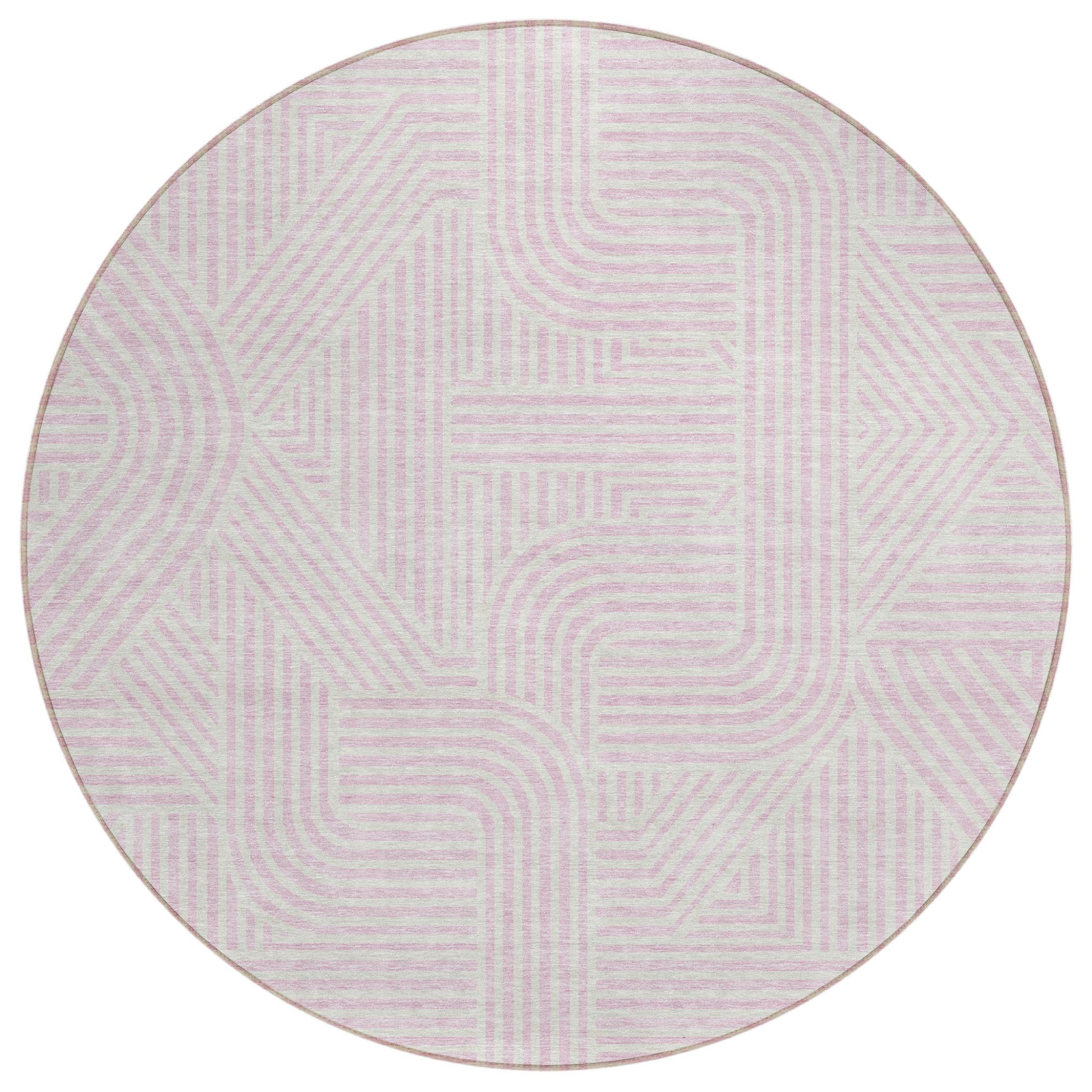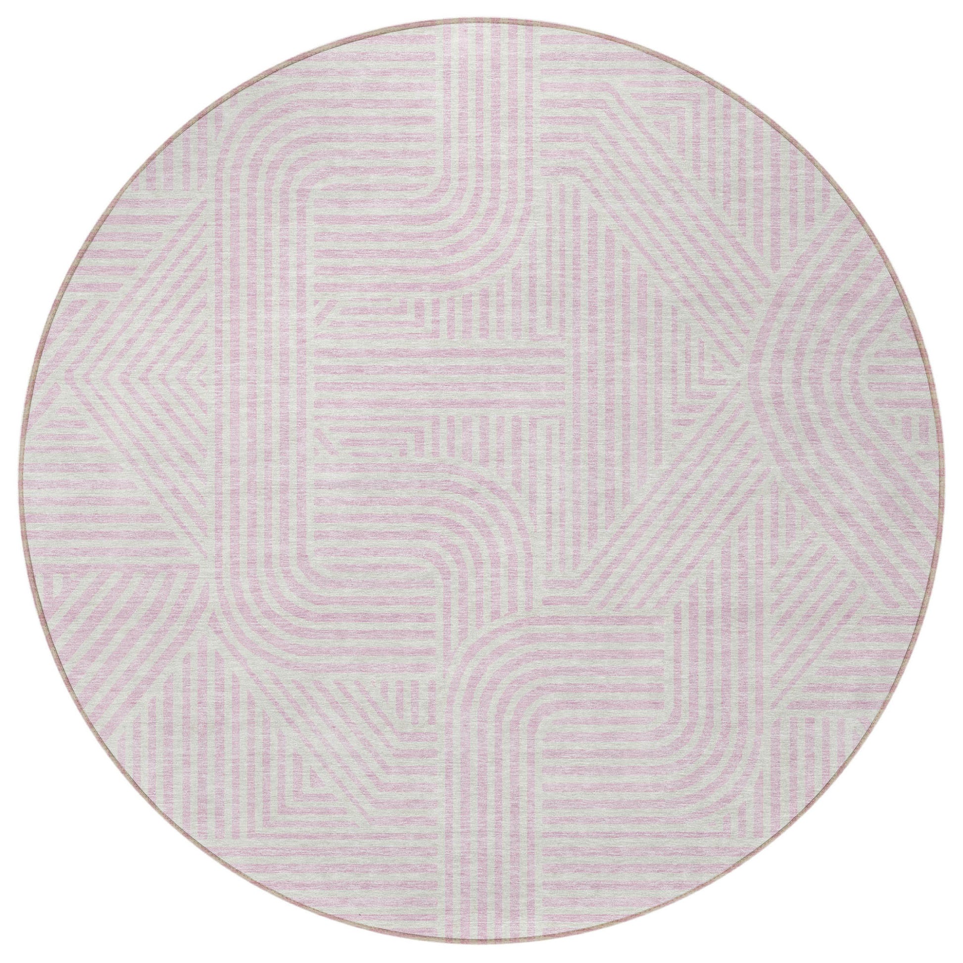 Tabselect Home Line 8' Pink And Ivory Round Abstract Washable Indoor Outdoor Area Rug