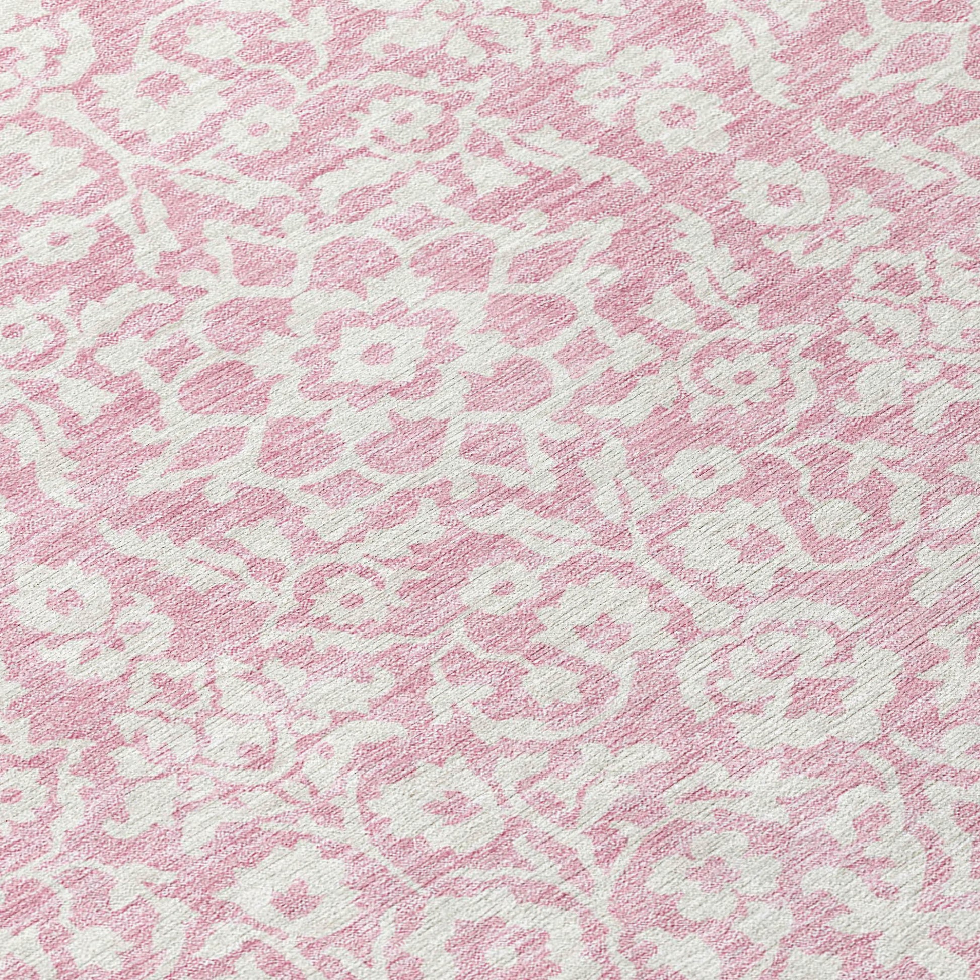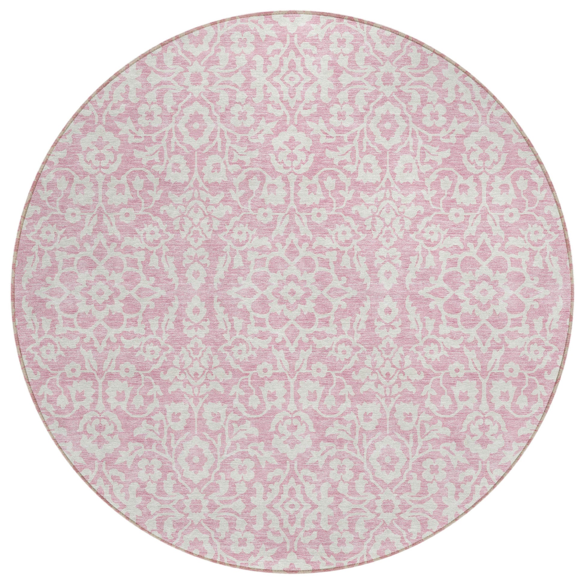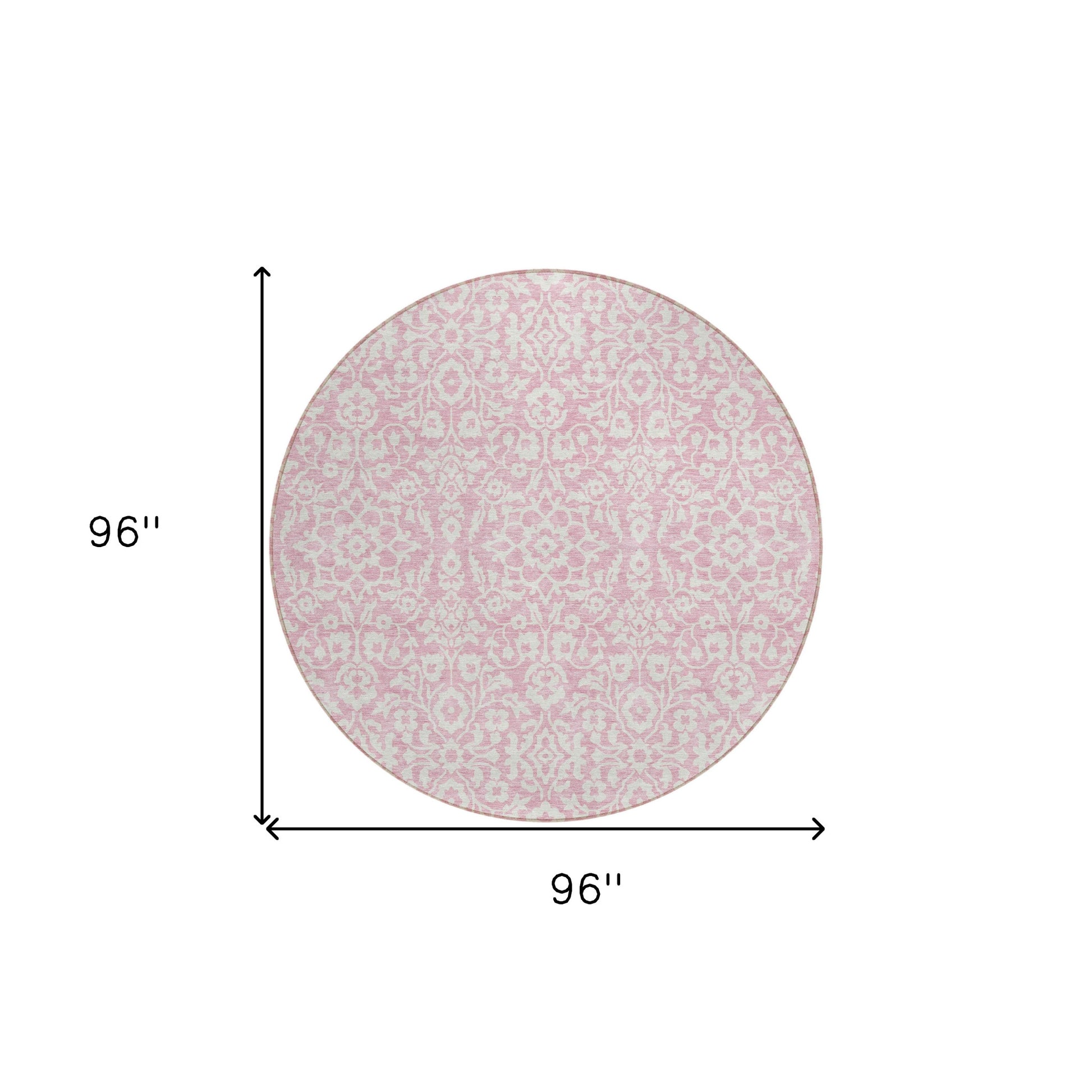 Tabselect Home Line 8' Pink And Ivory Round Damask Washable Indoor Outdoor Area Rug