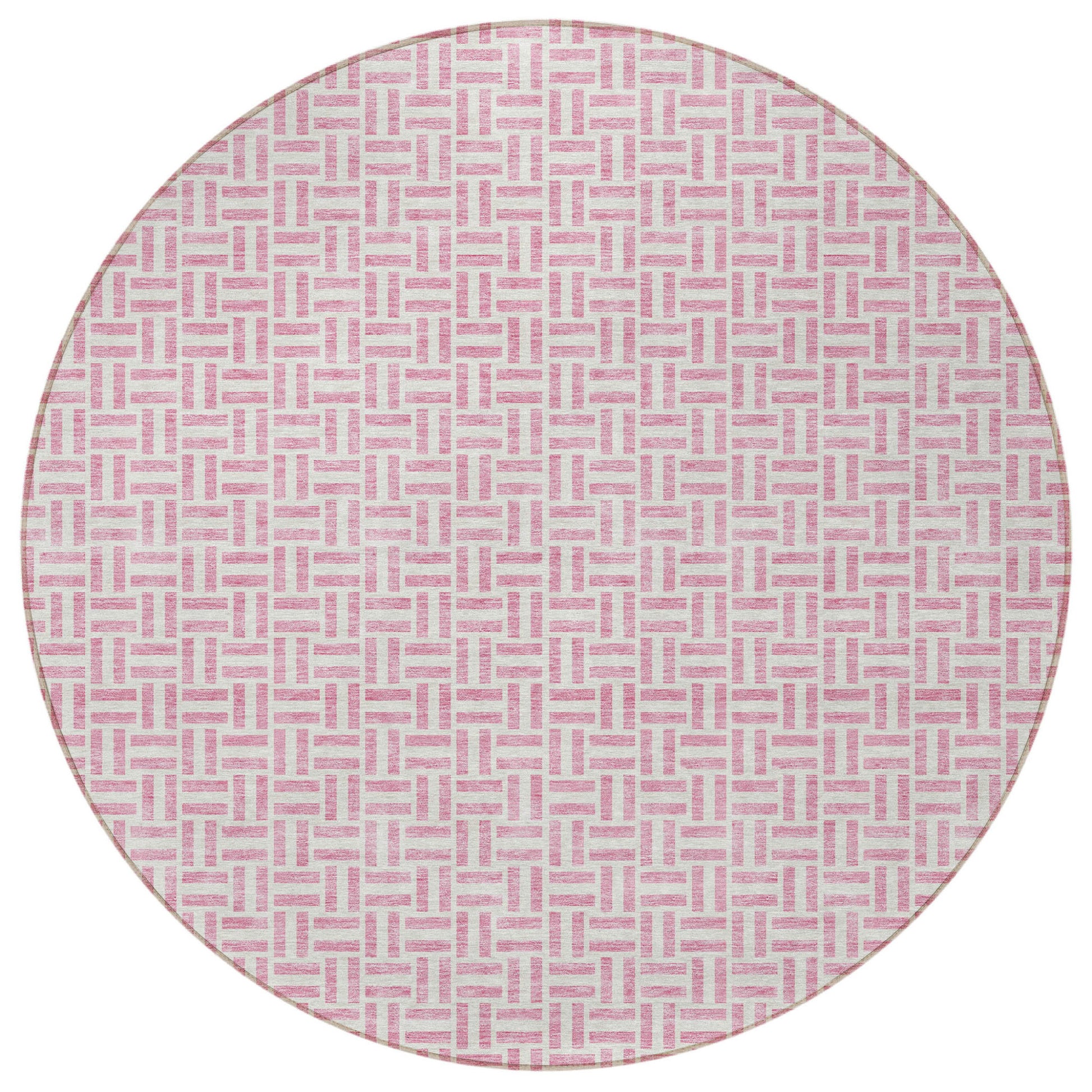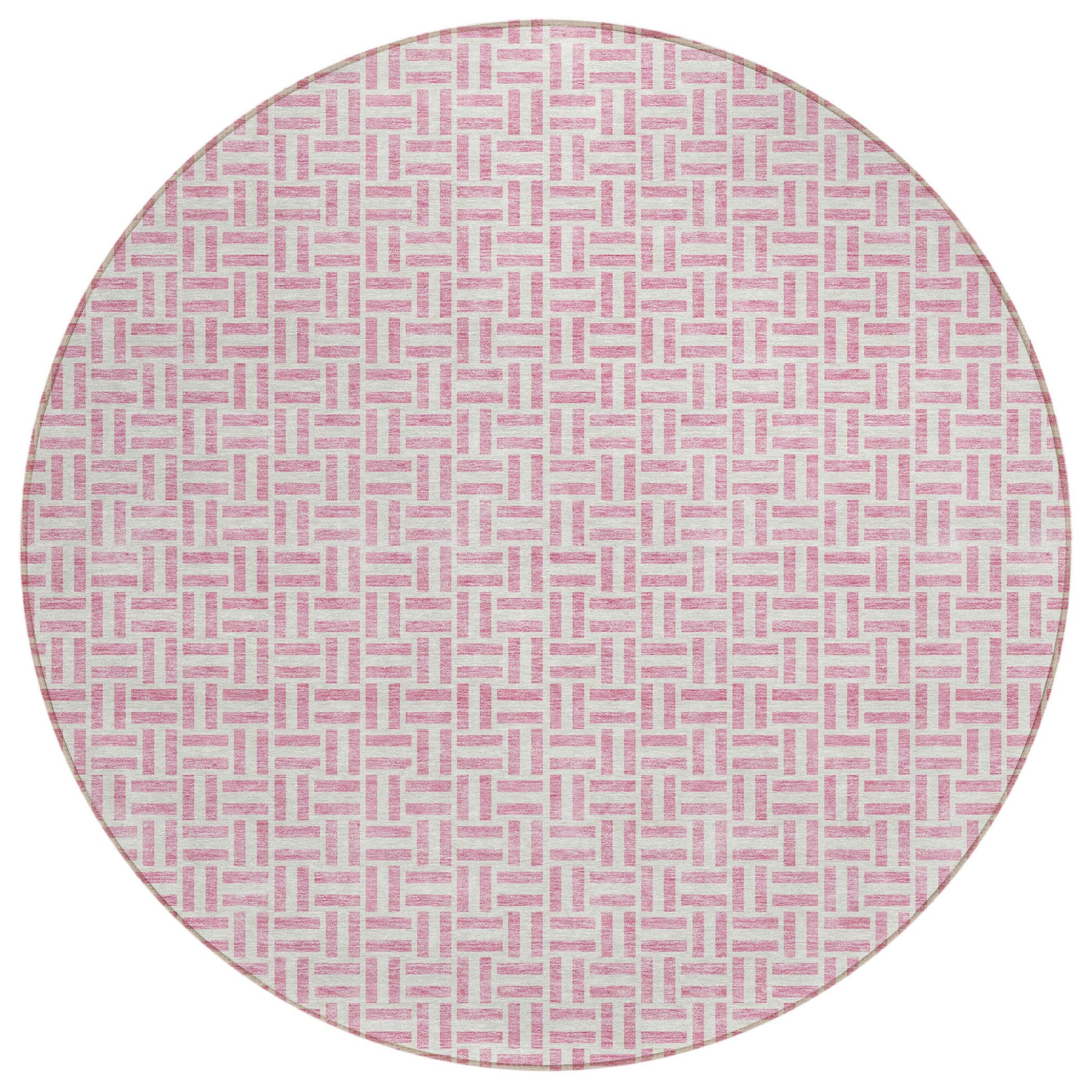 Tabselect Home Line 8' Pink And Silver Round Geometric Washable Indoor Outdoor Area Rug