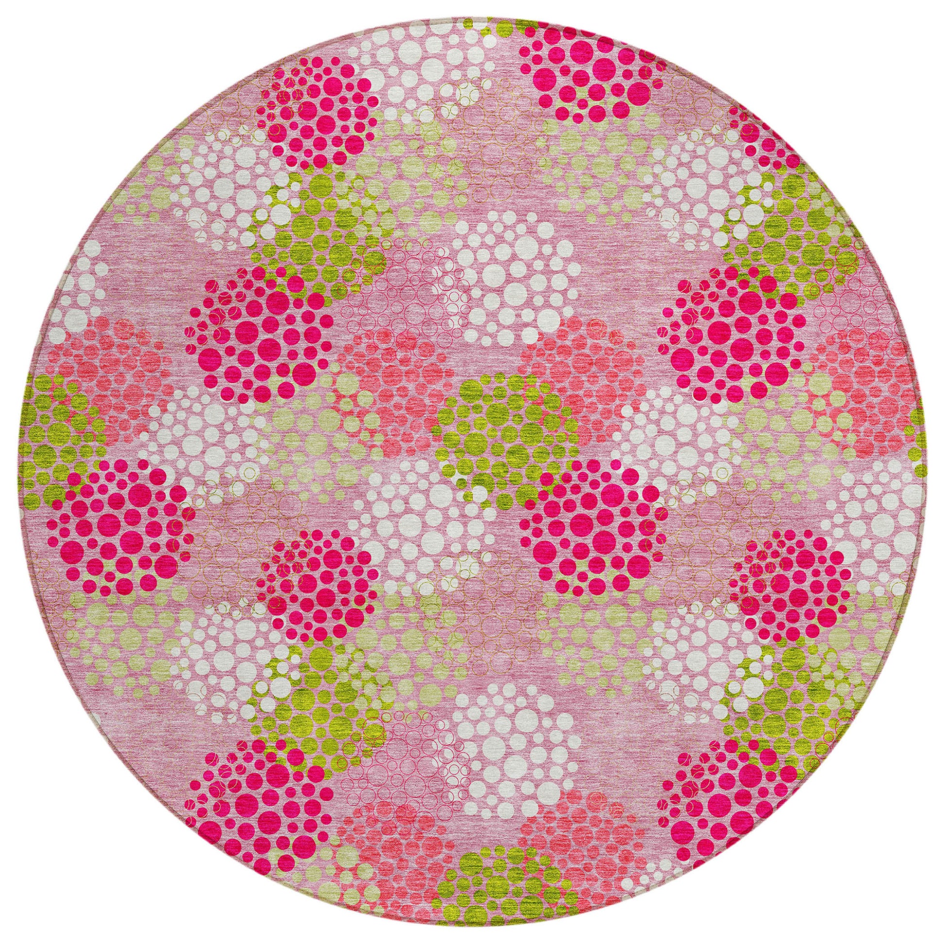 Tabselect Home Line 8' Pink Green And Ivory Round Polka Dot Washable Indoor Outdoor Area Rug