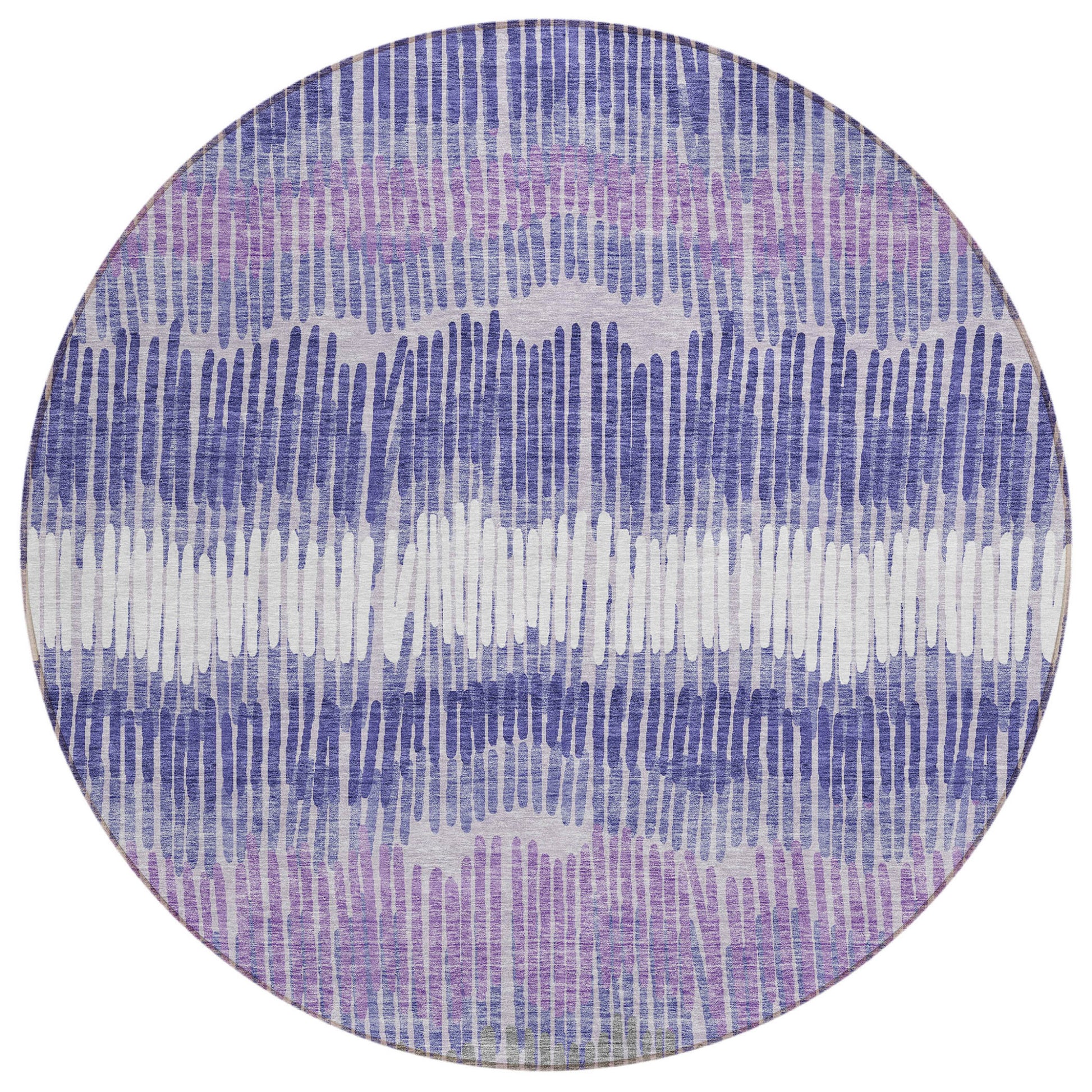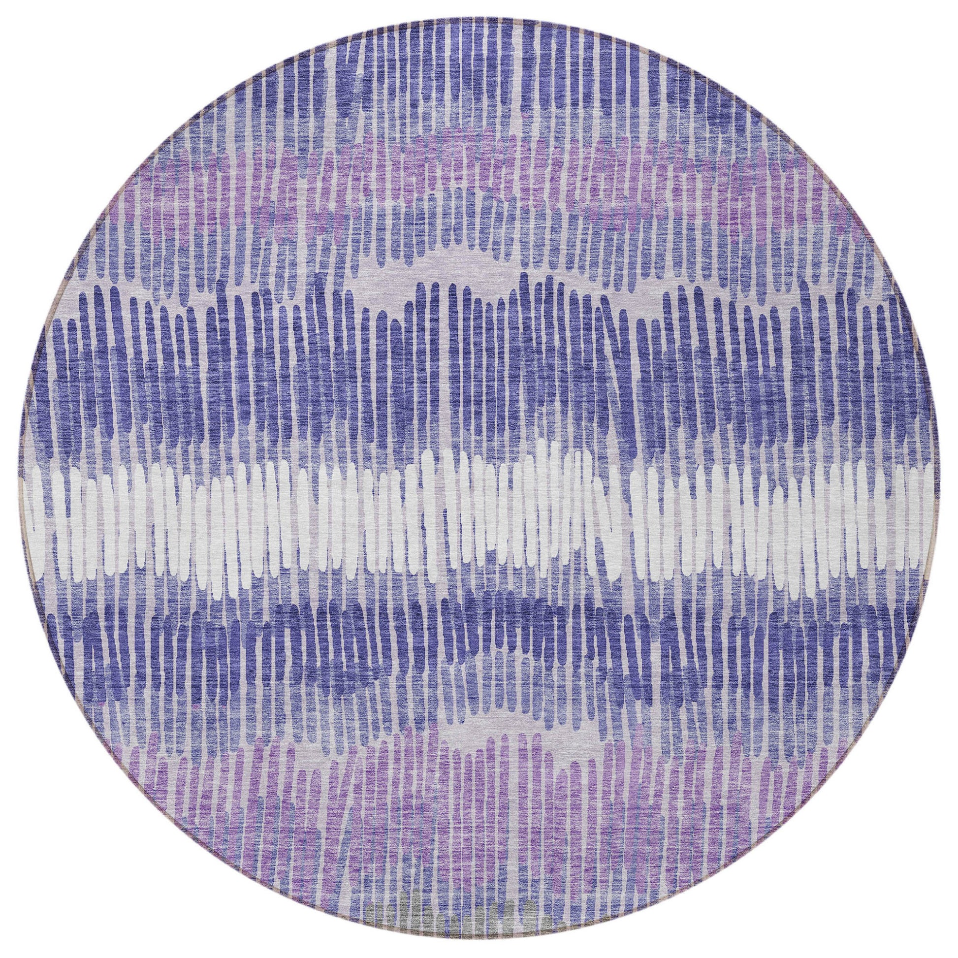 Tabselect Home Line 8' Purple And Gray Round Striped Washable Indoor Outdoor Area Rug