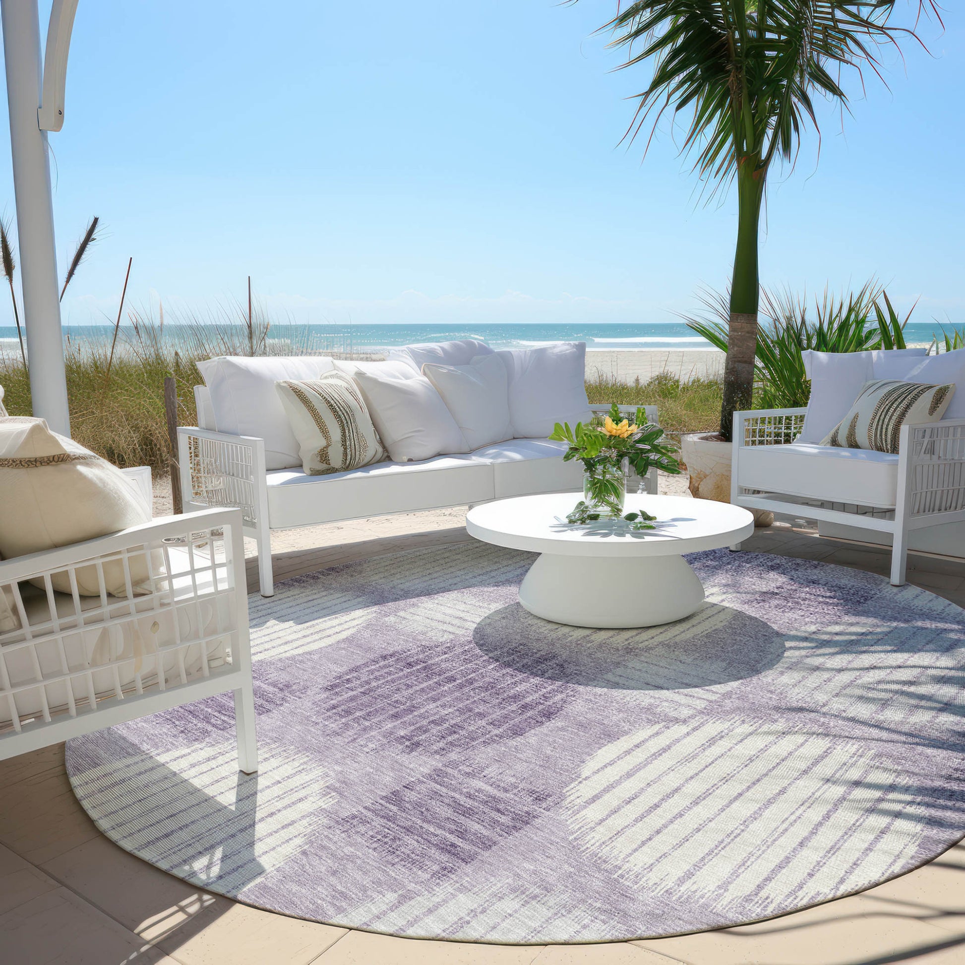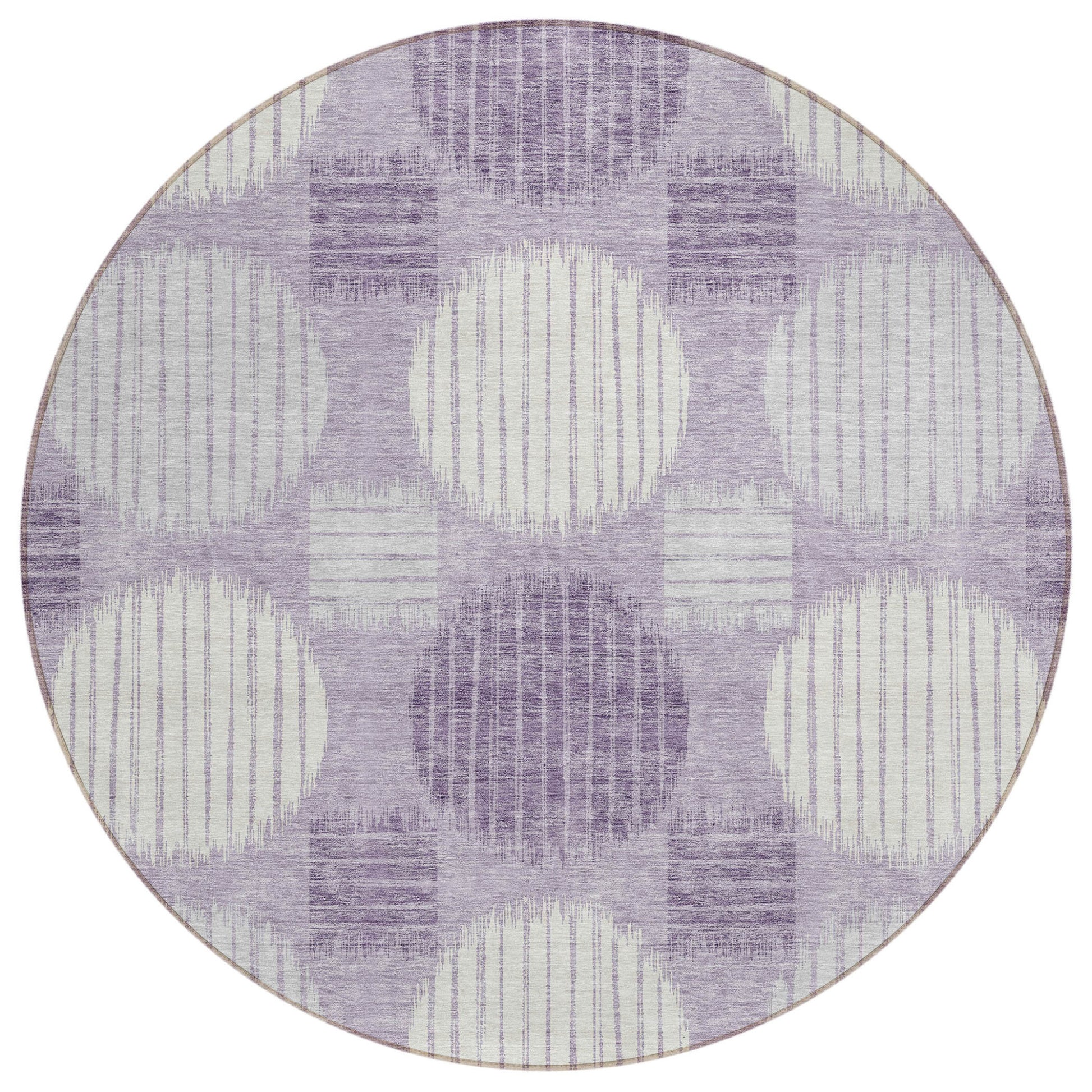 Tabselect Home Line 8' Purple And Ivory Round Geometric Washable Indoor Outdoor Area Rug