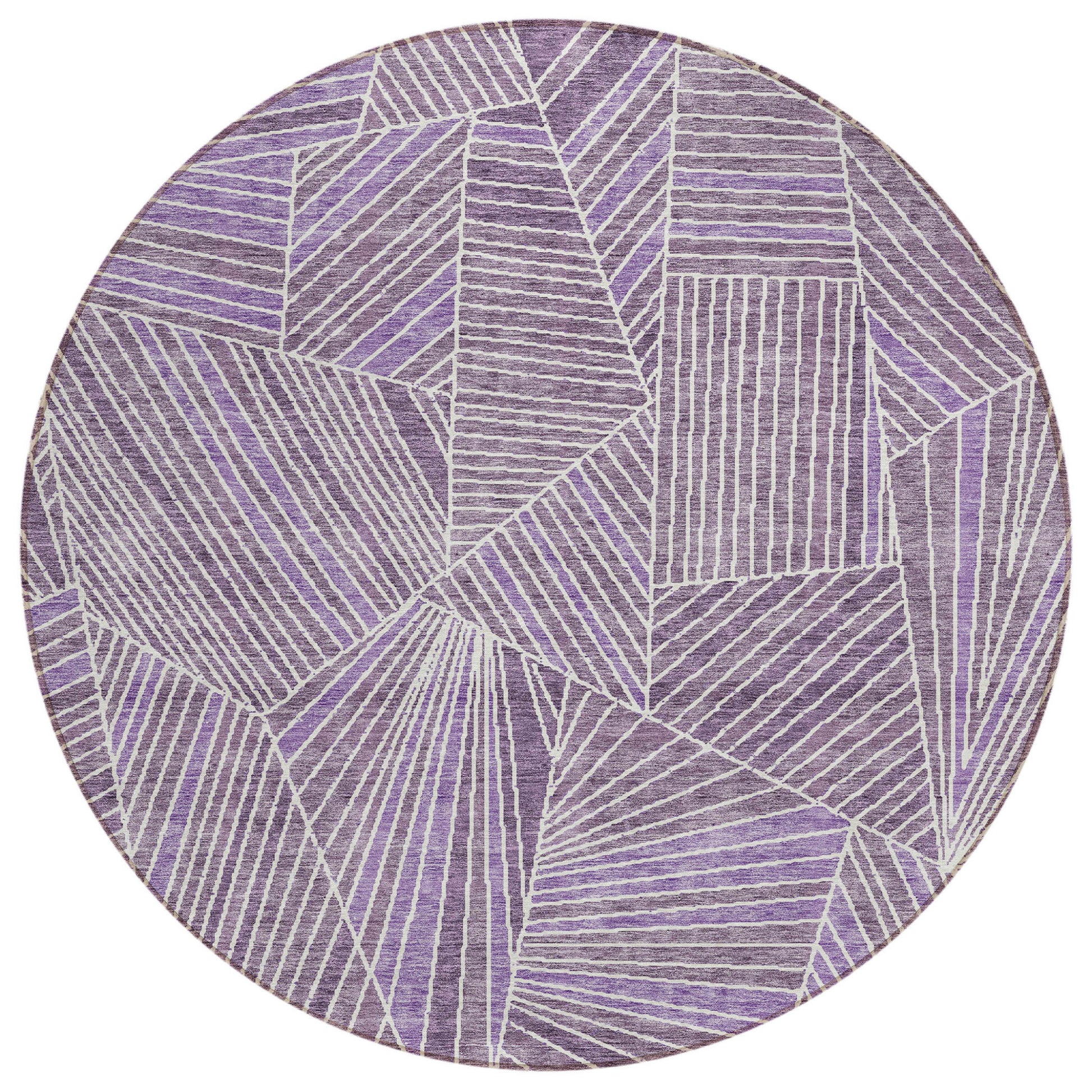 Tabselect Home Line 8' Purple And Ivory Round Geometric Washable Indoor Outdoor Area Rug