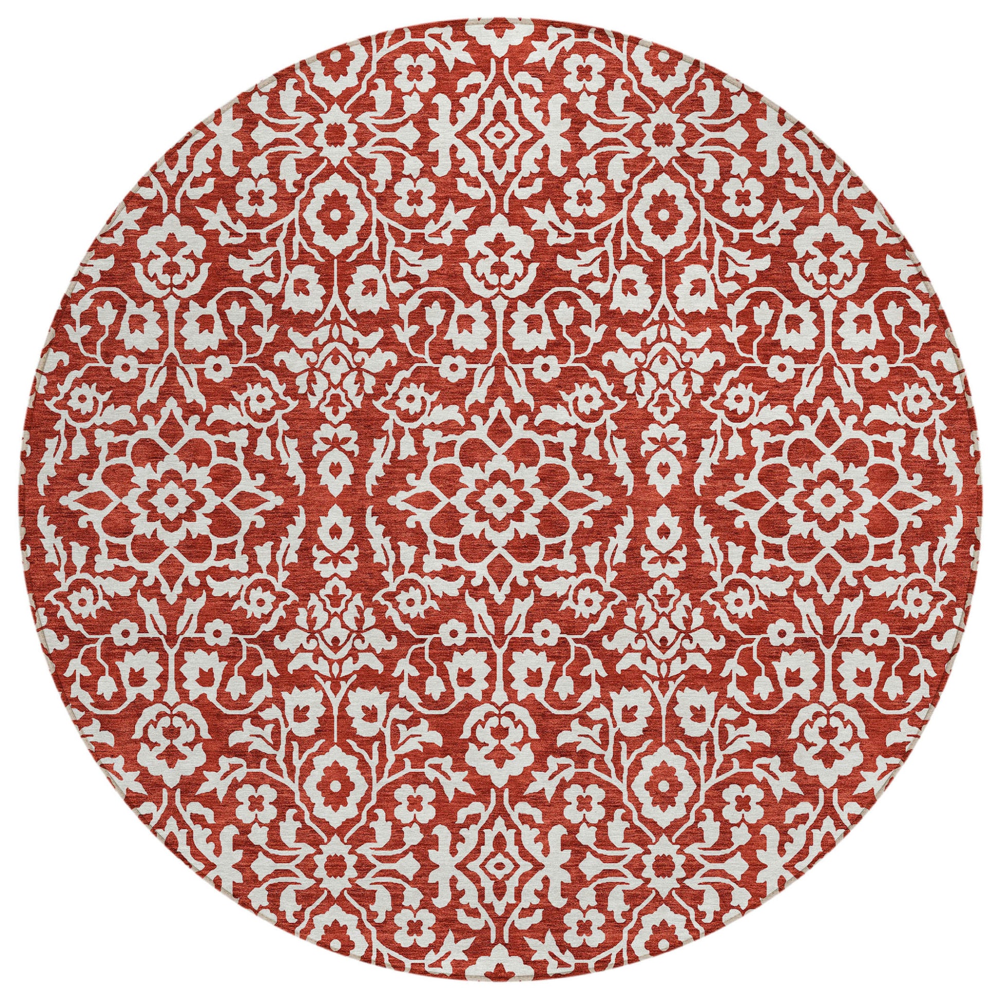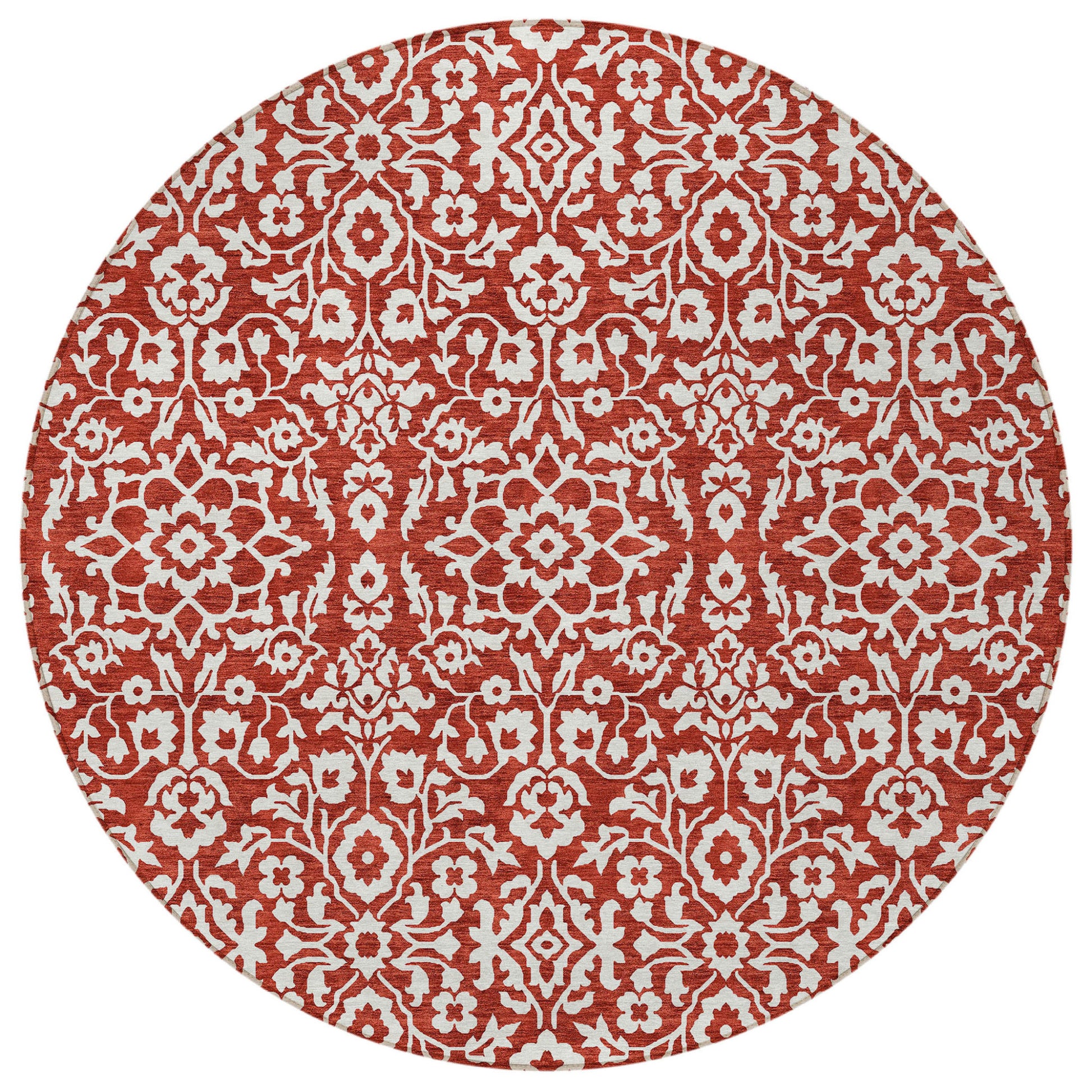 Tabselect Home Line 8' Red And Ivory Round Damask Washable Indoor Outdoor Area Rug