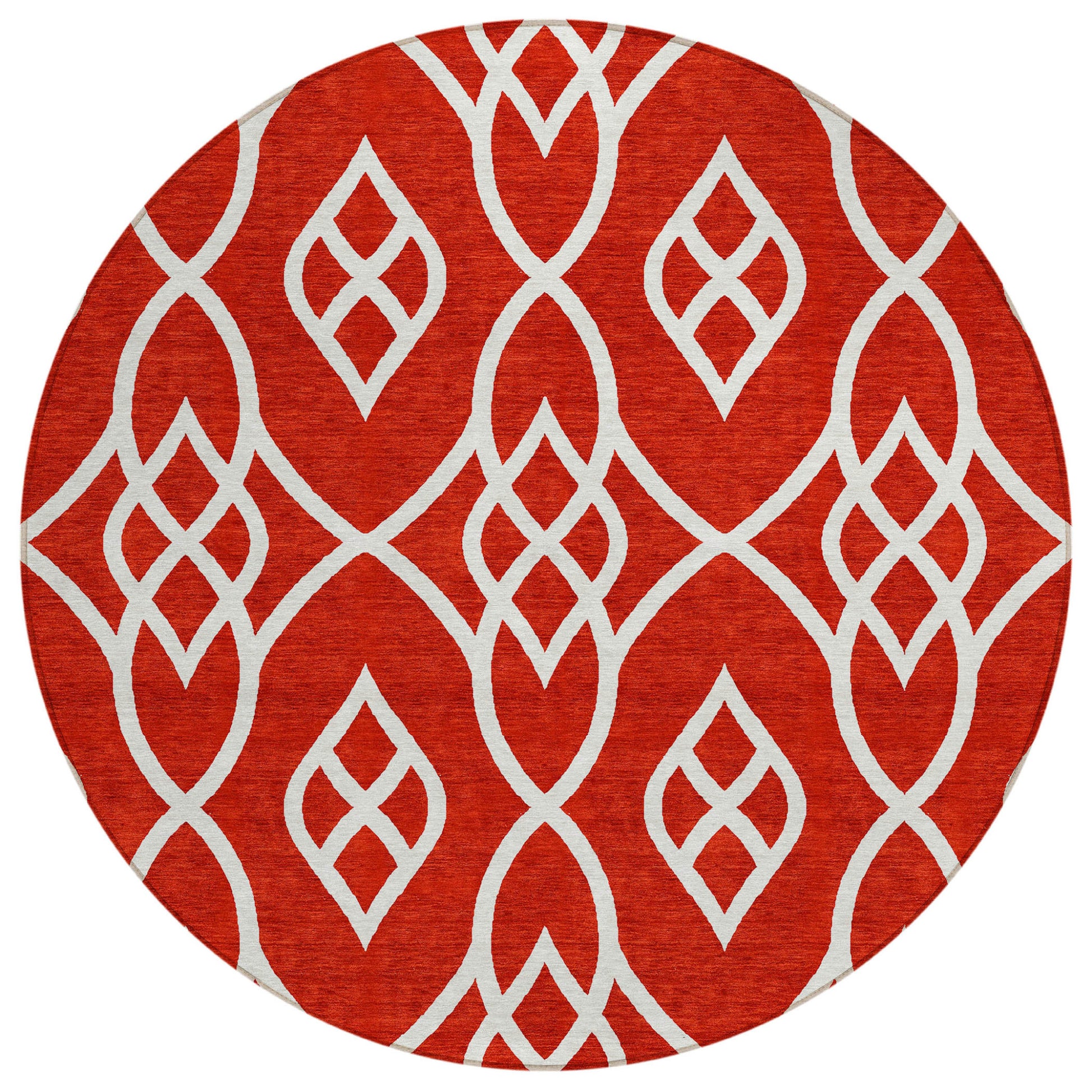 Tabselect Home Line 8' Red And Ivory Round Trellis Washable Indoor Outdoor Area Rug