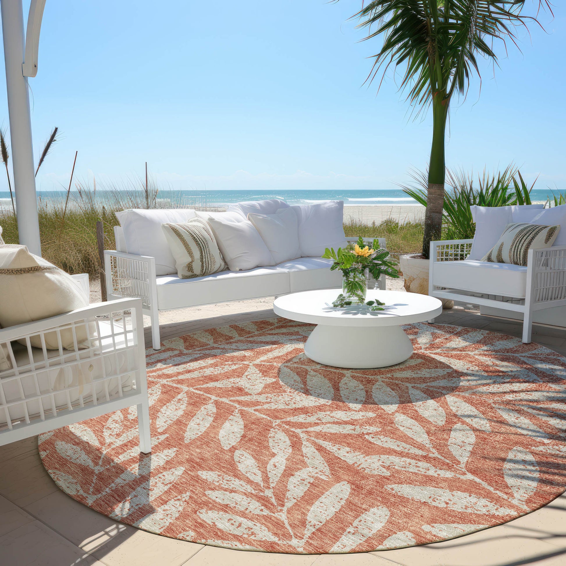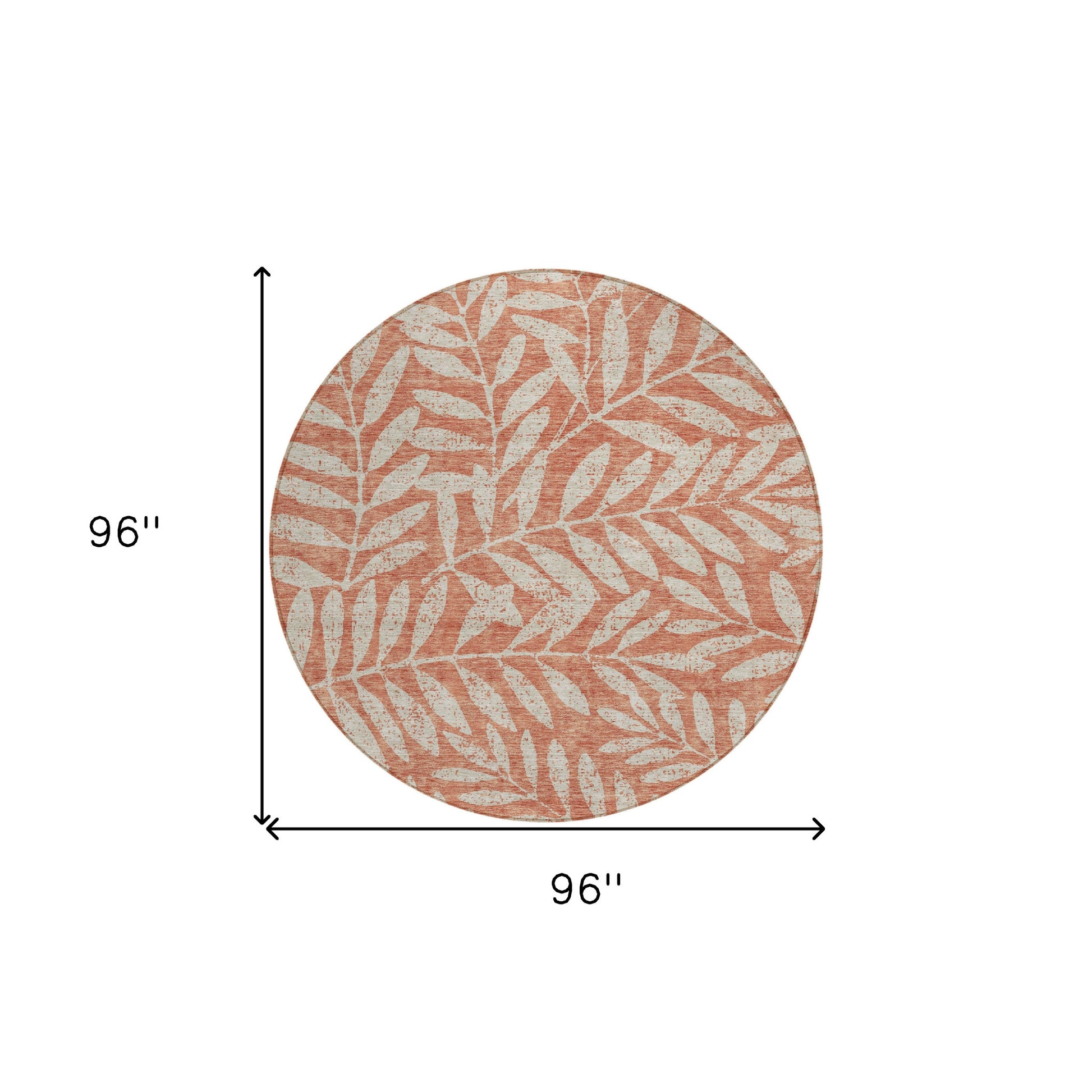 Tabselect Home Line 8' Salmon And Gray Round Floral Washable Indoor Outdoor Area Rug