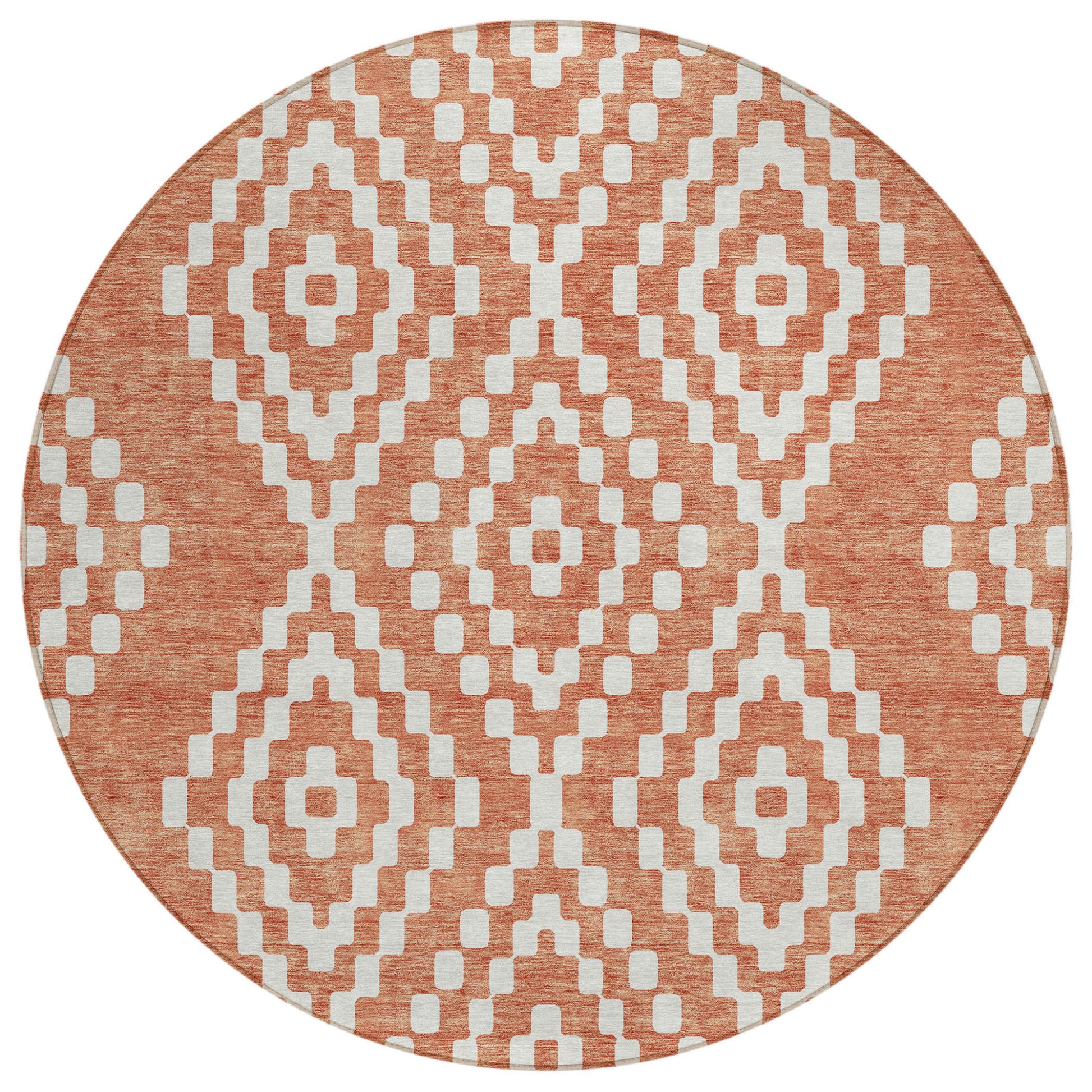 Tabselect Home Line 8' Salmon And Ivory Round Geometric Washable Indoor Outdoor Area Rug