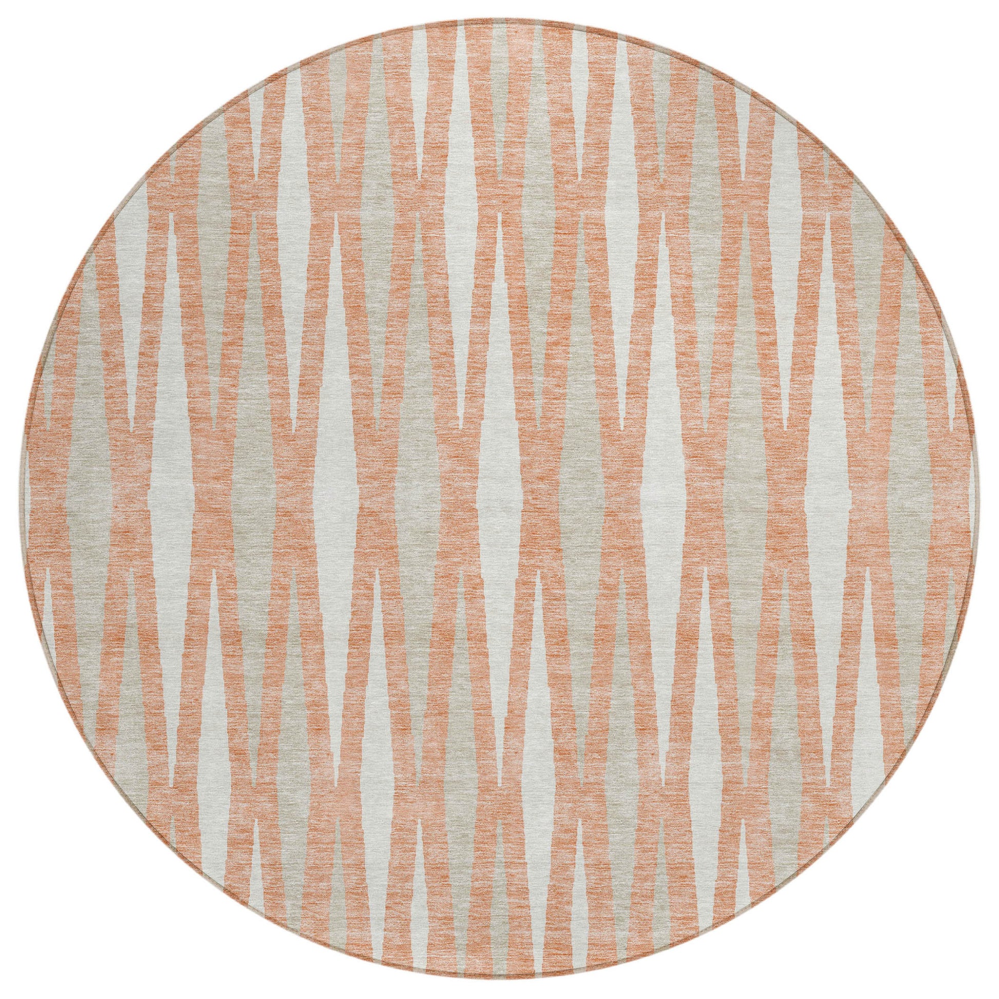 Tabselect Home Line 8' Salmon Gray And Ivory Round Geometric Washable Indoor Outdoor Area Rug