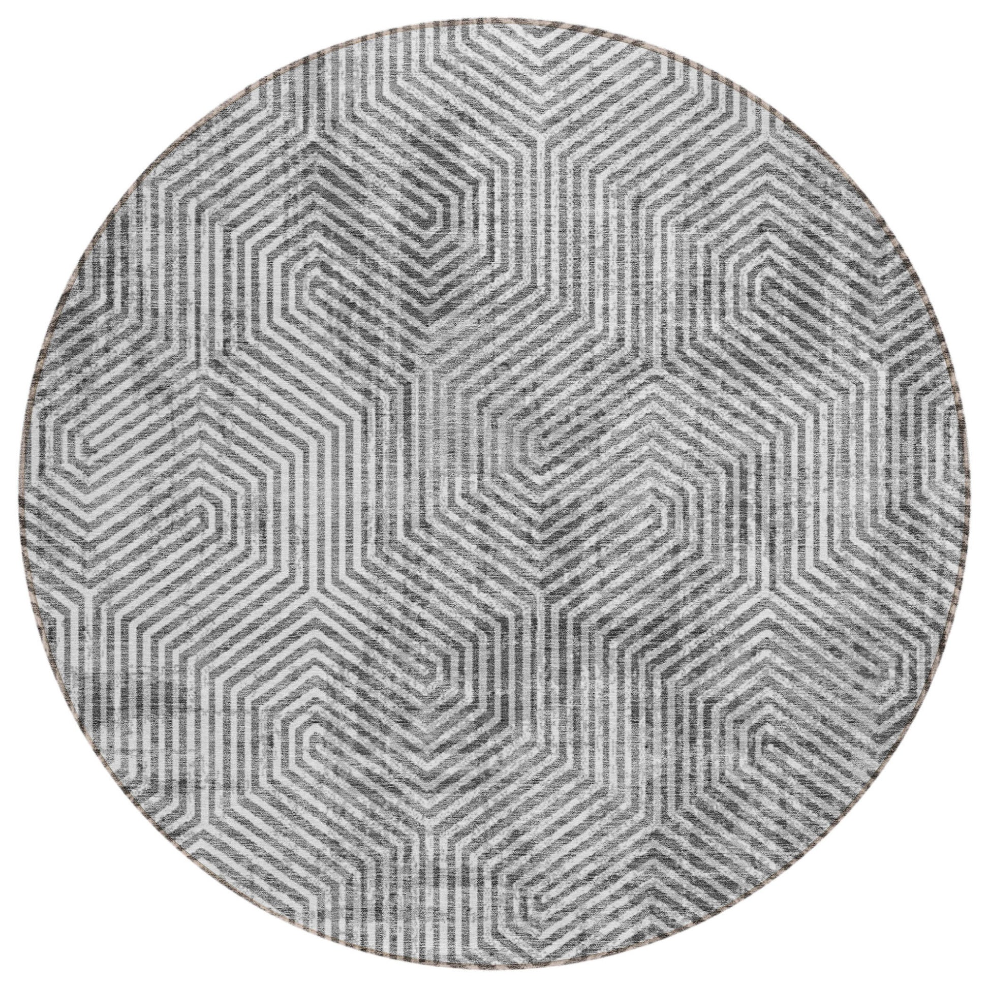 Tabselect Home Line 8' Silver And Gray Round Geometric Washable Indoor Outdoor Area Rug