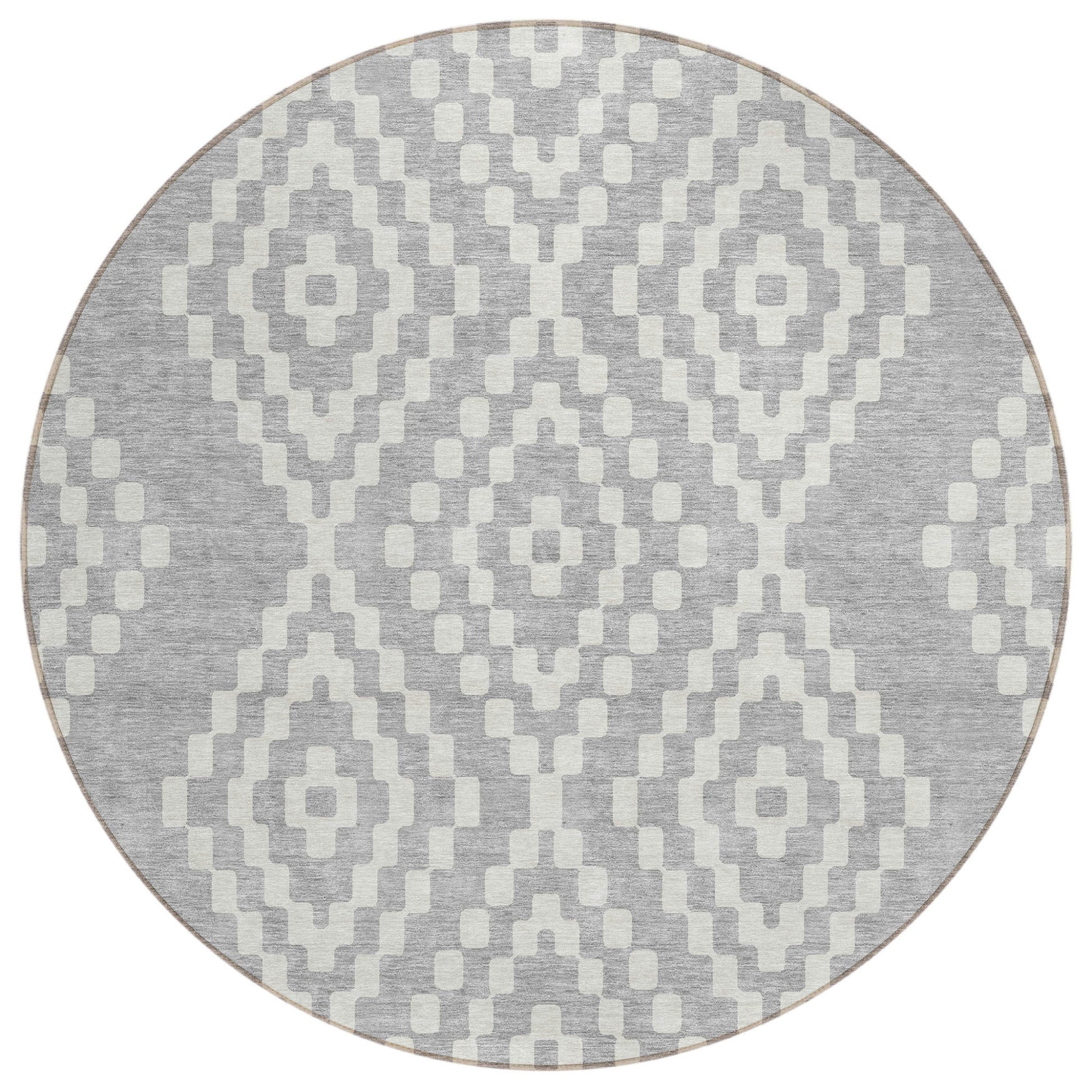 Tabselect Home Line 8' Silver And Ivory Round Geometric Washable Indoor Outdoor Area Rug