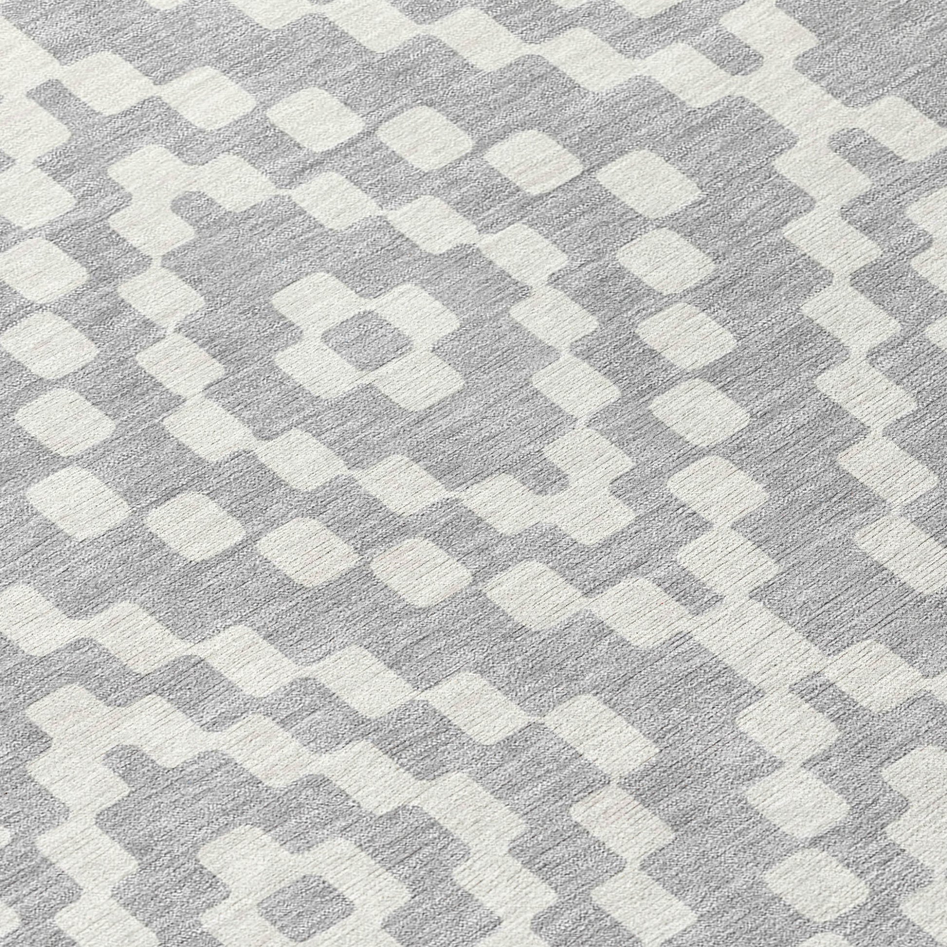 This 8-foot silver and ivory round geometric washable indoor outdoor area rug, is a great way to add warmth to a room. This geometric round shaped rug features a geometric pattern in silver and ivory that combines a good looking print with a unique and updated shape. The mix of shape, color, and design gives this rug refreshing visual interest. Ideal for outdoor spaces or high traffic areas with kids and pets, this rug is made from heavy duty polyester that is stain resistant to help repel water, dirt, and stains. Versatile in use, durable, and easy to maintain, this rug is an ideal solution to add a decorative and inviting touch to your indoor or outdoor space. 96-inch h x 96-inch w x 0.19-inch d.