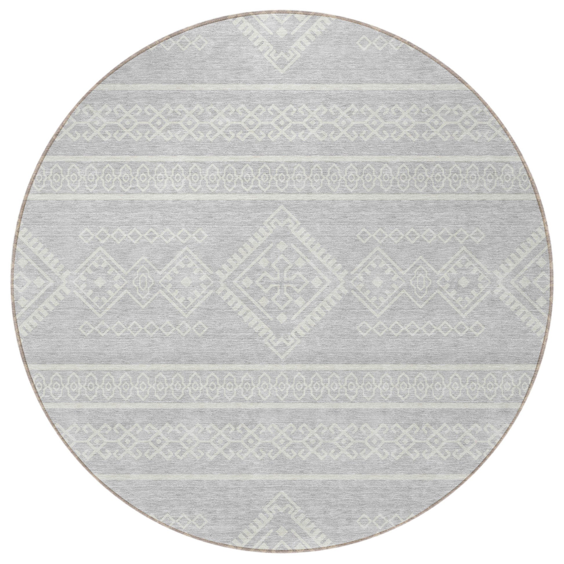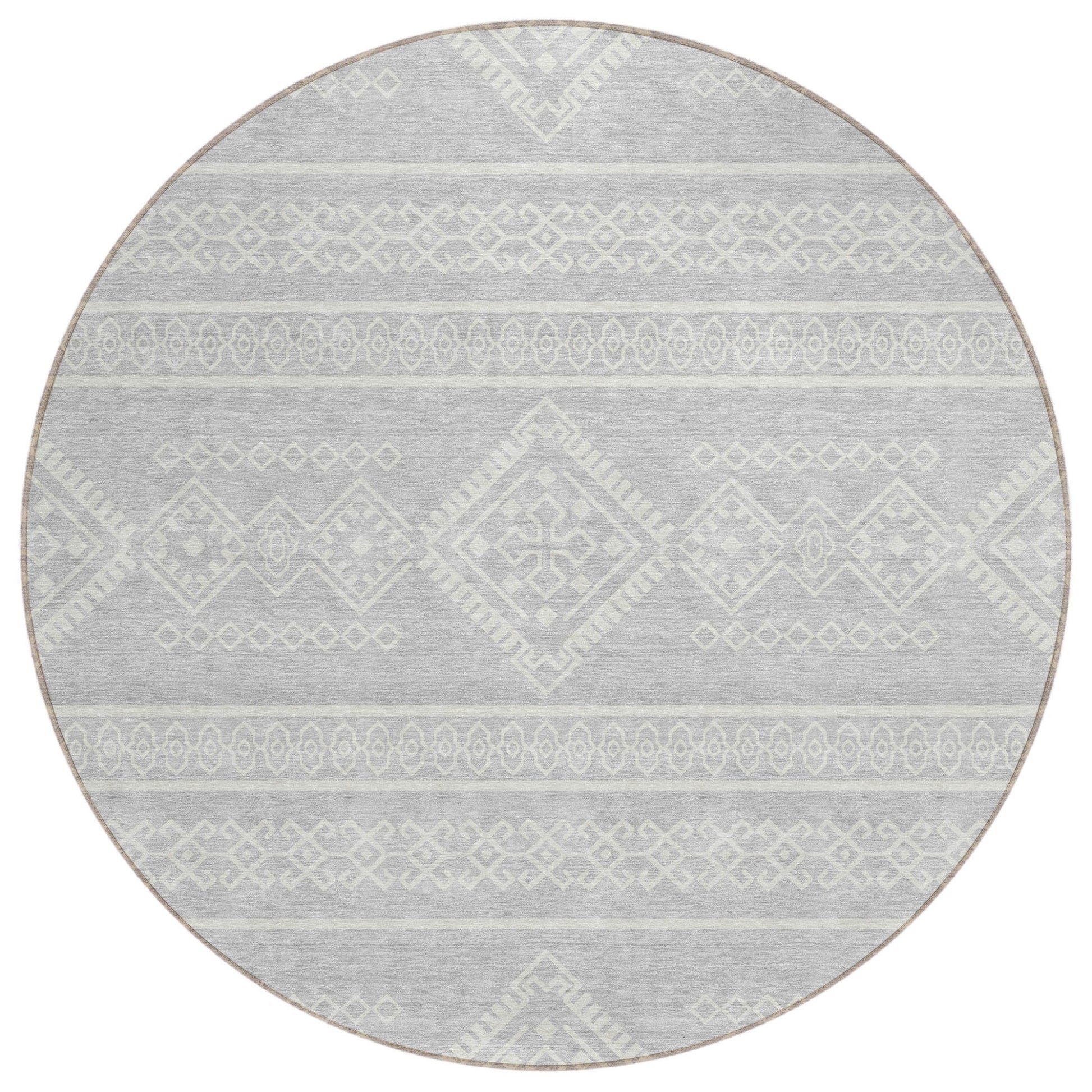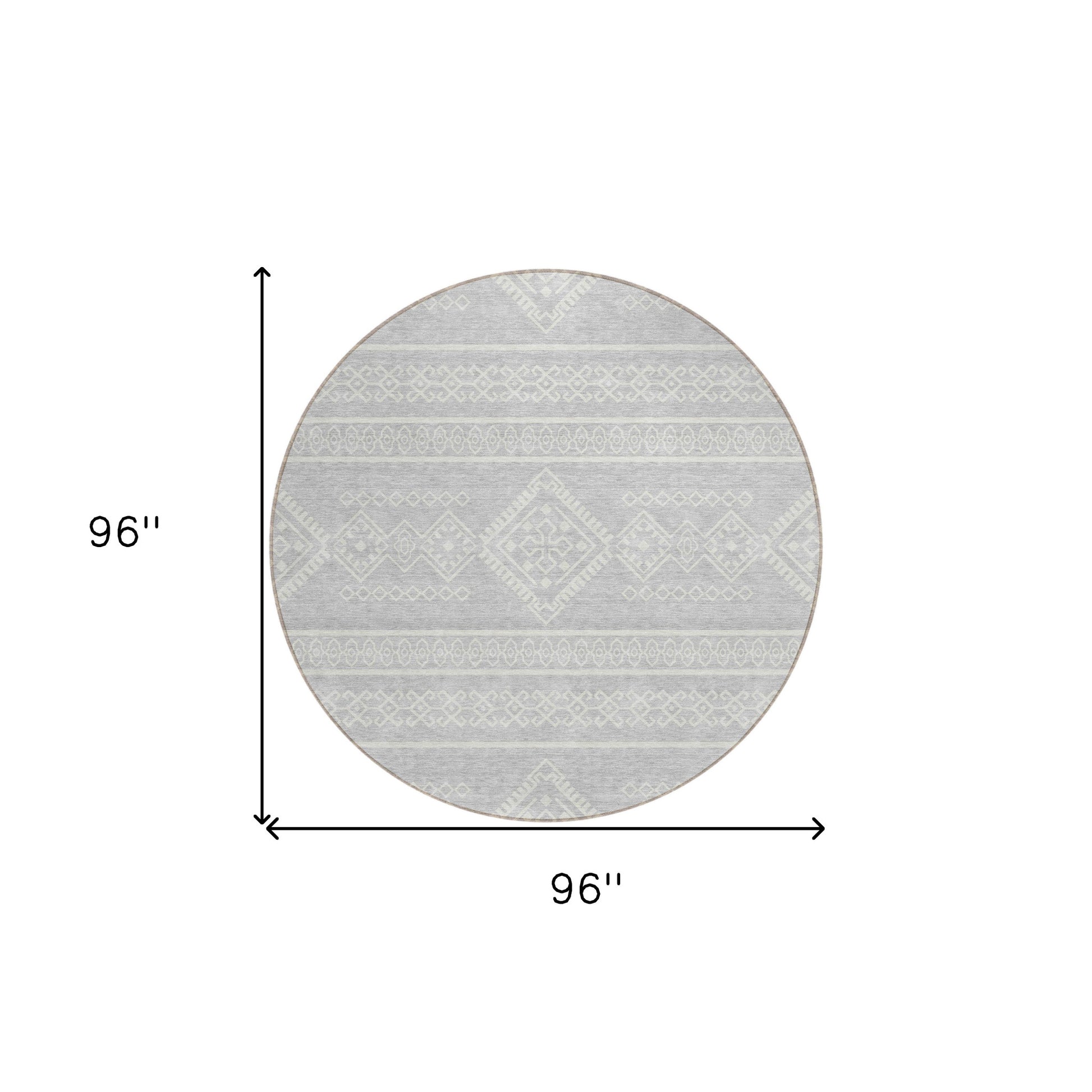 Tabselect Home Line 8' Silver And Ivory Round Southwestern Washable Indoor Outdoor Area Rug