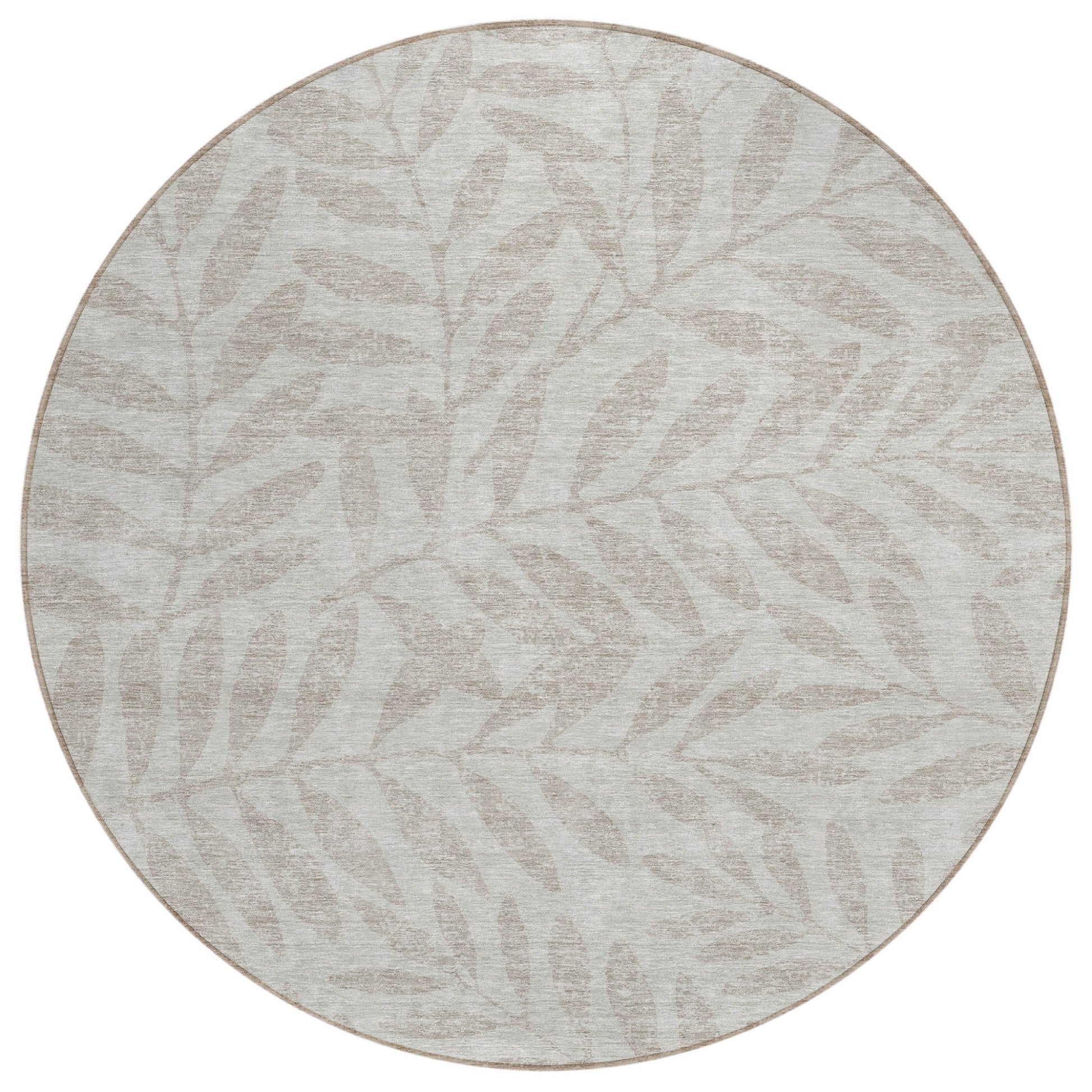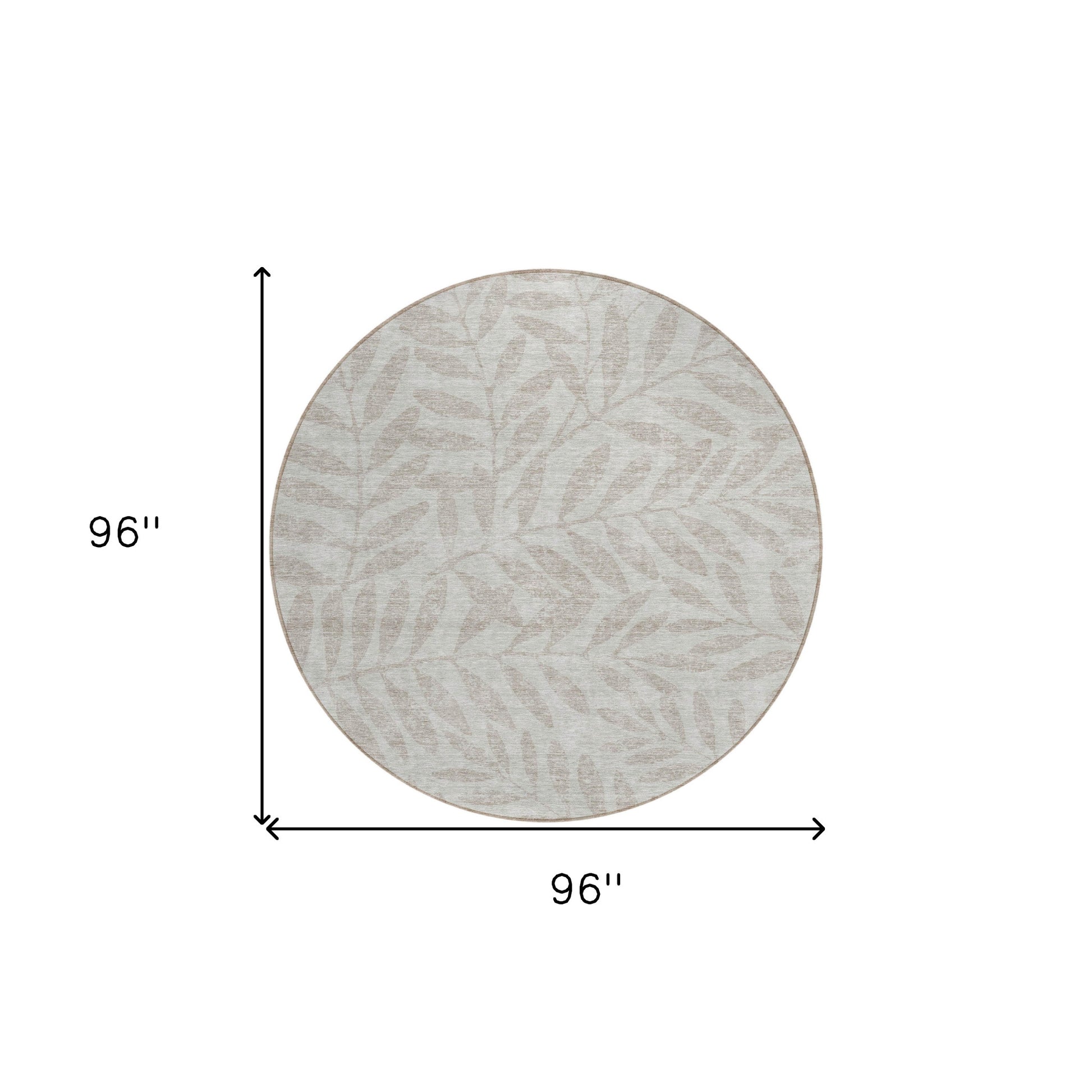 Tabselect Home Line 8' Taupe And Beige Round Floral Washable Indoor Outdoor Area Rug