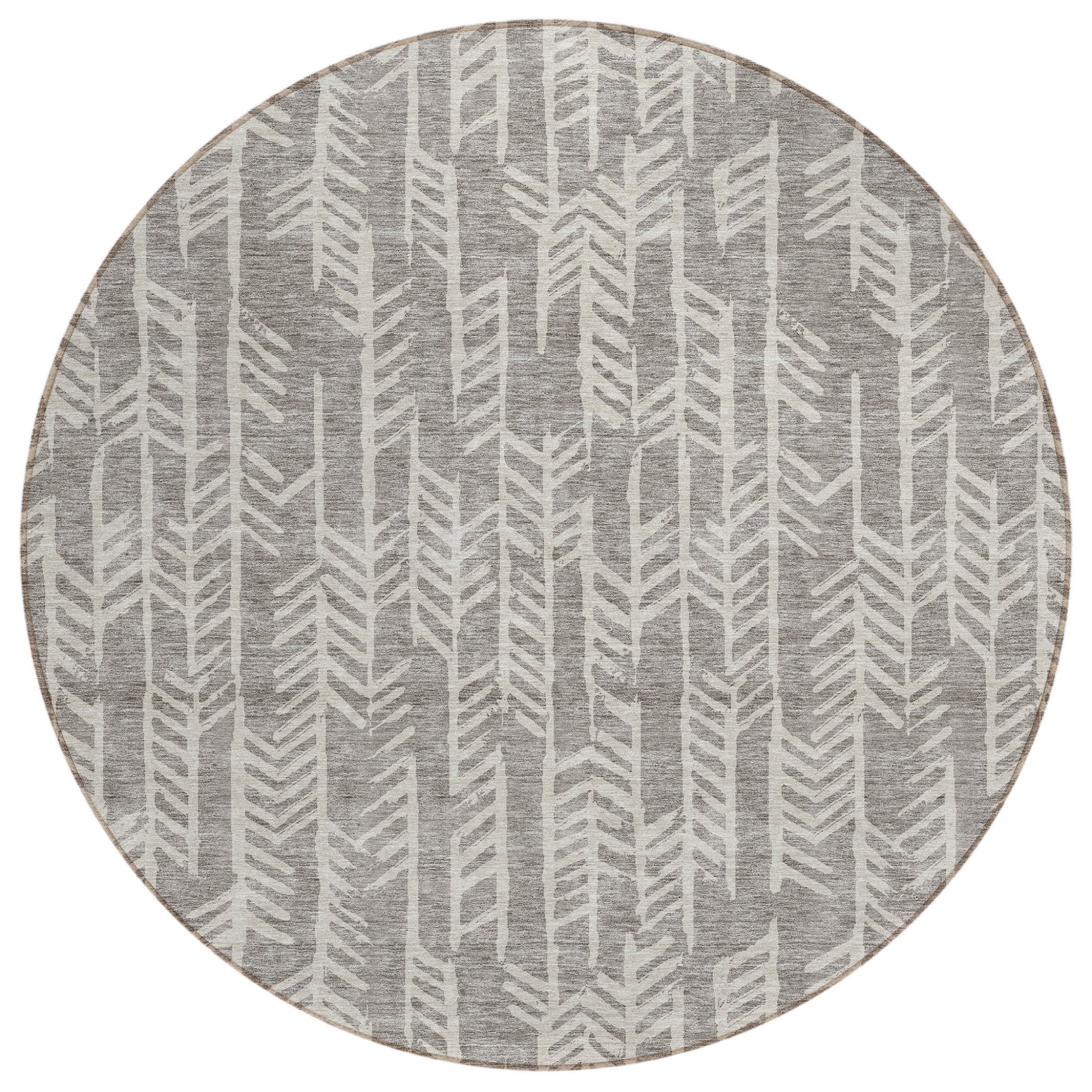 Tabselect Home Line 8' Taupe And Beige Round Tribal Washable Indoor Outdoor Area Rug