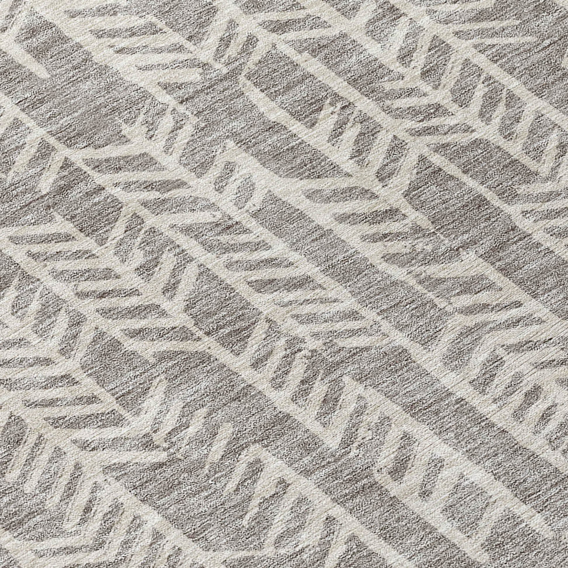 - Stain resistant outdoor rug with non-slip backing, made of polyester in taupe color.