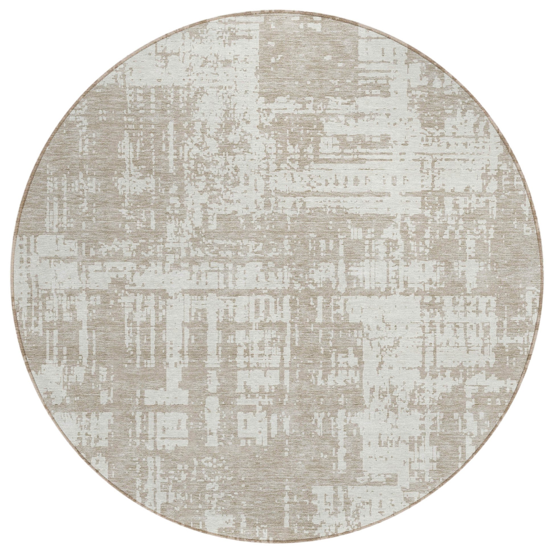 Tabselect Home Line 8' Taupe And Ivory Round Abstract Washable Indoor Outdoor Area Rug