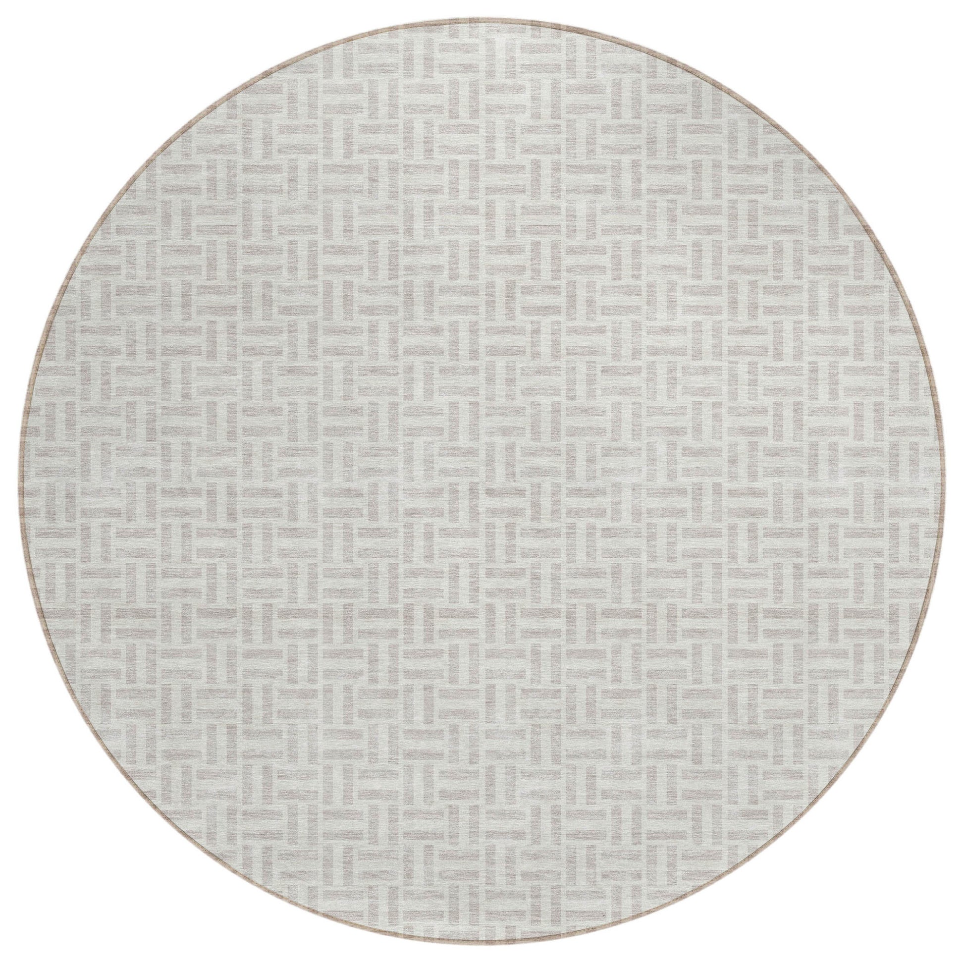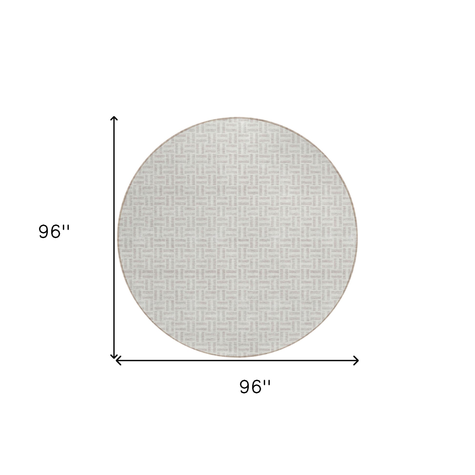 Tabselect Home Line 8' Taupe And Silver Round Geometric Washable Indoor Outdoor Area Rug