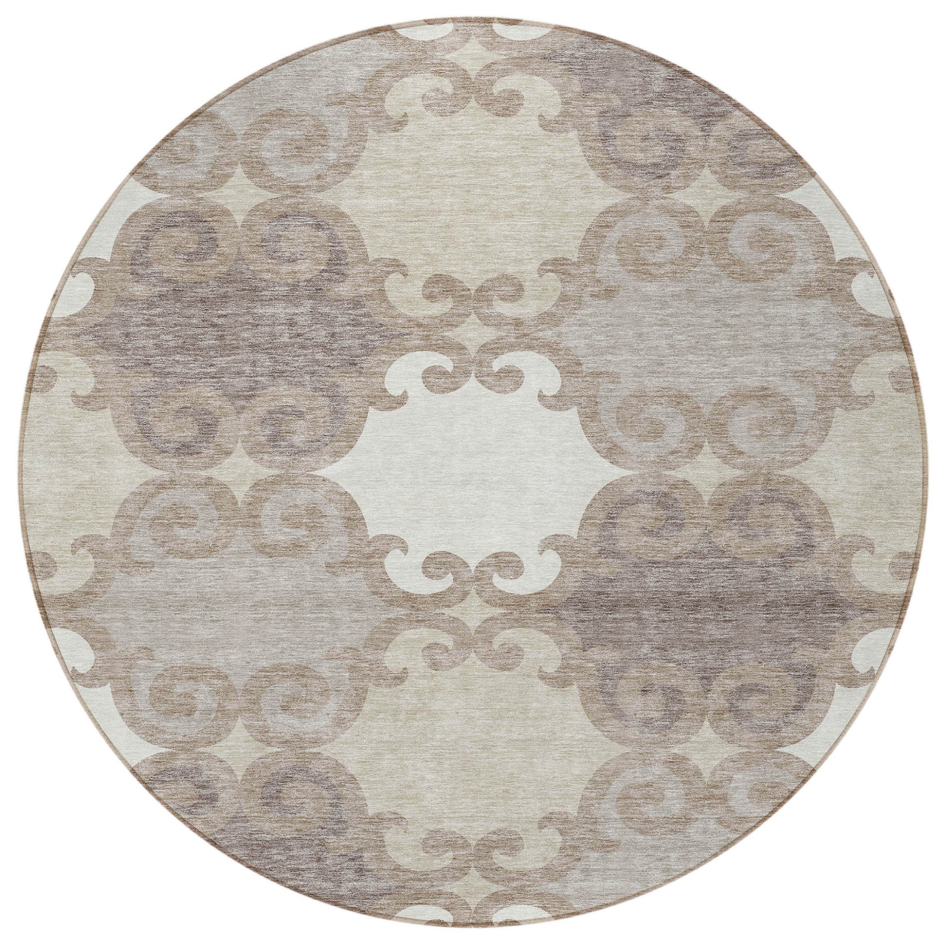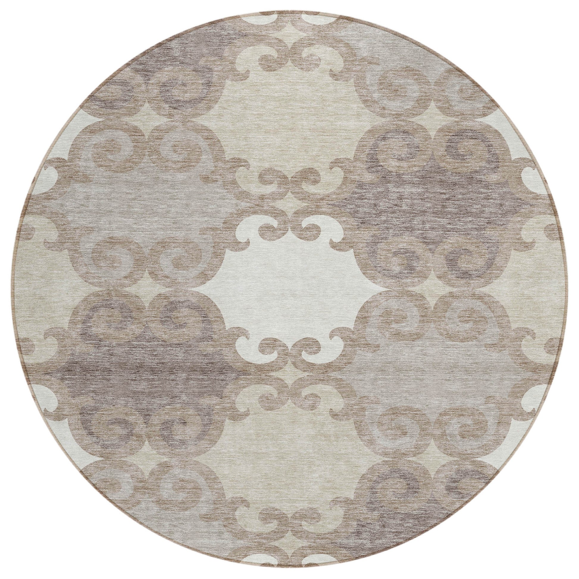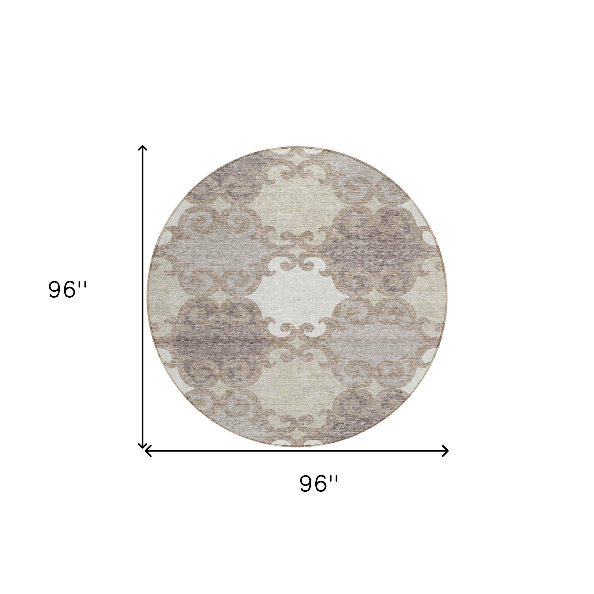 Tabselect Home Line 8' Taupe Beige And Gray Round Trellis Washable Indoor Outdoor Area Rug