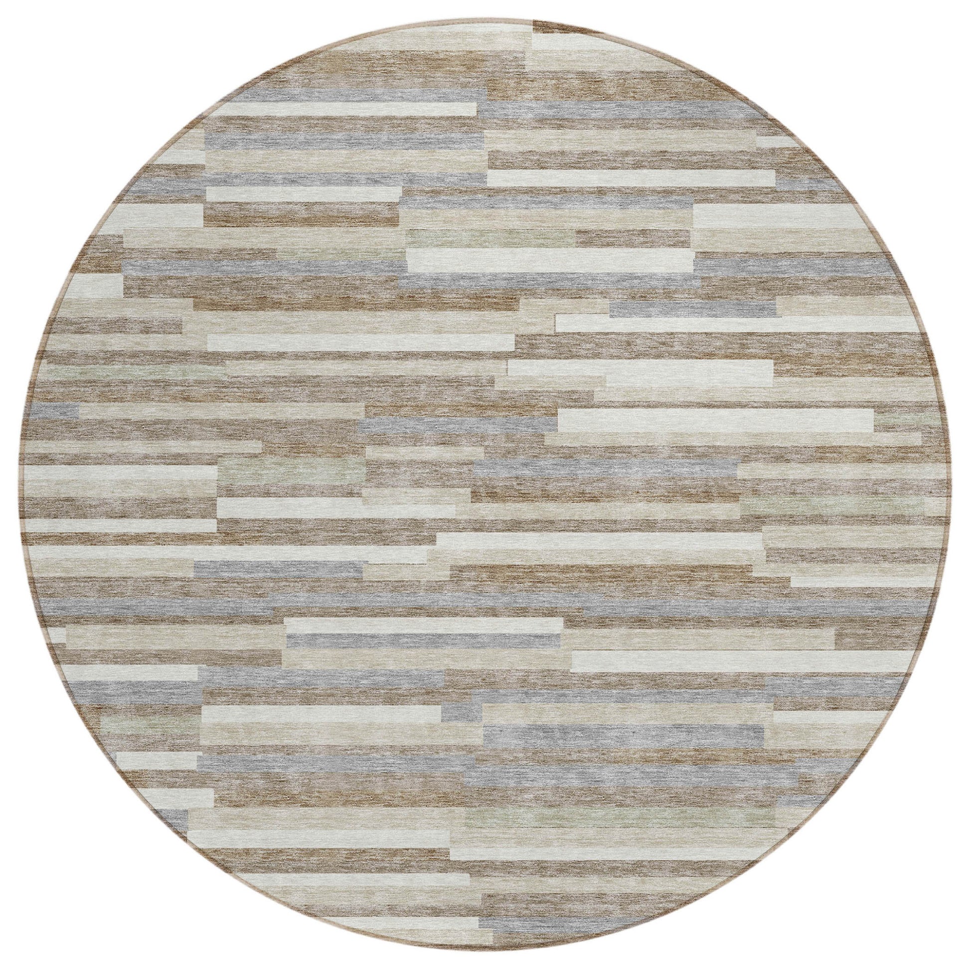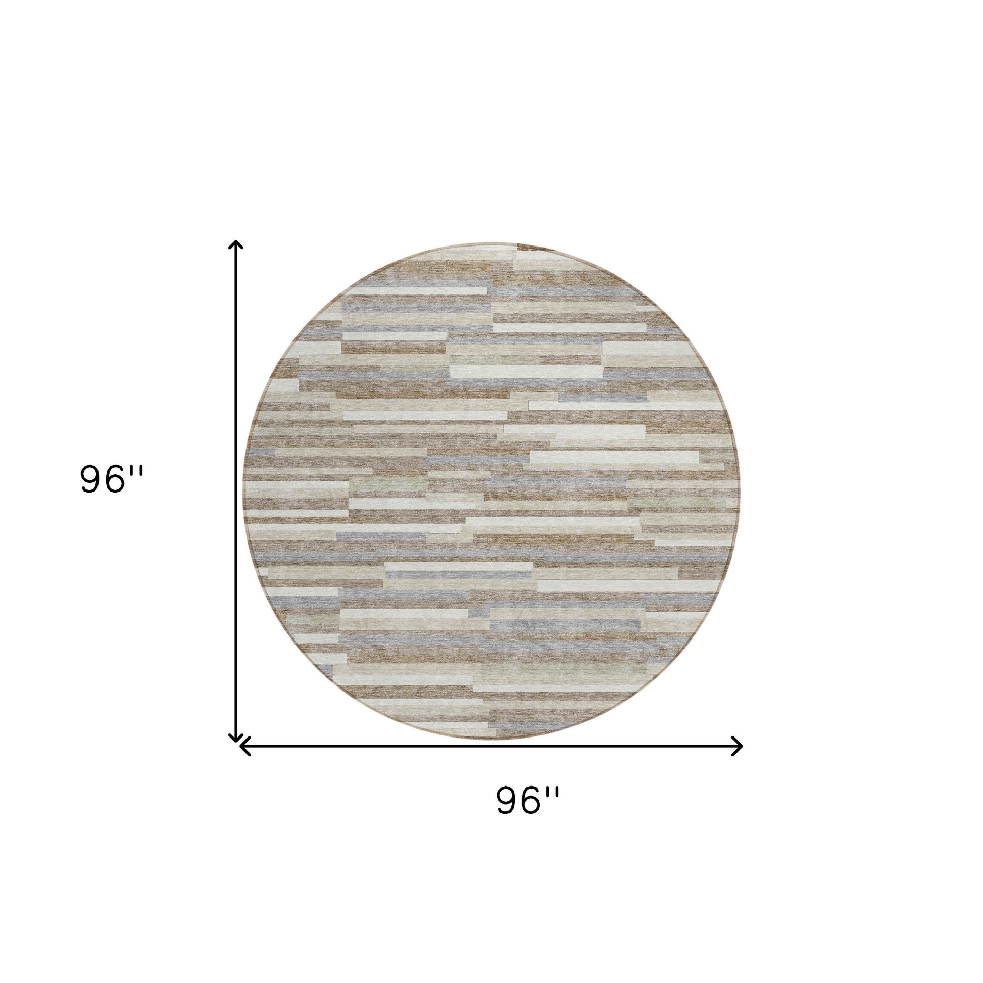 Tabselect Home Line 8' Taupe Gray And Ivory Round Striped Washable Indoor Outdoor Area Rug