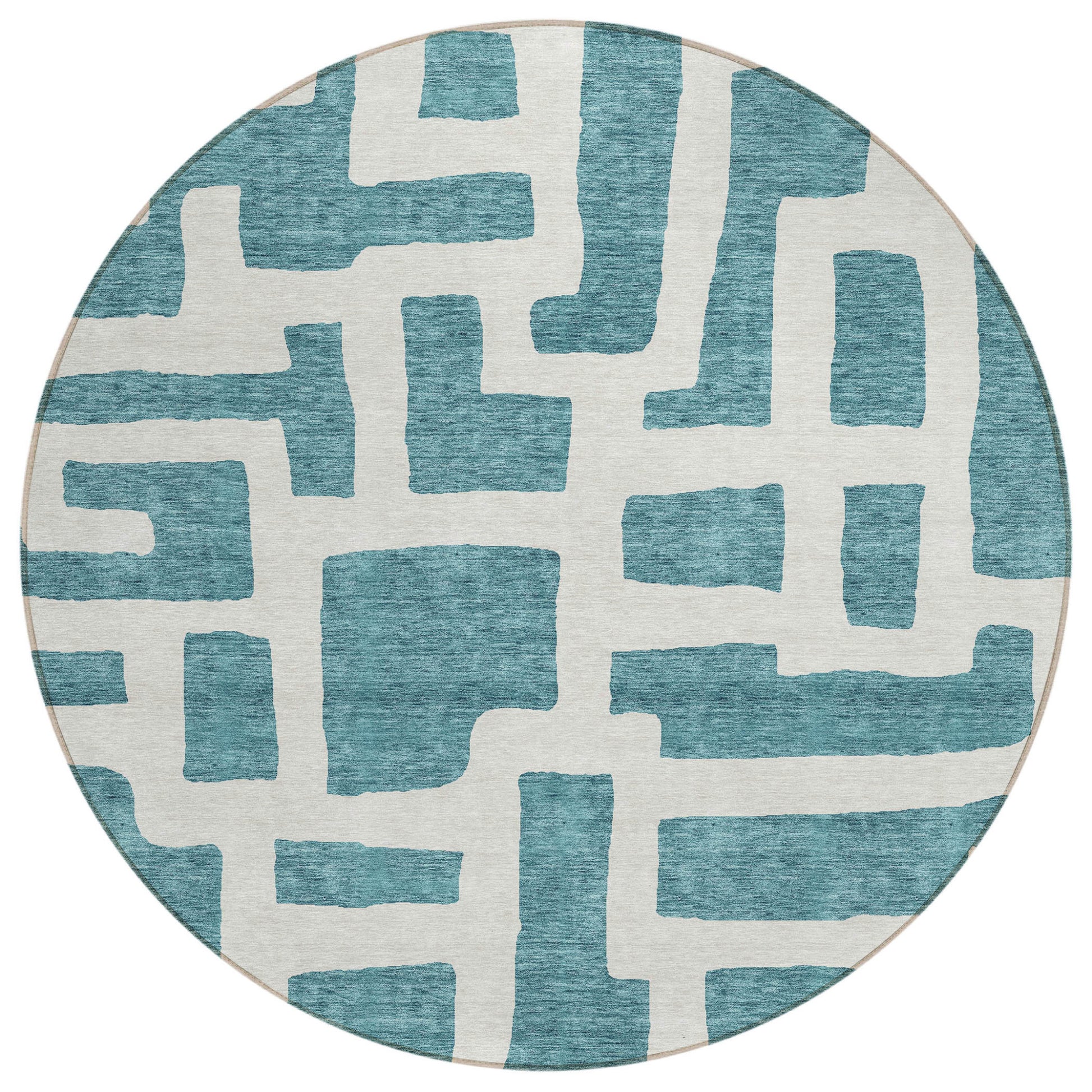 Tabselect Home Line 8' Teal Blue And Ivory Round Abstract Washable Indoor Outdoor Area Rug
