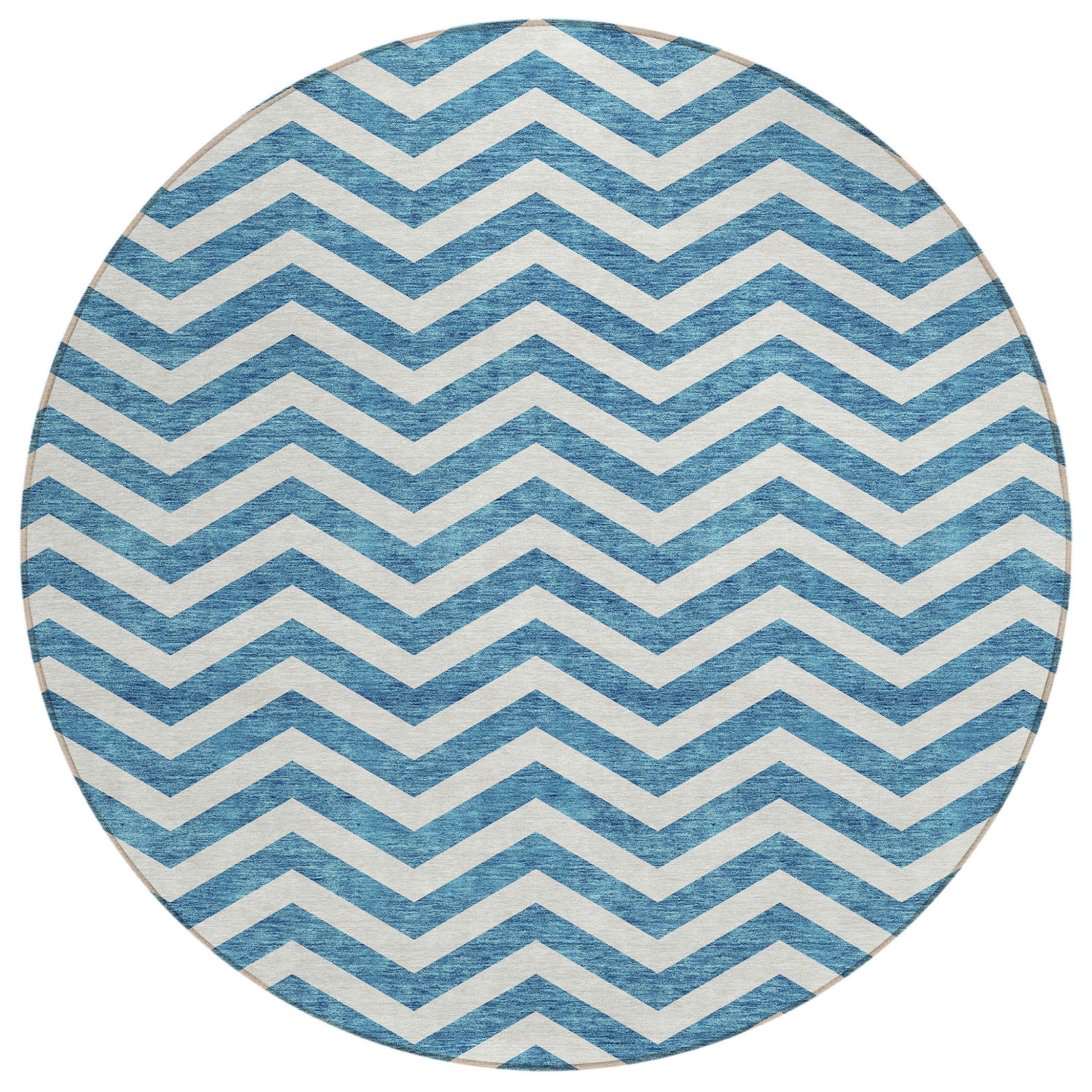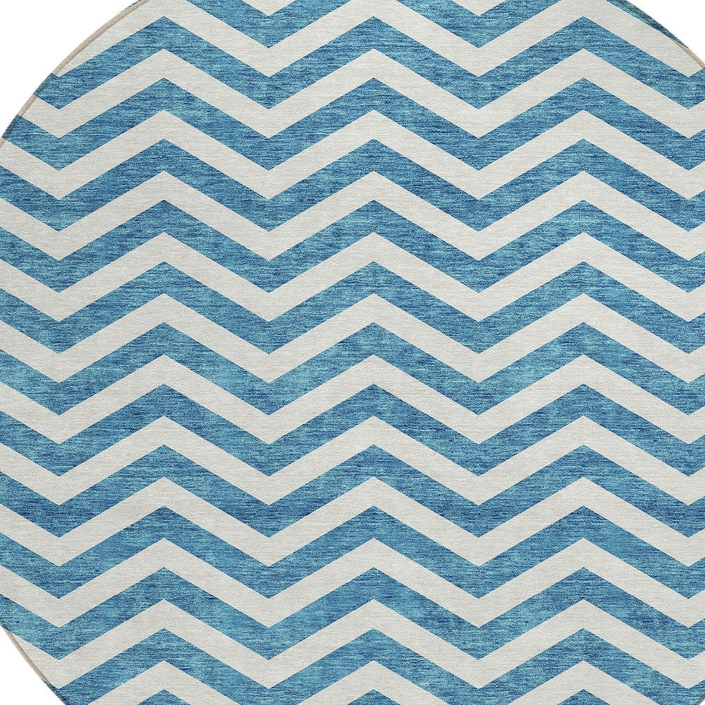 Tabselect Home Line 8' Teal Blue And Ivory Round Chevron Washable Indoor Outdoor Area Rug