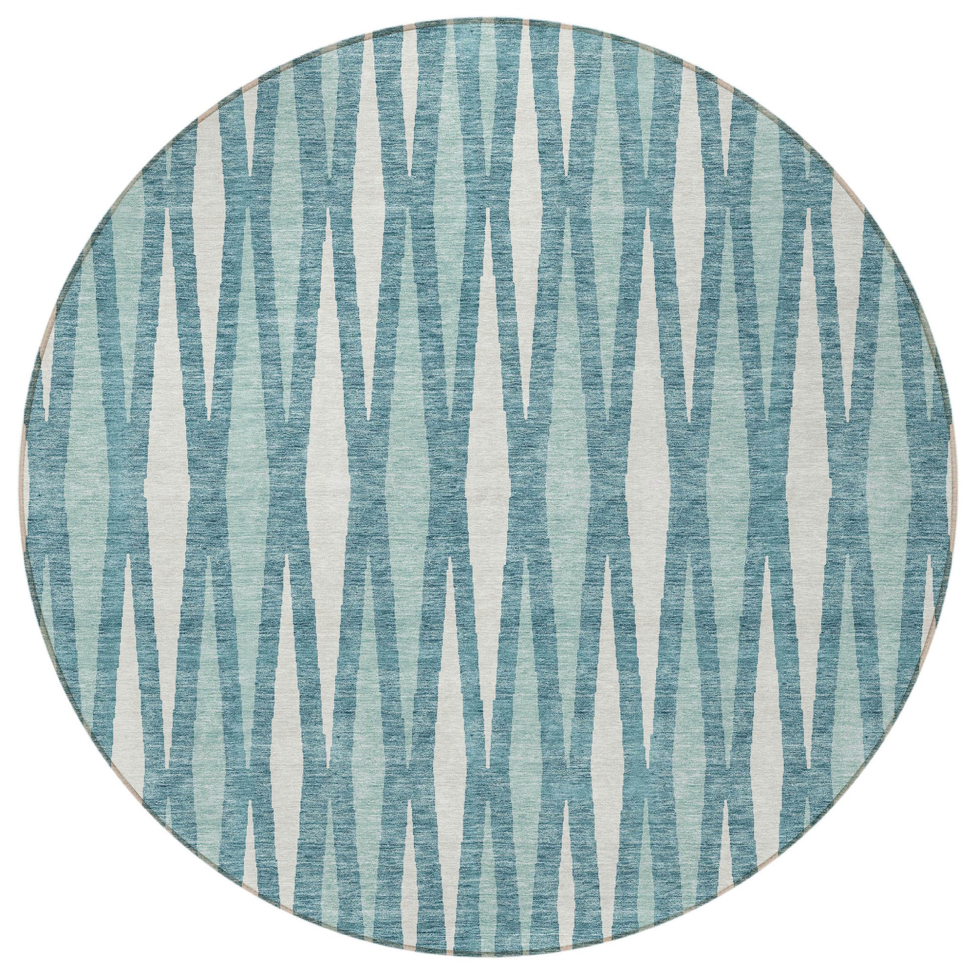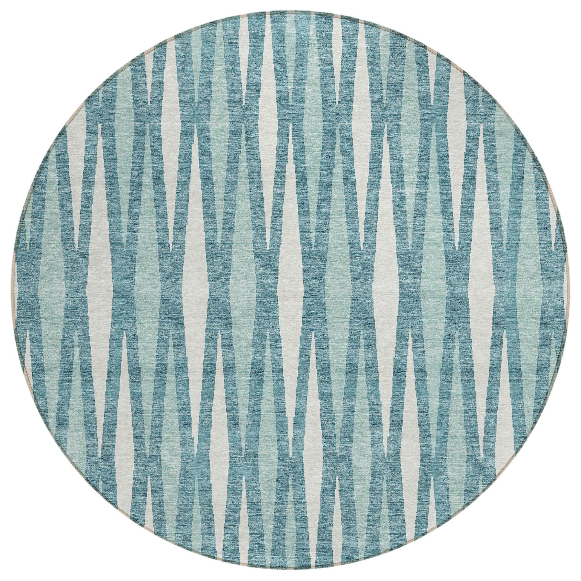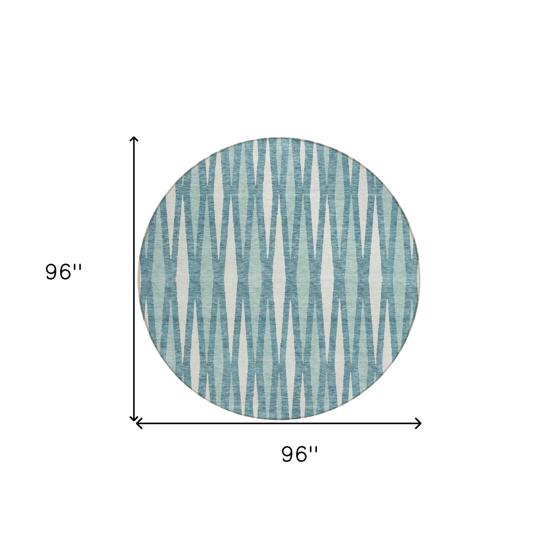 Tabselect Home Line 8' Teal Blue And Ivory Round Geometric Washable Indoor Outdoor Area Rug