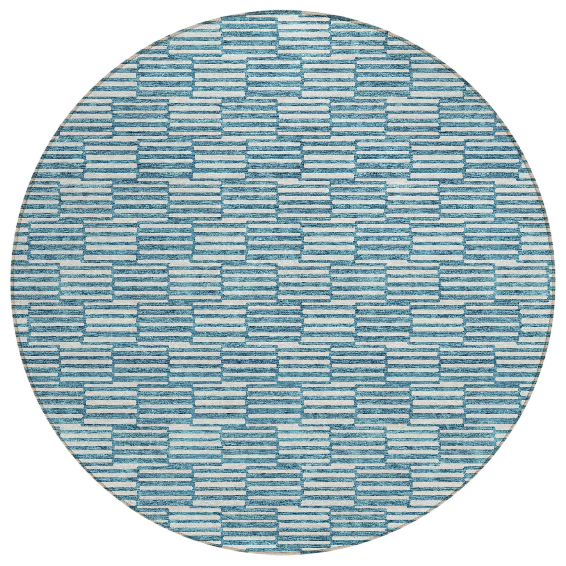 Tabselect Home Line 8' Teal Blue And Ivory Round Geometric Washable Indoor Outdoor Area Rug
